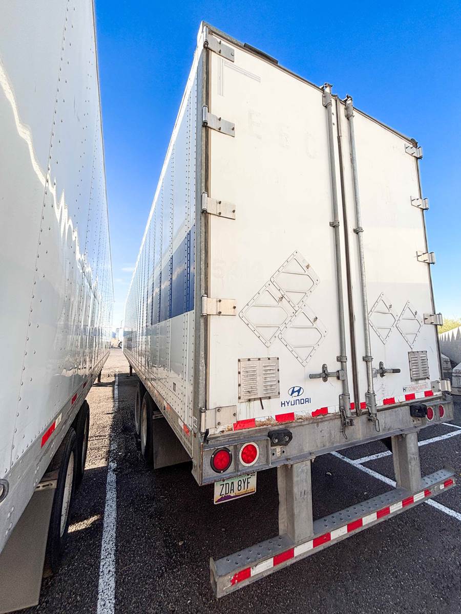 2014 Hyundai Dry Van Trailer This dry van semi-trailer features an aluminum construction with air ride suspension and a sliding tandem, providing a balanced combination of durability and ride stability for general freight applications. Specs: Trailer Type: Dry Van Trailer Brakes: Drum Axles: Tandem Suspension: Air Ride, Slider Floor: HD Duct Rear Door: Swing Trailer Composition: Aluminum Mountain West Utility Trailer offers financing and trailer rentals. Call us at (602) 254-7213.