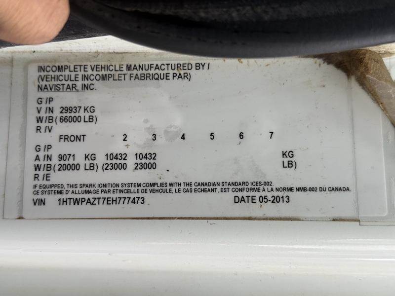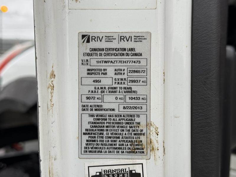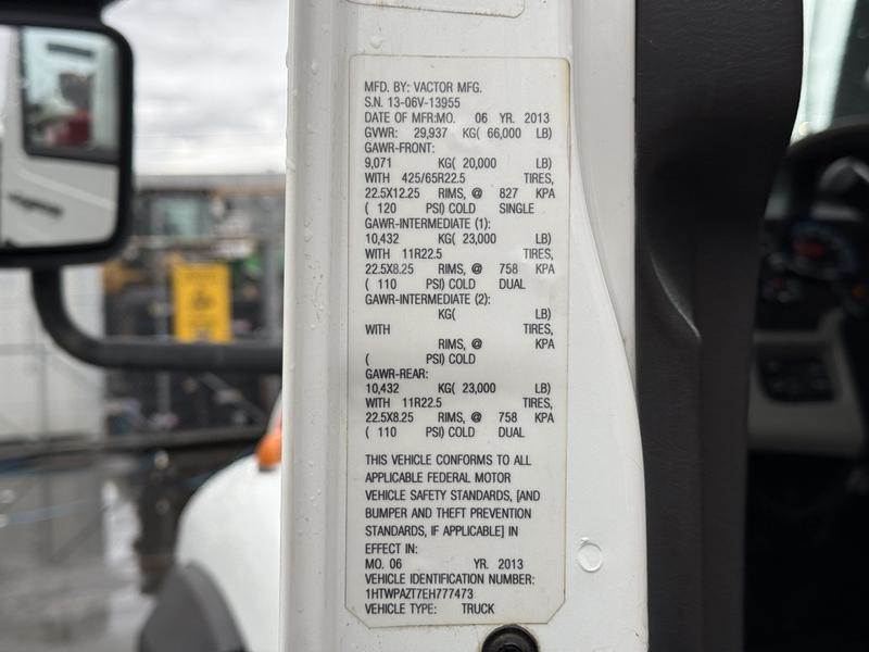 This 2014 International 7500 Vactor Plus 2100 vacuum truck is equipped with a 9.3L 6-cylinder engine, automatic transmission and 6x4 driveline, and features a white exterior with a grey cloth interior. Equipment includes air brakes, dump tilt, dump air suspension, differential lock, PTO, rodder pump hose, handgun pressure washer, air-assisted seat, air horn, Whelen traffic advisor control panel, voltmeter, and a pumps and pressure burner diagnostic panel, along with cruise control, air conditioning, and an AM/FM radio with CD player. The truck measures approximately 37 feet 7 inches long, 8 feet 9 inches wide and 11 feet 2 inches high, with a GVWR of 29,937 kg (66,000 lb) and a TARE weight of 18,110 kg. This item is currently OFFSITE. You must register an appointment with our office to schedule an offsite viewing. Appointments must be made a minimum of one business day in advance (and as defined by the days that Repo.com is open for business) before your appointment can be scheduled and confirmed. We may, at our own discretion, instead opt to transport smaller items to Repo.com's main yard for viewing purposes. $159,830.00 plus $375 processing fee, $160,205.00 total payment obligation before taxes. Listing report, warranty, contract commitment cancellation fee, financing available on approved credit (some limitations and exceptions may apply). All above specifications and information is considered to be accurate but is not guaranteed and no opinion or advice is given as to whether this item should be purchased. We do not allow test drives due to theft, fraud, acts of vandalism and undetectable impaired driving. Instead we provide the following benefits: Complimentary Warranty (with options to extend), Limited Money Back Satisfaction Guarantee on Fully Completed Contracts, Contract Commitment Cancellation, and an Open-Ended Sell-Back Option. Ask seller for details or call to confirm listing availability.