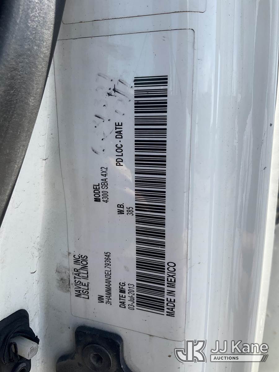 2014 International DuraStar 4300 Enclosed Service Truck, 7.6L L6 DIESEL 4X2, Auto, A/C, with Vanair Air Compressor/Generator, (149,890 miles) (Runs & Moves) (Dash Warning Indicators On) (Compressor/Generator-Condition Unknown) (Reads 7,466 hours) This is a Titled Item NOTE: This unit is being sold AS IS/WHERE IS via Timed Auction and is located in South Beloit, IL. Inspection & preview days for this unit are the 2 business days prior to the first day of items closing for this auction, item is located at 14354 Dearborn Ave South Beloit, IL and hours of operations are 8a-4p. For pre-sale questions, please contact Derek Eklund at (608) 904-0618 or (derek.eklund@jjkane.com). (Buyer is responsible for removal. Assistance by consignor or JJ Kane Auctions is not assured.)