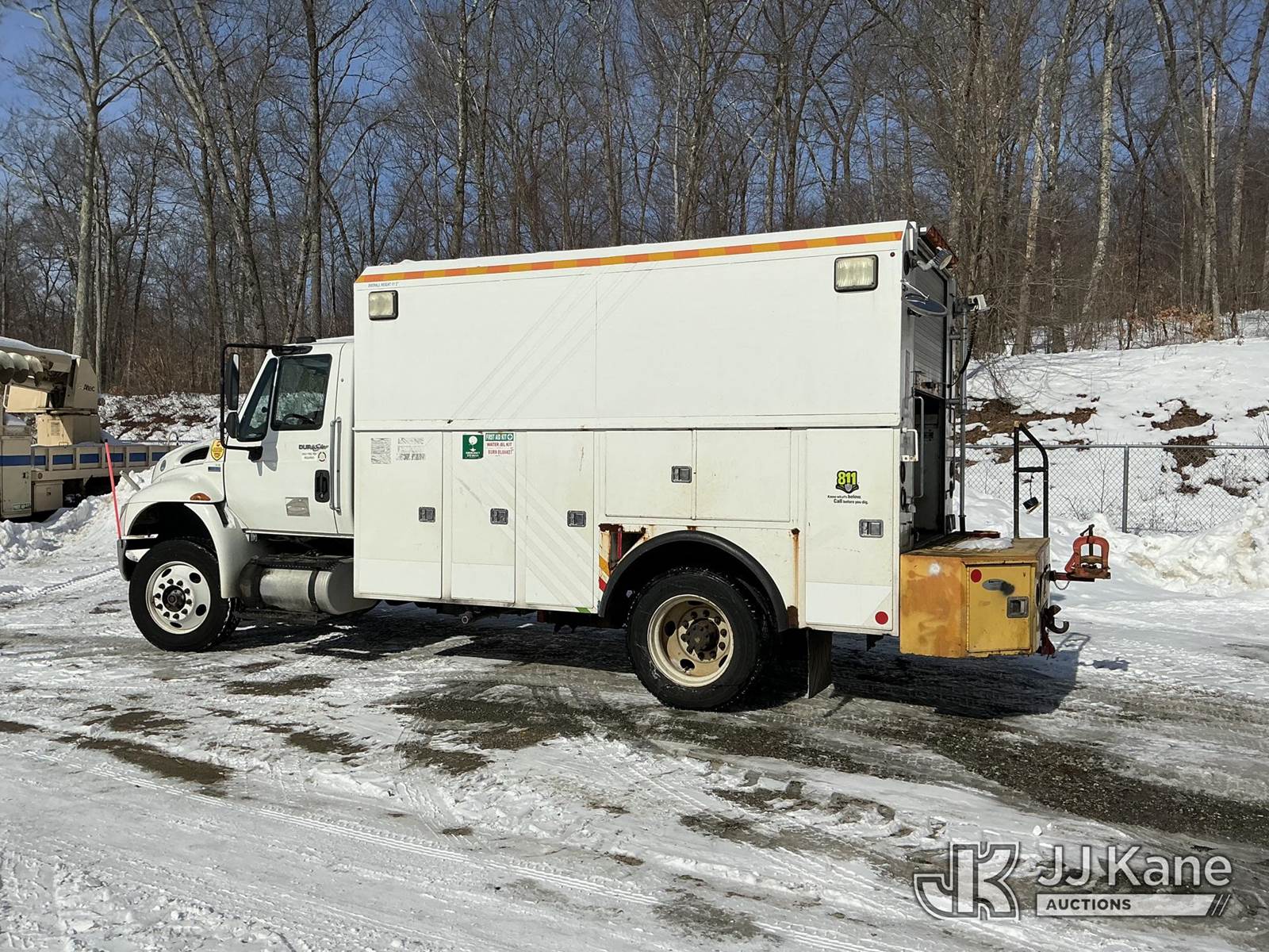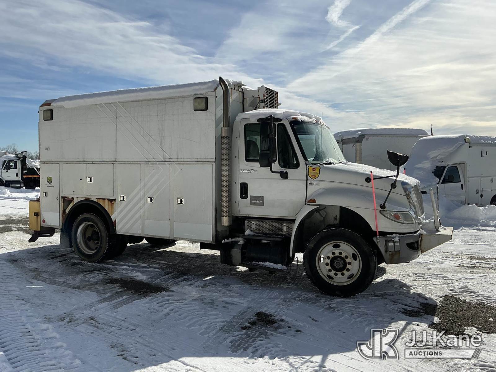 2014 International DuraStar 4300 Enclosed Utility/Air Compressor Truck, MaxxForce 7, 6.4L 4X2, diesel, Auto, A/C, with Vanair under deck air compressor & under deck generator, (54,536 miles) (Runs & Moves) (Engine Oil Leak, Check Engine Light On, Compressor Not Making Air) (Reads 11,642 hours) This is a Titled Item NOTE: This unit is being sold AS IS/WHERE IS via Timed Auction and is located in Shrewsbury, MA. Inspection & preview days for this unit are the 2 business days prior to the first day of items closing for this auction, item is located at 11 Fortune Blvd Shrewsbury, MA 01545 and hours of operations are 8a-4p. For pre-sale questions, please contact Rob Gifford @ (508) 864-4126. Sales Tax Collected Based on Residency (Buyer is responsible for removal. Assistance by consignor or JJ Kane Auctions is not assured.)