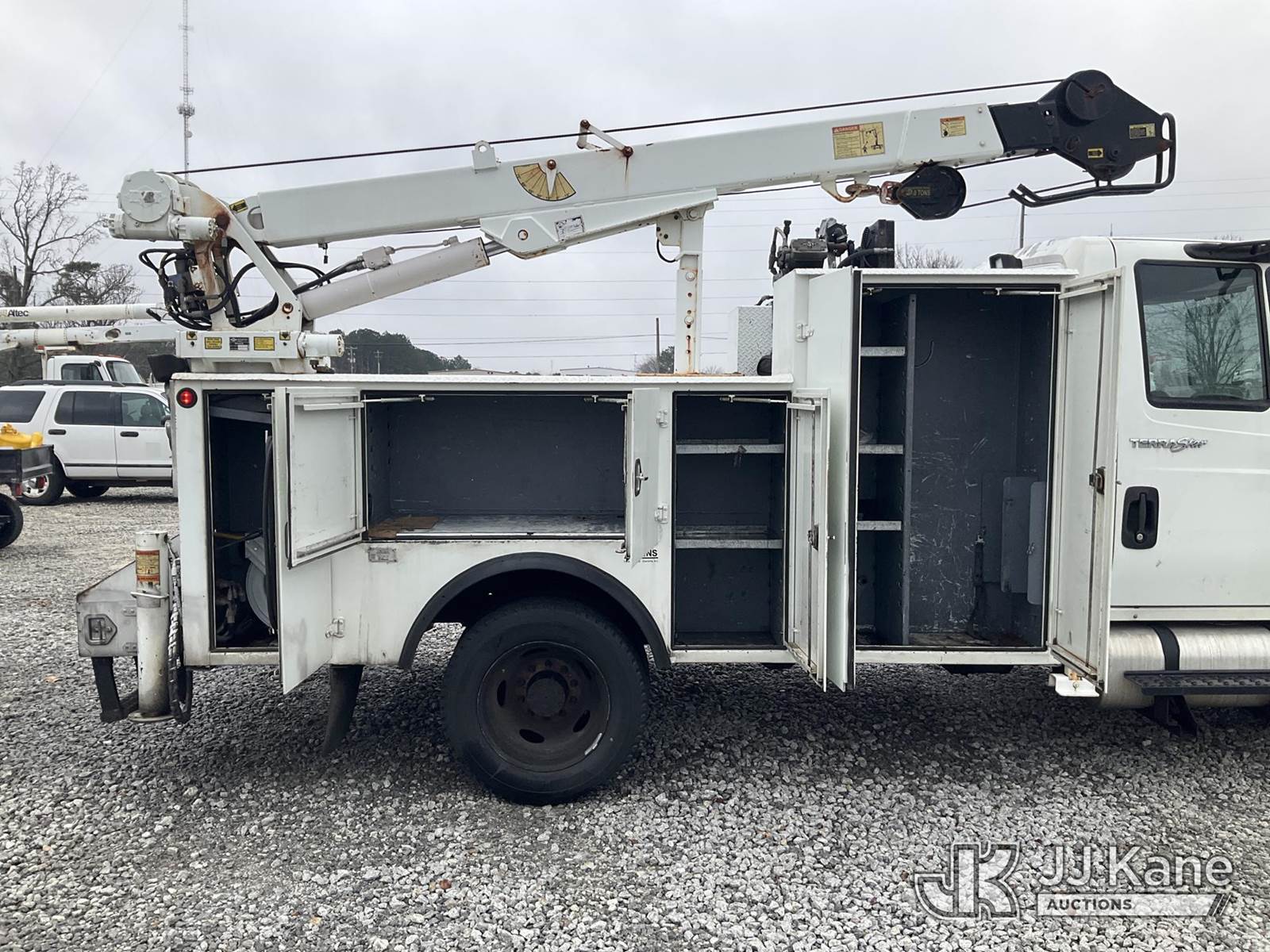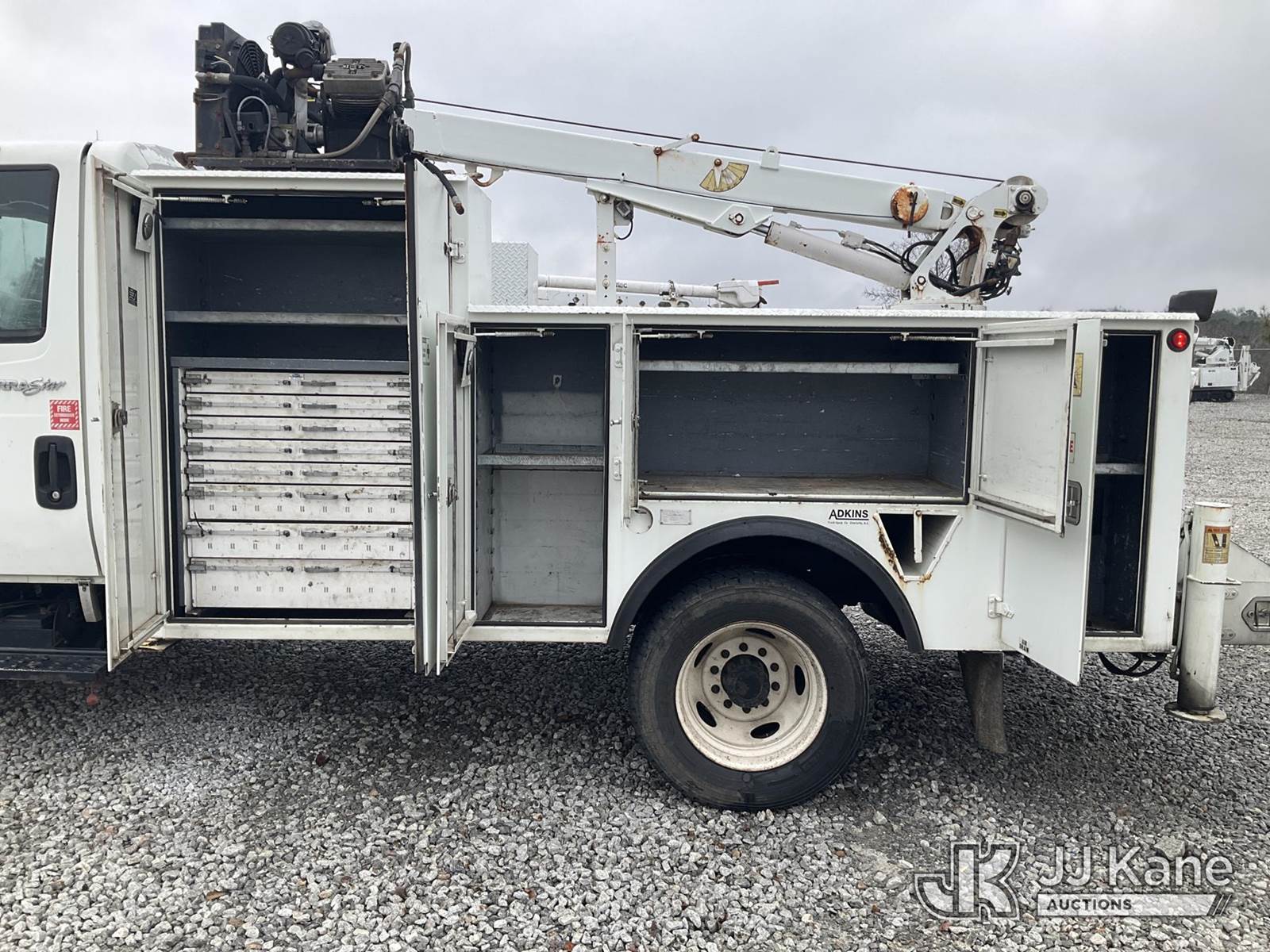 2014 International TerraStar Mechanics Service Truck, 6.4L V8 diesel, Auto, 4X2, A/C, with IMT 3820 material crane, IMT compressor, (201,351 miles) (Runs, Moves & Cranes Operates) (Jump To Start, Check Engine Light On, Brake Pressure Light On, Body/Paint Damage ) This is a Titled Item NOTE: This unit is being sold AS IS/WHERE IS via Timed Auction and is located in Villa Rica, GA. Inspection & preview days for this unit are the 2 business days prior to the first day of items closing for this auction, item is located at 100 Liberty Rd Villa Rica, GA 30180 and hours of operations are 8a-4p. For pre-sale questions, please contact Office Staff @ (470) 590-8453. (Buyer is responsible for removal. Assistance by consignor or JJ Kane Auctions is not assured.)