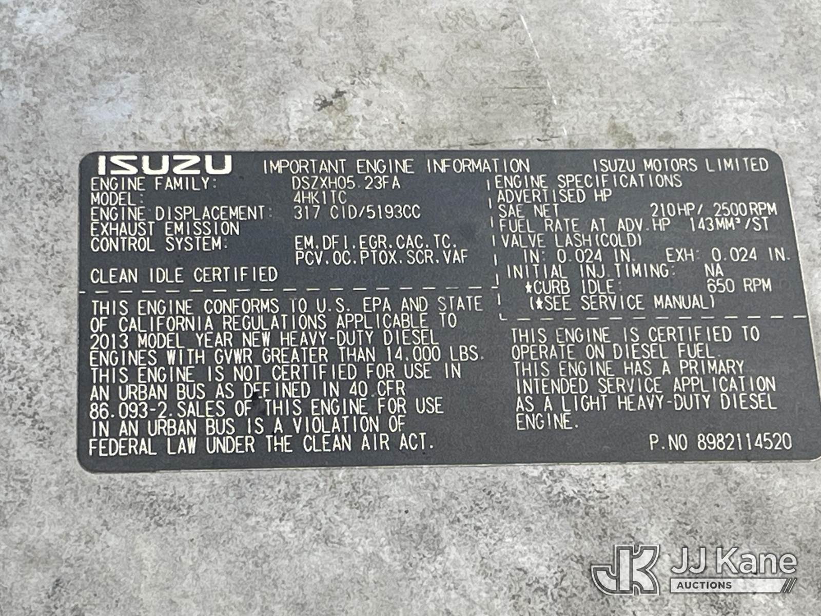 2014 Isuzu NQR Van Body Truck, 5.2L L6 DIESEL Auto, 4X2, A/C, with liftgate, (95,277 miles) (Runs, Moves, & Operates)( Body Damage) May be subject to ARB Regulations This is a Titled Item NOTE: This unit is being sold AS IS/WHERE IS via Timed Auction and is located in Dixon, CA. Inspection & preview days for this unit are the 2 business days prior to the first day of items closing for this auction, item is located at 8668 Sparling Ln Dixon, CA 95620 and hours of operations are 8a-4p. For pre-sale questions, please contact JJ Kane Staff at (707) 678-8060 (dixon@jjkane.com). Dealer License Number 45696. (Buyer is responsible for removal. Assistance by consignor or JJ Kane Auctions is not assured.)