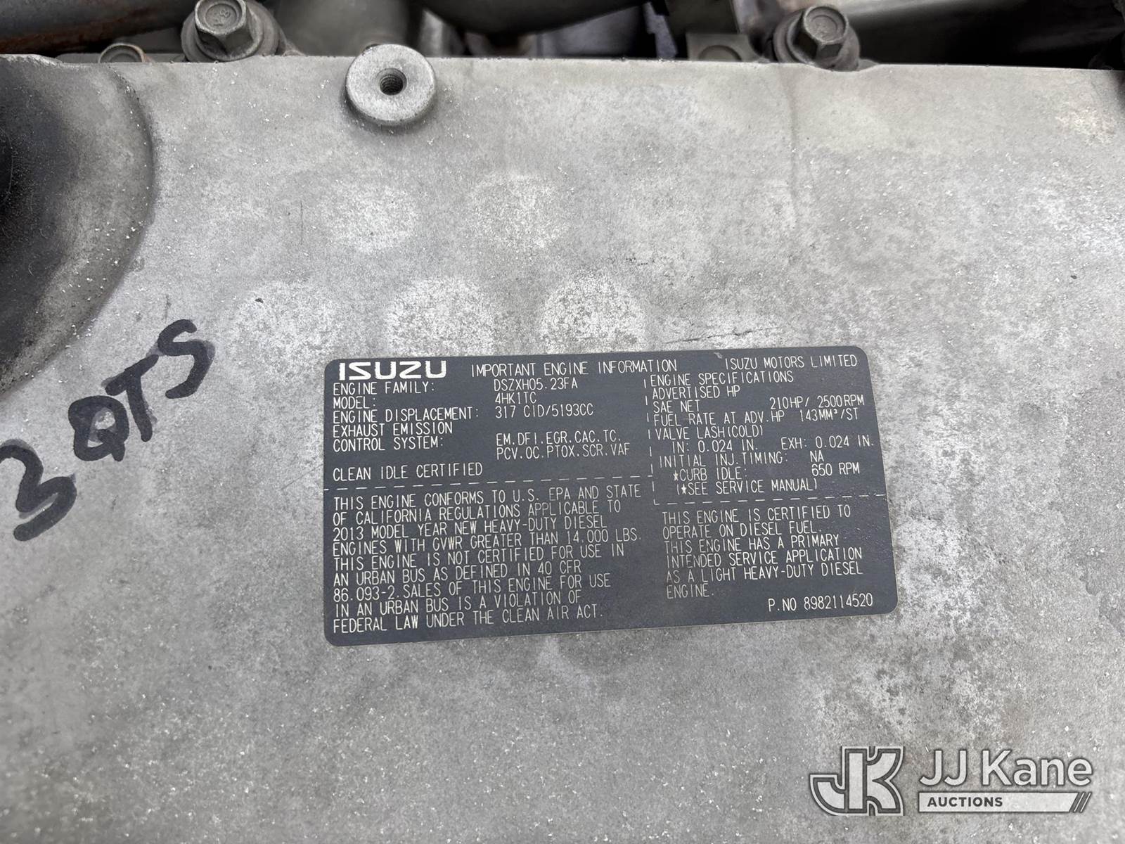 2014 Isuzu NQR Van Body Truck, s/n JALE5W164E7902712, 5.2L L6 4X2, DIESEL, Auto, A/C, with liftgate, (171,706 miles) (Runs, Moves & Operates) May be subject to ARB Regulations This is a Titled Item NOTE: This unit is being sold AS IS/WHERE IS via Timed Auction and is located in Dixon, CA. Inspection & preview days for this unit are the 2 business days prior to the first day of items closing for this auction, item is located at 8668 Sparling Ln Dixon, CA 95620 and hours of operations are 8a-4p. For pre-sale questions, please contact JJ Kane Staff at (707) 678-8060 (dixon@jjkane.com). Dealer License Number 45696. (Buyer is responsible for removal. Assistance by consignor or JJ Kane Auctions is not assured.)