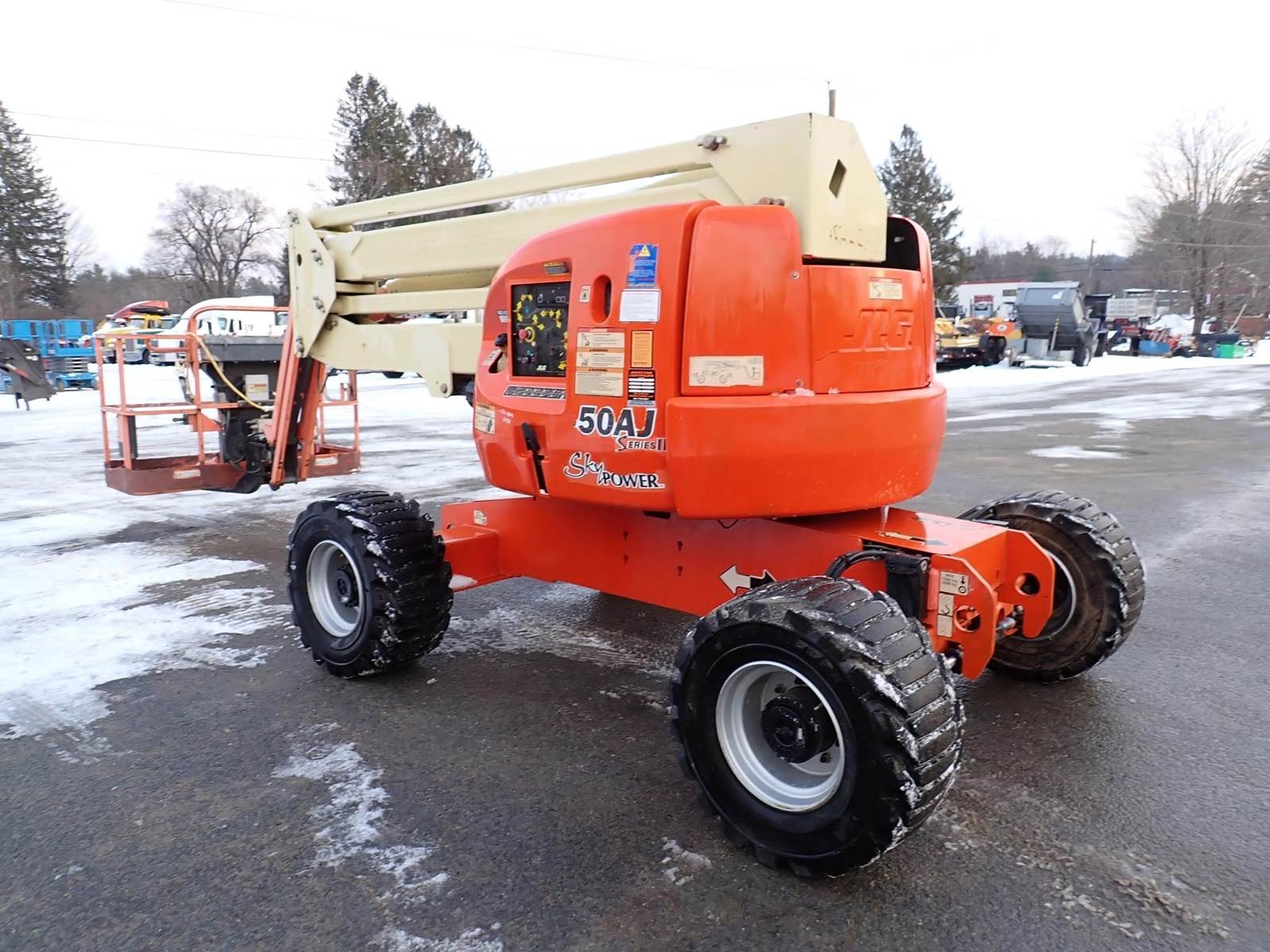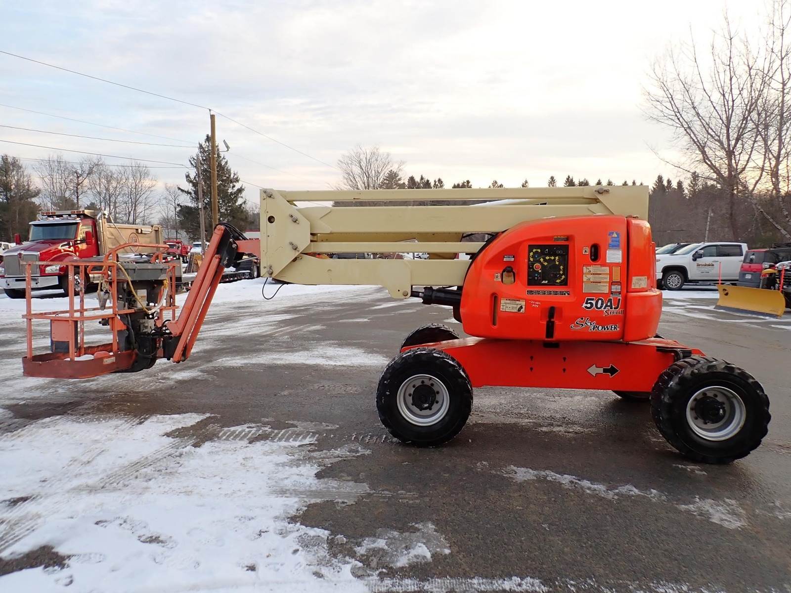 45 ft knuckle boom lift, 4x4, 6 ft basket, jib, 3-phase skypower, 4 cyl Deutz diesel