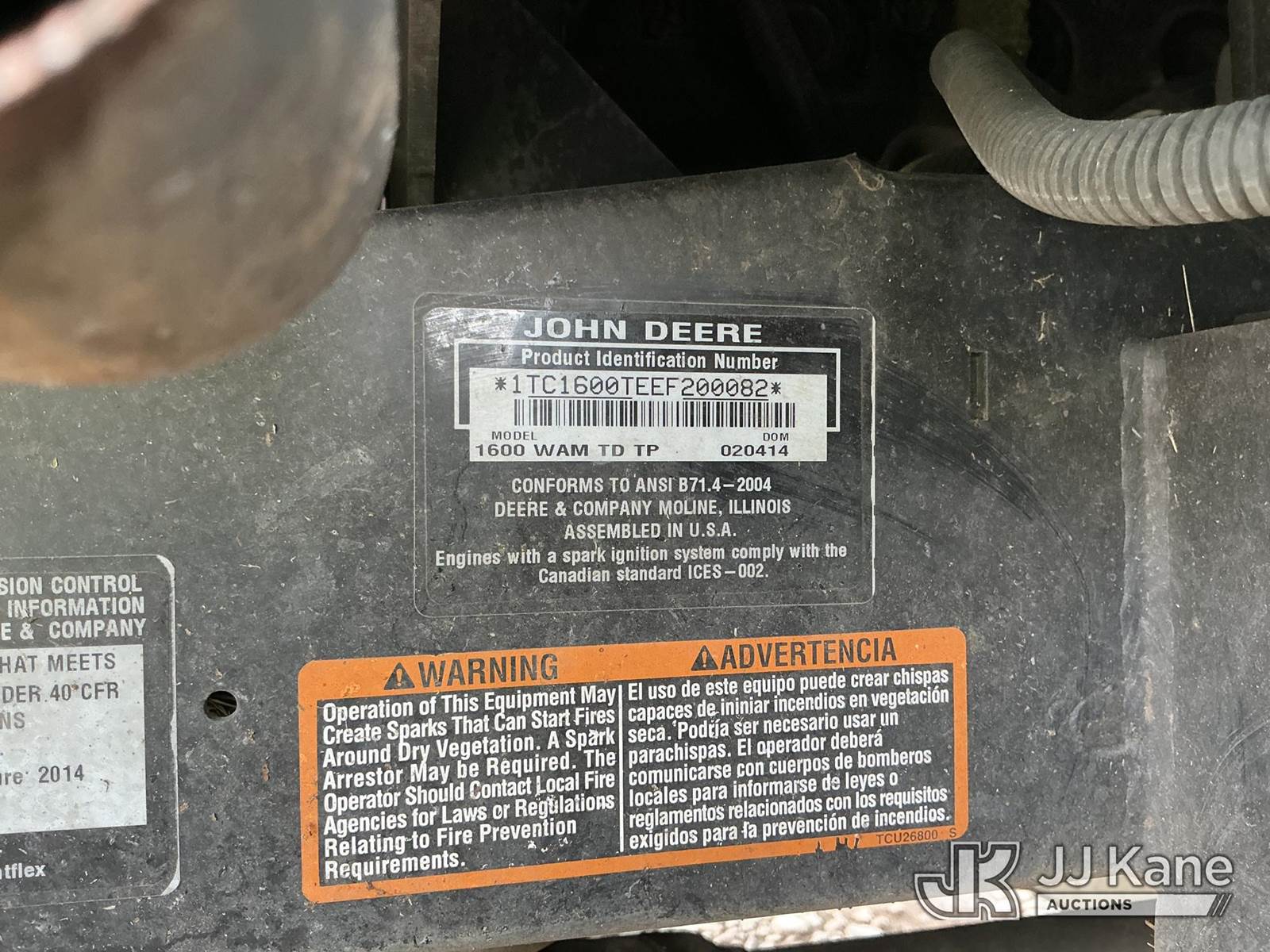 2014 John Deere 1600 WAM TD TP Mower, s/n 1TC1600TEEF200082, J.D. diesel, with side mowers, (Runs, Moves & Operates) (Reads 1,321 hours) NOTE: This unit is being sold AS IS/WHERE IS via Timed Auction and is located in Dixon, CA. Inspection & preview days for this unit are the 2 business days prior to the first day of items closing for this auction, item is located at 8668 Sparling Ln Dixon, CA 95620 and hours of operations are 8a-4p. For pre-sale questions, please contact JJ Kane Staff at (707) 678-8060 (dixon@jjkane.com). Dealer License Number 45696. (Buyer is responsible for removal. Assistance by consignor or JJ Kane Auctions is not assured.)