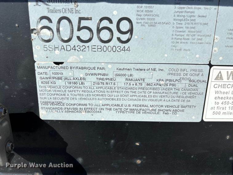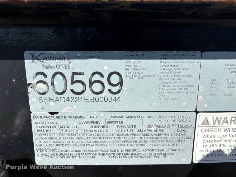 2014 Kaufman drop deck equipment trailer