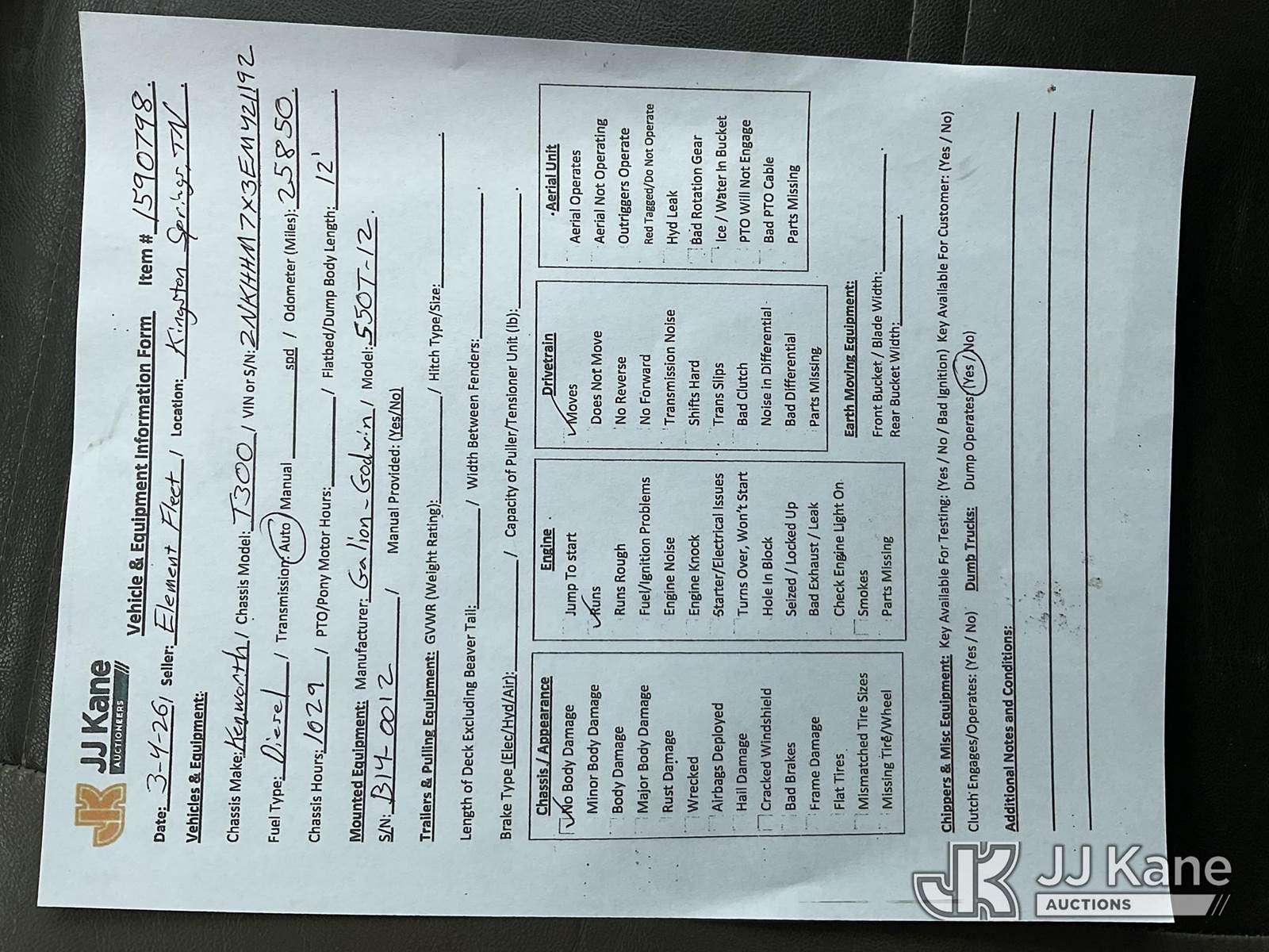 2014 Kenworth T300 Dump Truck, 6.7L L6 Diesel, 4X2, Auto, with 5-7 yard body, (25,850 miles) (Runs, Moves & Dump Operates) This is a Titled Item NOTE: This unit is being sold AS IS/WHERE IS via Timed Auction and is located in Kingston Springs, TN. Inspection & preview days for this unit are by appointment only; please contact us at contact@jjkane.com or 84-Go-JJKane for more details. (Buyer is responsible for removal. Assistance by consignor or JJ Kane Auctions is not assured.)