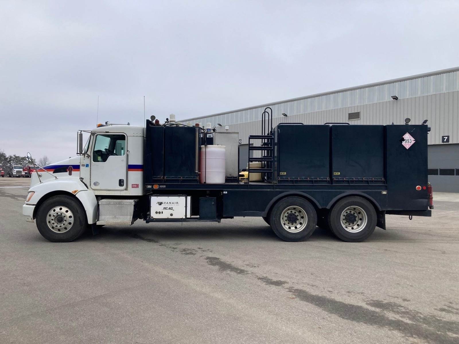 Tandem, 21' Adkins Fuel/Lube Body, VANAIR AC40 Compressor, (2) 1,000 Gallon Diesel Tanks, 250 Gallon Waste Oil Tank, 170 Gallon Oil Tank, (4) 60 Gallon Oil Tanks, 125 Gallon DEF Tank, 55 Gallon Antifreeze Tank, Air Reel, Hose Reels for All Tanks, (4) 18" Drawers, PX9 Paccar 330 HP, Allison Automatic, 4.63 Ratio, Engine Brake, Reyco Suspension, 14,600 FA, 40,000 RA, Double Frame, 230" WB, 21'5" Bridge, Diff Lock, Wheel Lock, P/S, A/C, AM/FM CD Bluetooth, NAV, Heated Mirrors, Cruise, Tilt/Tele Wheel, Power Locks, Mirrors, and Passenger Window, 56 Gallon Aluminum Fuel Tank, 12R22.5 Steer Tires on Aluminum Wheels, 11R22.5 Drive Tires on All Aluminum Wheels