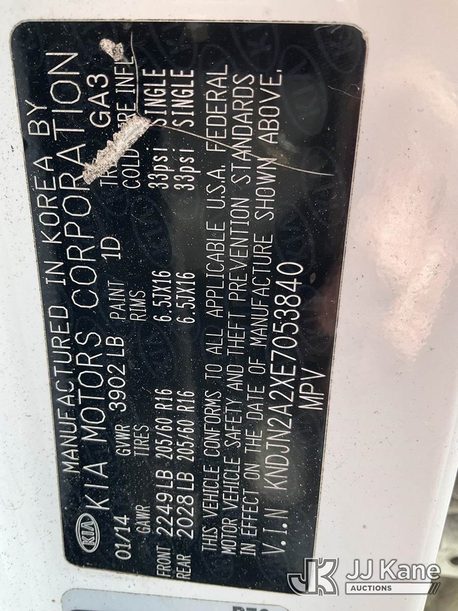 2014 Kia Soul 4-Door Compact Station Wagon, 1.6L L4 DOHC 16V FWD, Gas, Auto, A/C, (197,457 miles) (Runs, Jump To Start, Engine Knocking, Oil Leak) This is a Titled Item NOTE: This unit is being sold AS IS/WHERE IS via Timed Auction and is located in West Palm Beach, FL. For Pick Up & Removal information, please contact: Andy Garcia @ 561-215-0085. Removals require 24-hr Notice by Appointment Only, Buyer/Hauler must present copy of Paid-in-Full JJ Kane Release Form upon arrival. Purchaser acknowledges ALL lots must be removed within 10 business days of Auction, or a towing & storage fee may be incurred. (Buyer is responsible for removal. Assistance by consignor or JJ Kane Auctions is not assured.)