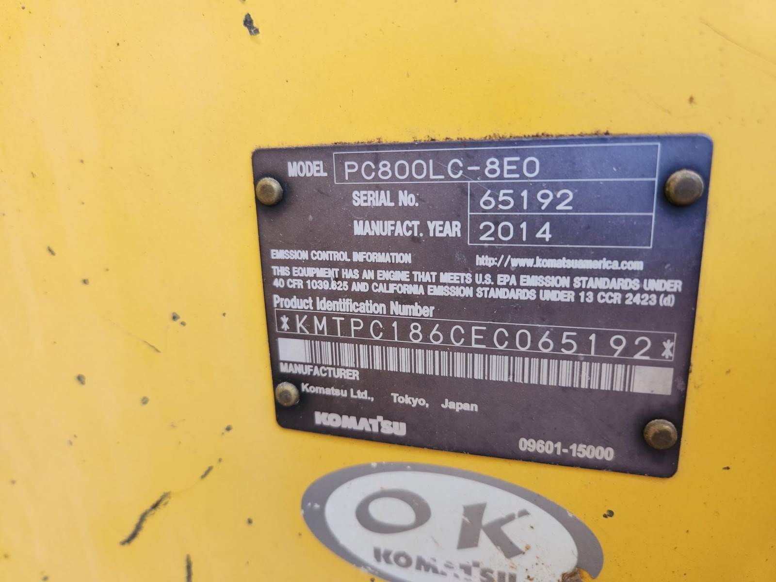 2014 Komatsu PC800LC-8E0 Excavator