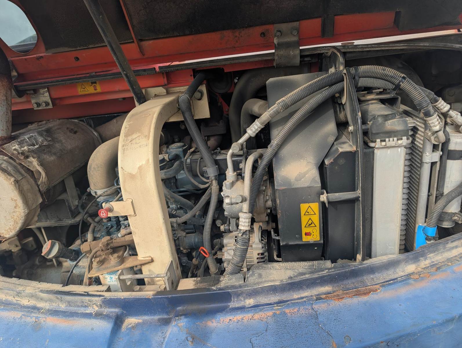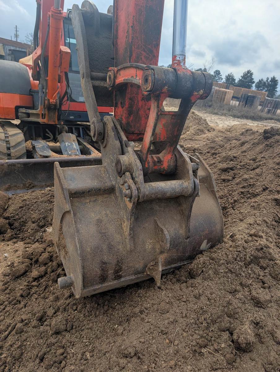 2014 Kubota KX080-3: Kubota V3800-DI 4-cylinder direct-injection diesel engine; 66.5 Gross HP @ 2,000 RPM; 231.9 cu in displacement; 18,364 lb weight; 15' 1" maximum digging depth; 24' 1" maximum digging radius; 17' 3" maximum dumping height; 14,660 lbf bucket breakout force; 8,554 lbf arm breakout force; 3-pump load-sensing hydraulic system; 38.1 gpm total flow; 4,061 psi relief pressure; 4' 9.5" tail swing radius; 1.8/3.2 mph travel speeds; 21' 2" transport length; 7' 3" transport width; 8' 4" transport height; 30.4 gal fuel capacity; 7' 2.6" dozer blade width.