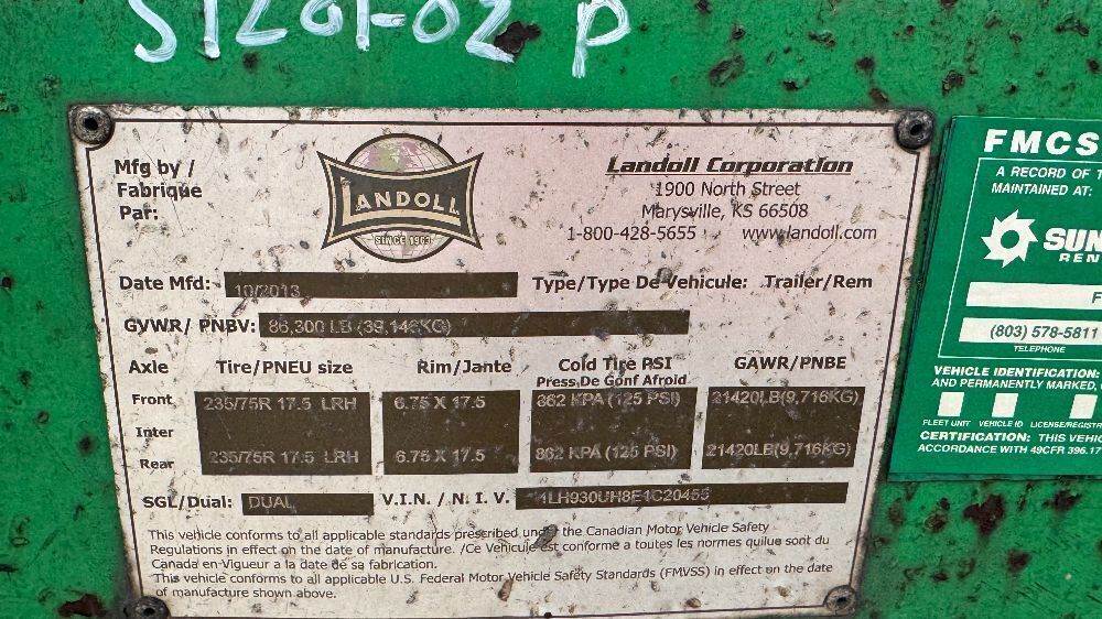 2014 LANDOLL 930C EQUIPMENT TRAILER, 86,300# gvwr, 102"x10' upper deck, 102"x38' deck, Warn winch, Right-Weigh load scale, air ride suspension. s/n:1LH930UH8E1C20455