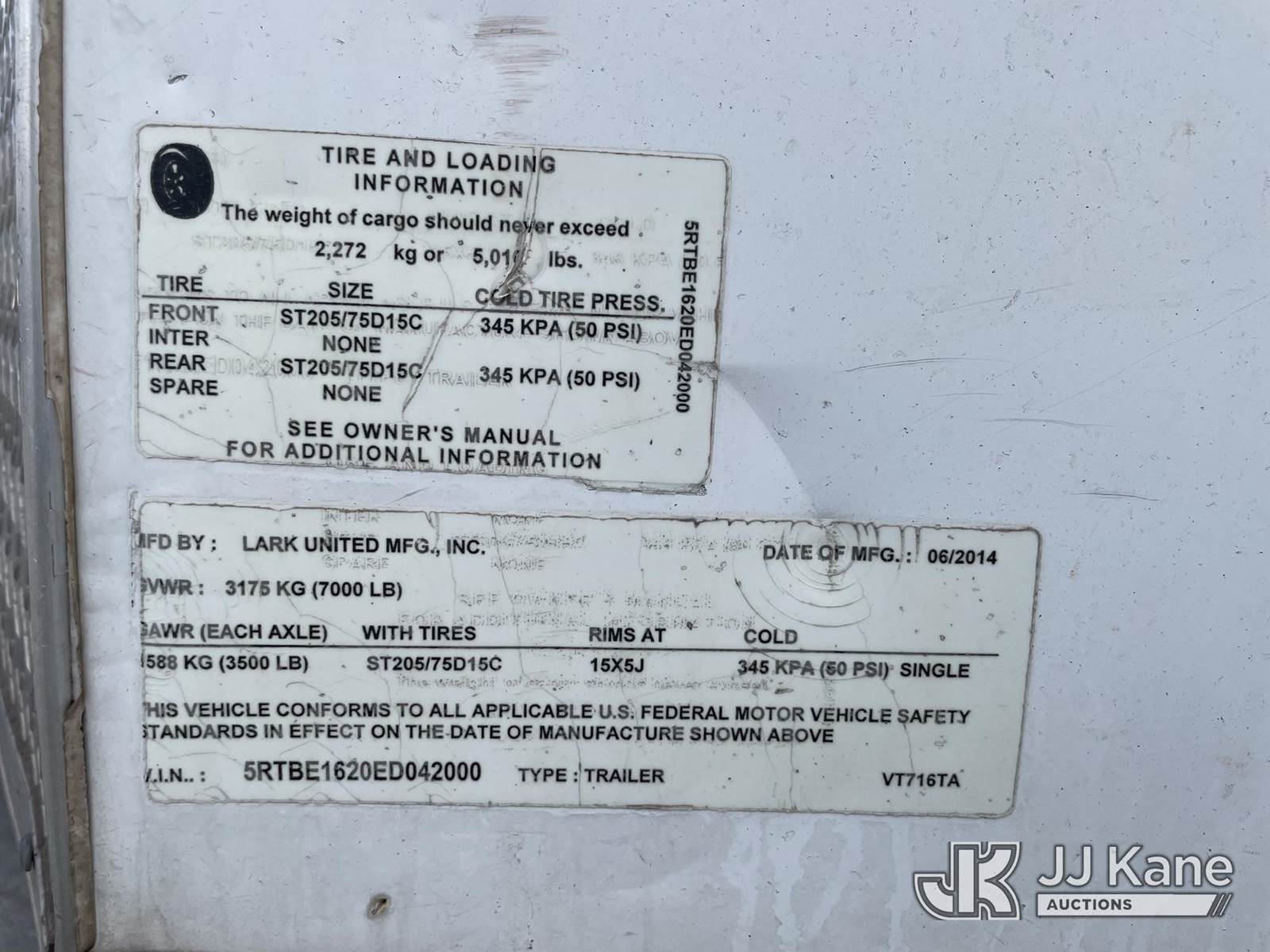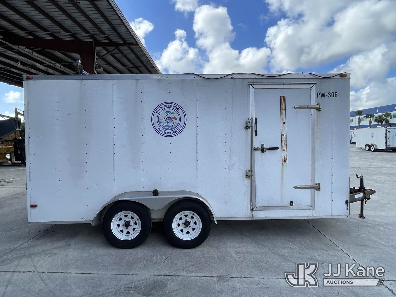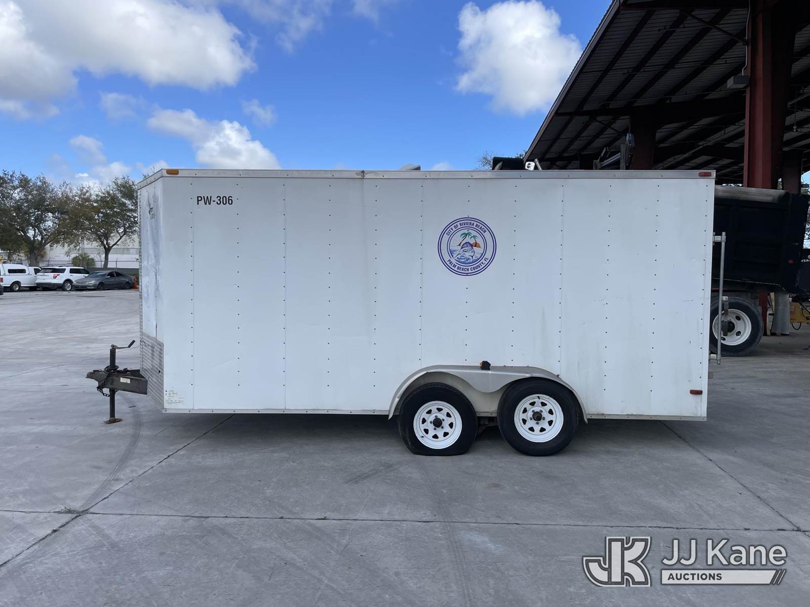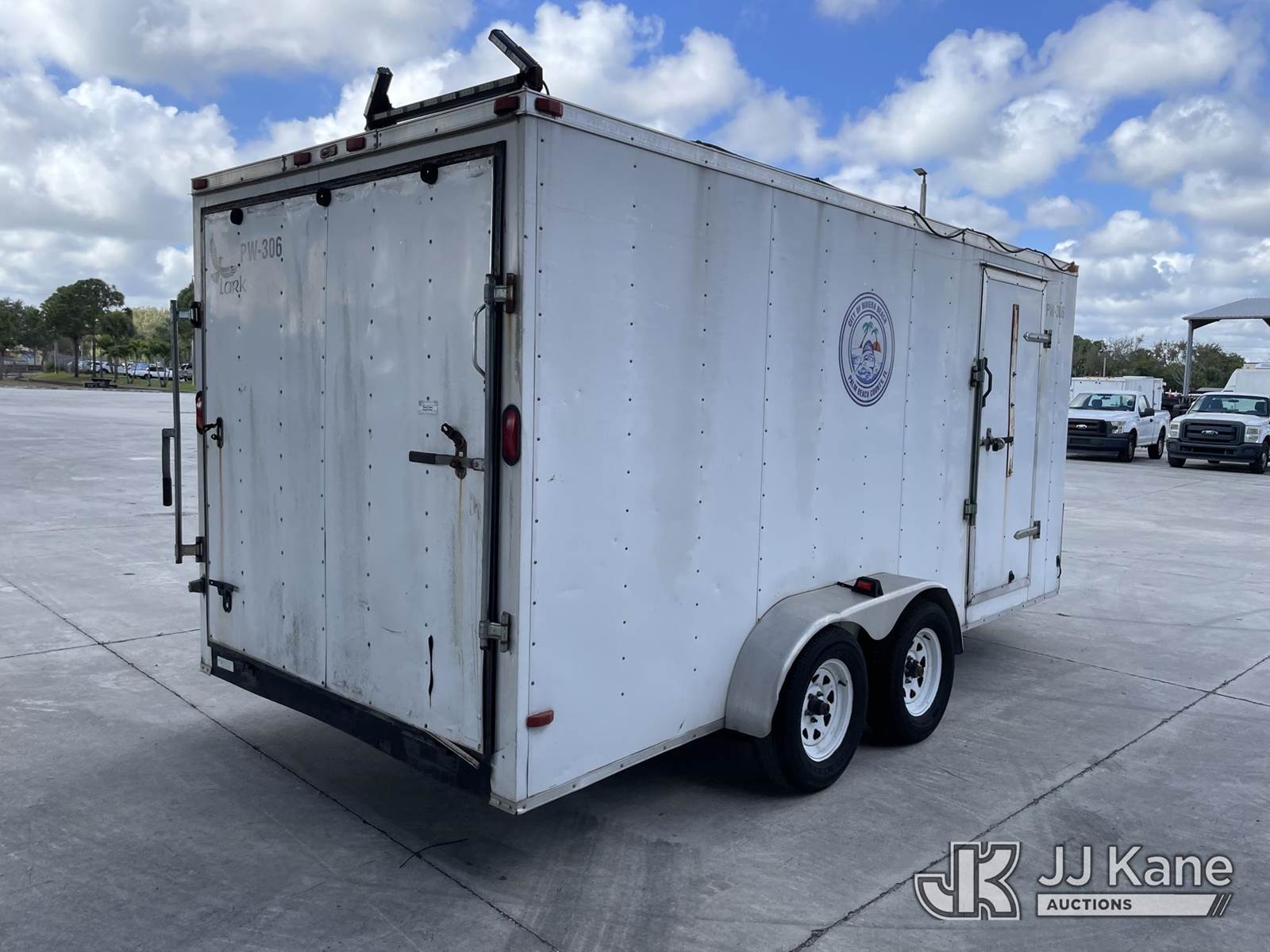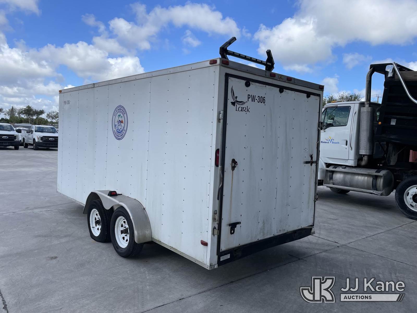 2014 Lark United Manufacturing T/A Enclosed Trailer, s/n 5RTBE1620ED042000, with Curbside Entry Door, Fold Down Rear Door, (Non-Titled) (Body Damage, Seller Will Spray Paint Over City Logo) NOTE: This unit is being sold AS IS/WHERE IS via Timed Auction and is located in Riviera Beach, FL. For pre-sale questions or to schedule an inspection, please call Gregg Martini @ 561-519-5775. Removals require 24-hr Notice by Appointment Only, Buyer/Hauler must present copy of Paid-in-Full JJ Kane Release Form upon arrival. Purchaser acknowledges ALL lots must be removed within 10 business days of Auction, or a towing & storage fee may be incurred. (Buyer is responsible for removal. Assistance by consignor or JJ Kane Auctions is not assured.)