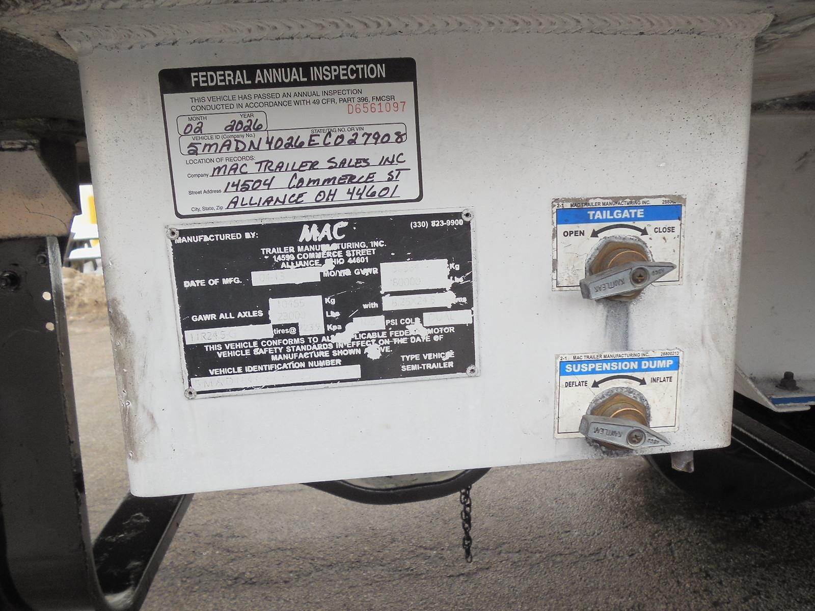 2014 MAC 40 ft End Dump Trailer - Tandem Axle, Aluminum, Air Ride