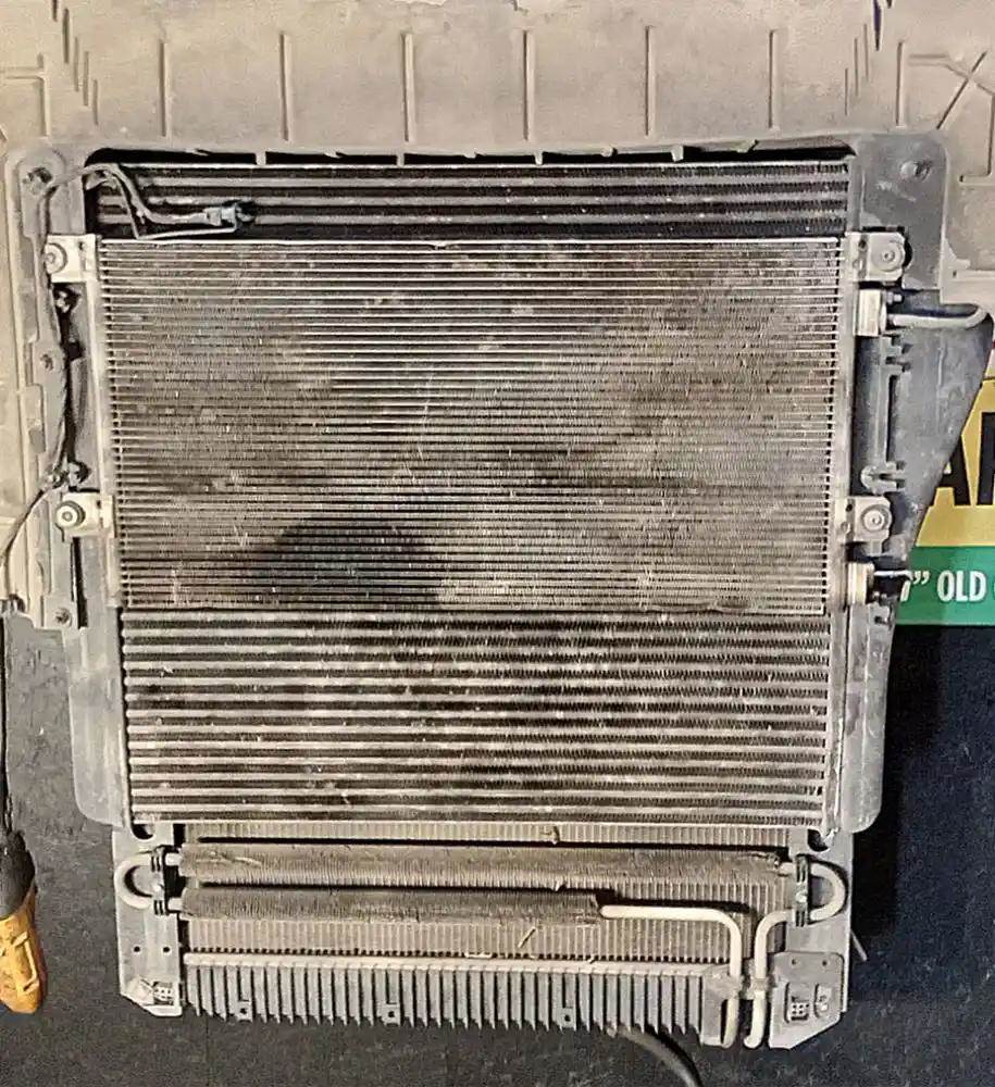 Cooling Assembly, Complete, Includes RAD, CAC, and Condenser. Radiator 40.5"H x 34"W. Overflow Tank Damaged.