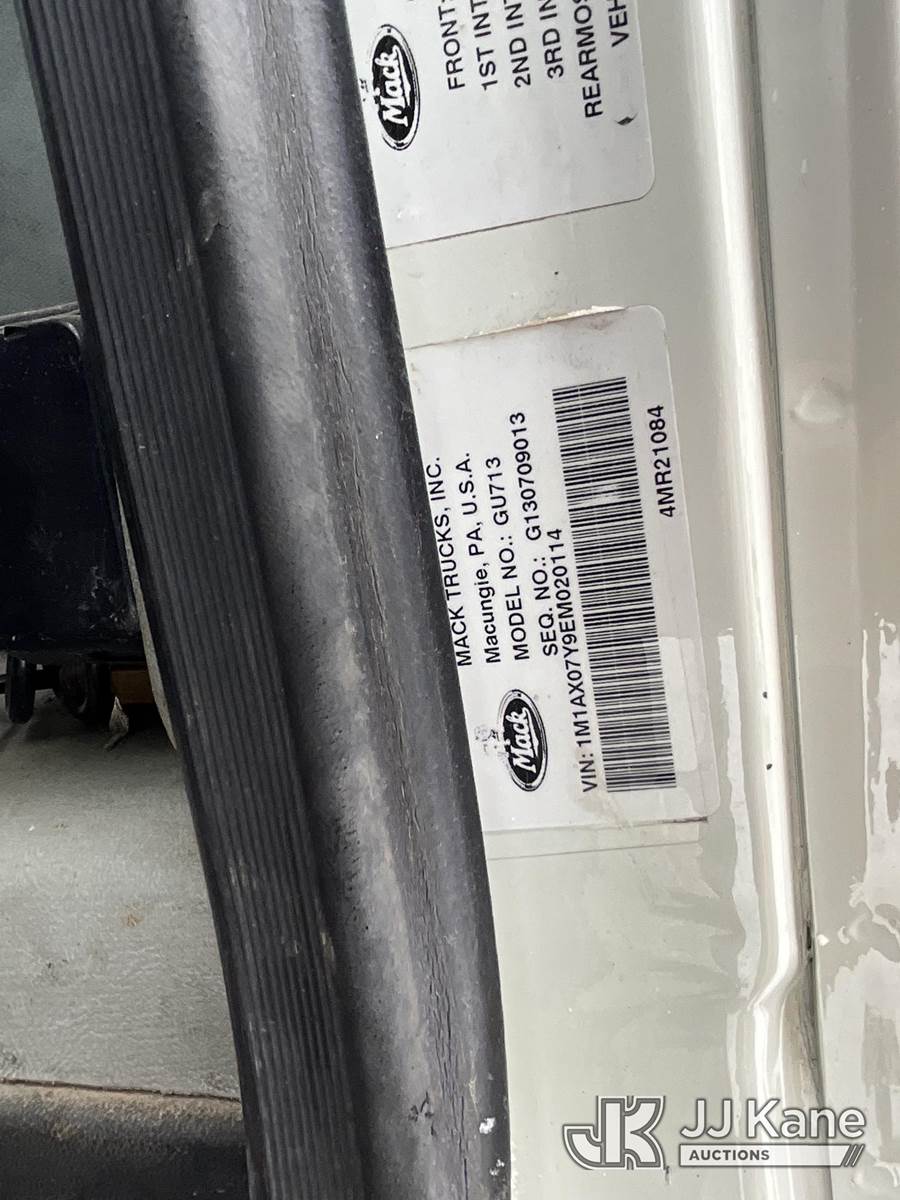 2014 Mack GU713 T/A Truck Tractor, 12.7L L6 Diesel, 18 spd, with air lift 3rd axle, (382,923 miles) True Mileage Unknown (Jump to Start, Runs, Moves) (Seller States: Hasn't been used in over 10 years, last reported miles 382,923, Has after treatment Emission issues And gauge cluster malfunctioning) This is a Titled Item NOTE: This unit is being sold AS IS/WHERE IS via Timed Auction and is located in Rosebush, MI. Inspection & preview days for this unit are by appointment only; please contact us at contact@jjkane.com or 84-Go-JJKane for more details (Buyer is responsible for removal. Assistance by consignor or JJ Kane Auctions is not assured.)