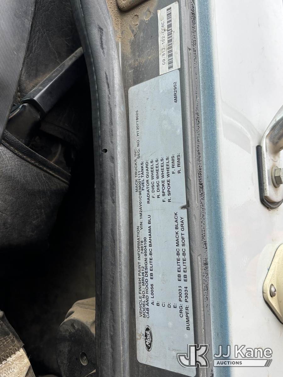 2014 Mack MRU600 LCF Dump Truck, Mack MP7 diesel, Auto, A/C, with Duraclass 6 yd. 12 ft. body, PB loader attachment (unmounted), (64,337 miles) (Runs, Moves & Dump Operates) (Forklift Available For Loading of PB Loader Attachment) (Reads 2,797 hours) This is a Titled Item NOTE: This unit is being sold AS IS/WHERE IS via Timed Auction and is located in Merced, CA. For more information & removal arrangements please contact Charlie de Kanter @ (281) 910-7147. (Buyer is responsible for removal. Assistance by consignor or JJ Kane Auctions is not assured.)