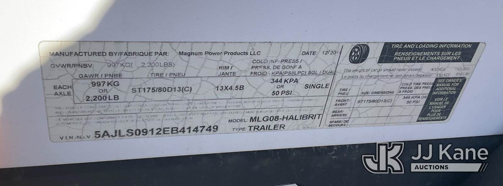 2014 Magnum MLG08 Portable Light Tower, s/n 5AJLS0912EB414749, Mitsubishi diesel, with pintle hitch, (Not Starting, Operation Unknown Application for Special Equipment) (Reads 5,512 hours) NOTE: This unit is being sold AS IS/WHERE IS via Timed Auction and is located in Jurupa Valley, CA. Inspection & preview days for this unit are the 2 business days prior to the first day of items closing for this auction, item is located at 4510 Muth Way Jurupa Valley, CA 92509 and hours of operations are 8a-4p. For pre-sale questions, please contact please contact Office Staff @ (310) 353-7140. Dealer License Number 45696. (Buyer is responsible for removal. Assistance by consignor or JJ Kane Auctioneers is not assured.)