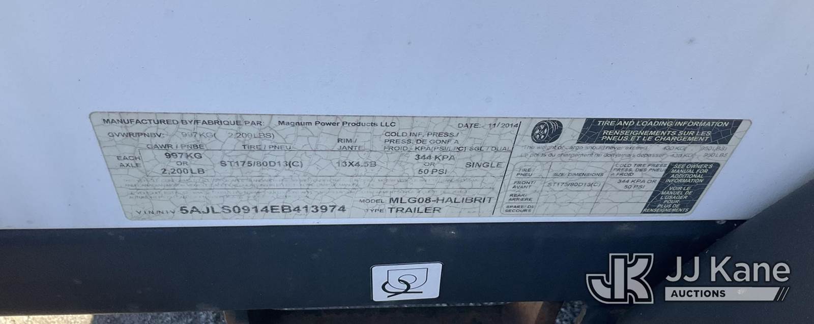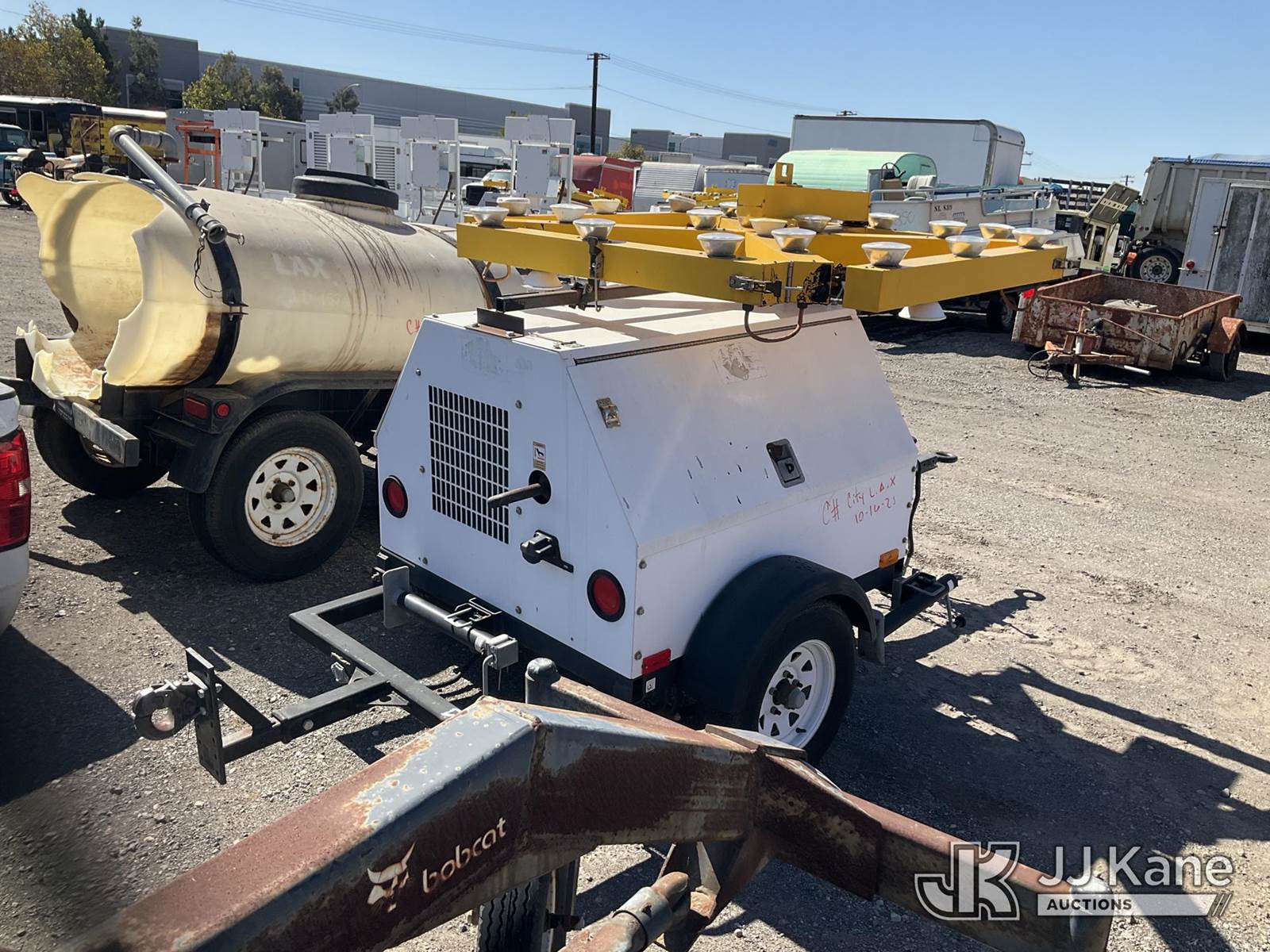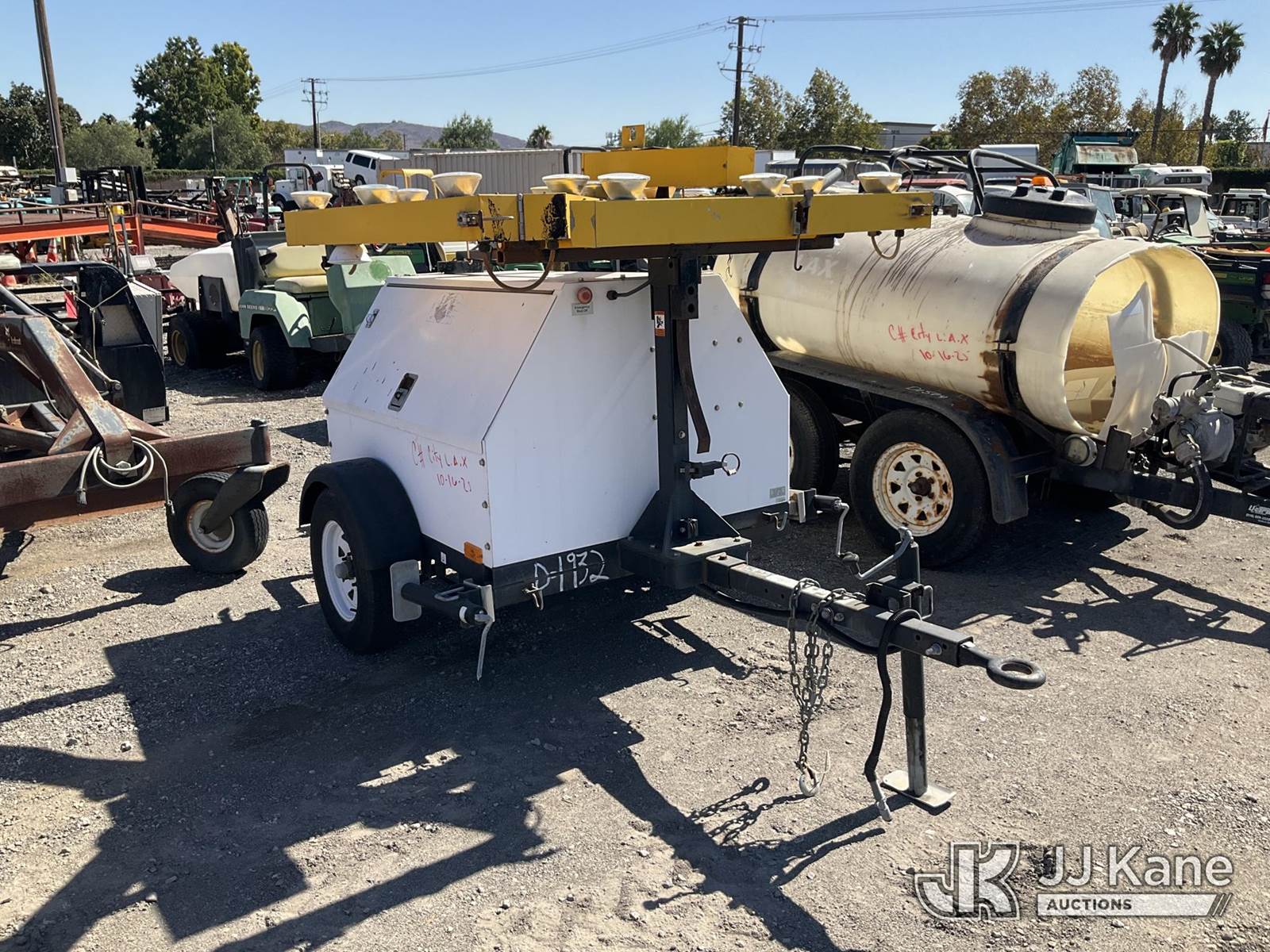 2014 Magnum MLG08 Portable Light Tower, s/n 5AJLS0914EB413974, Mitsubishi diesel, with pintle hitch, (Not Running, Operation Unknown Application for Special Equipment) (Reads 6,345 hours) May be subject to ARB Regulations NOTE: This unit is being sold AS IS/WHERE IS via Timed Auction and is located in Jurupa Valley, CA. Inspection & preview days for this unit are the 2 business days prior to the first day of items closing for this auction, item is located at 4510 Muth Way Jurupa Valley, CA 92509 and hours of operations are 8a-4p. For pre-sale questions, please contact please contact Office Staff @ (310) 353-7140. Dealer License Number 45696. (Buyer is responsible for removal. Assistance by consignor or JJ Kane Auctioneers is not assured.)