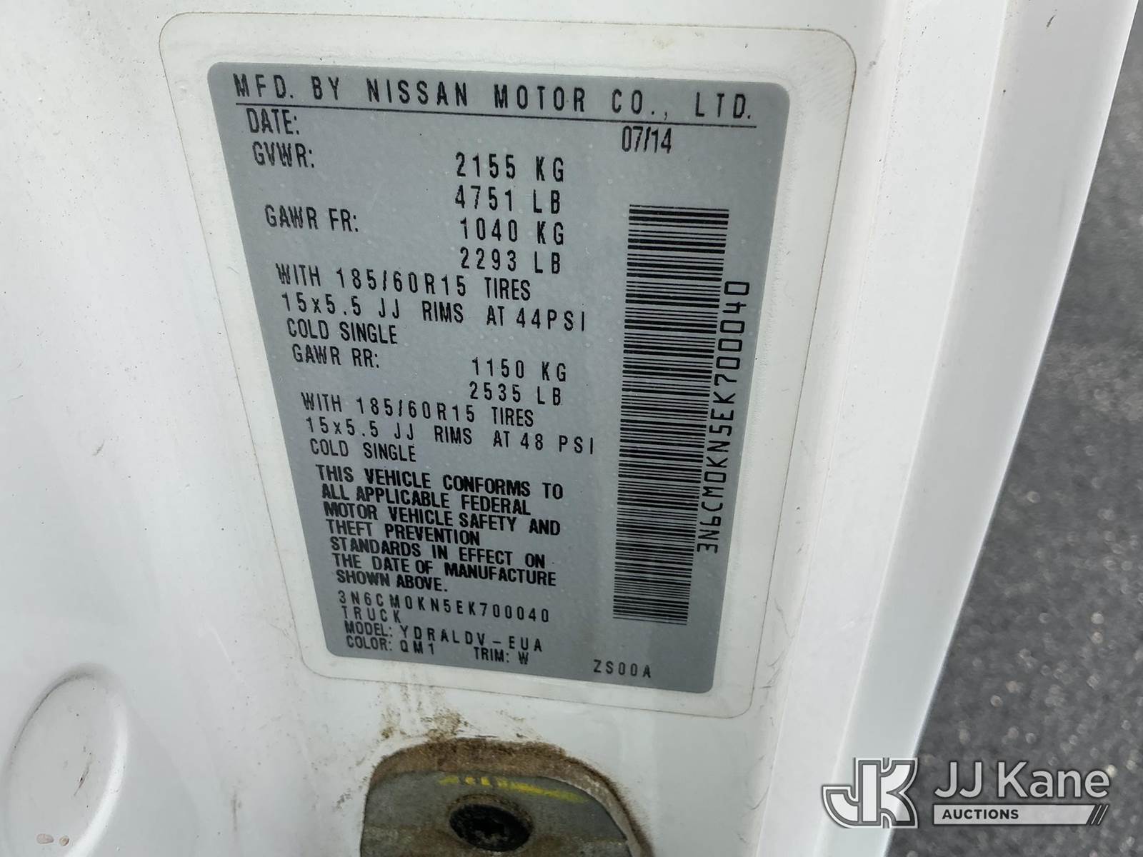 2014 Nissan NV200 Mini Cargo Van, 2.0L L4 DOHC 16V Auto, FWD, Gas, A/C, (128,141 miles) (Starts, Runs, Moves) ( Driver Side Cargo Door Slides Rough.) This is a Titled Item NOTE: This unit is being sold AS IS/WHERE IS via Timed Auction and is located in Indianapolis, IN. For more information & removal arrangements please contact Kurt Detzler @ 317-926-8985 or kurt.detzler@jjkane.com (Buyer is responsible for removal. Assistance by consignor or JJ Kane Auctioneers is not assured.)