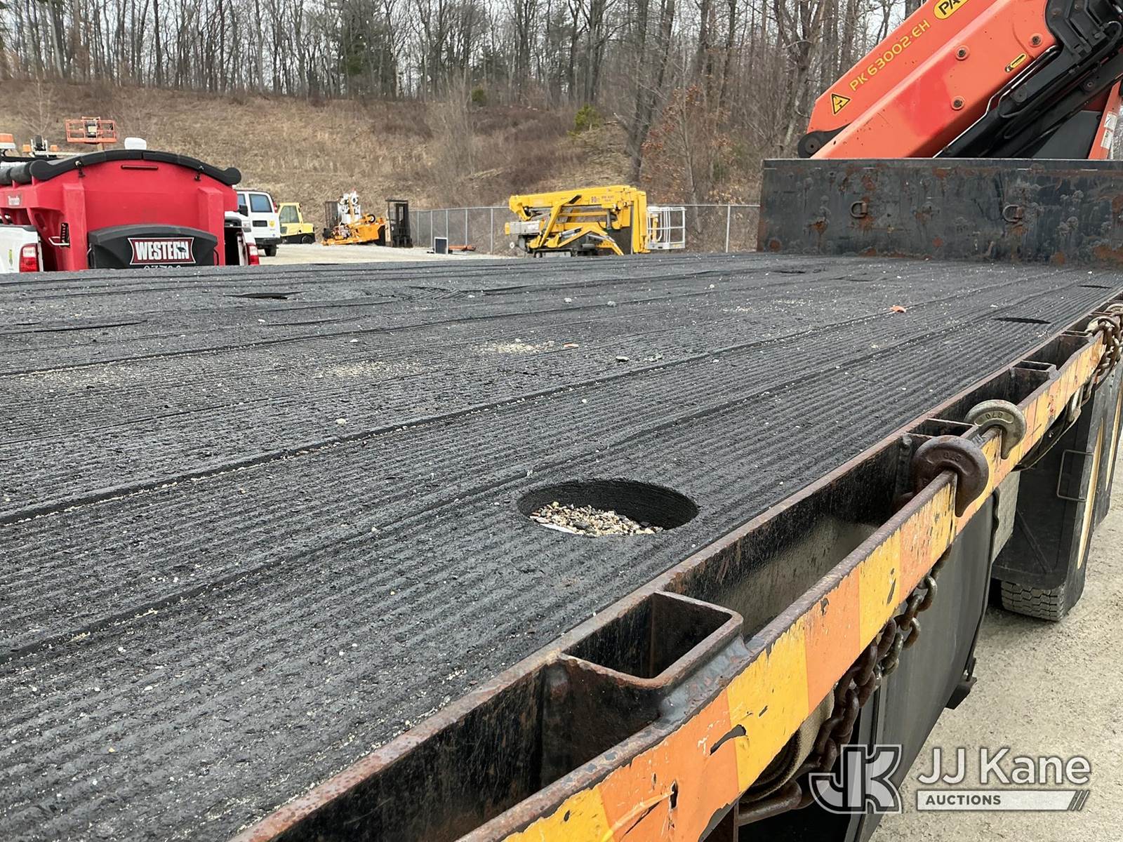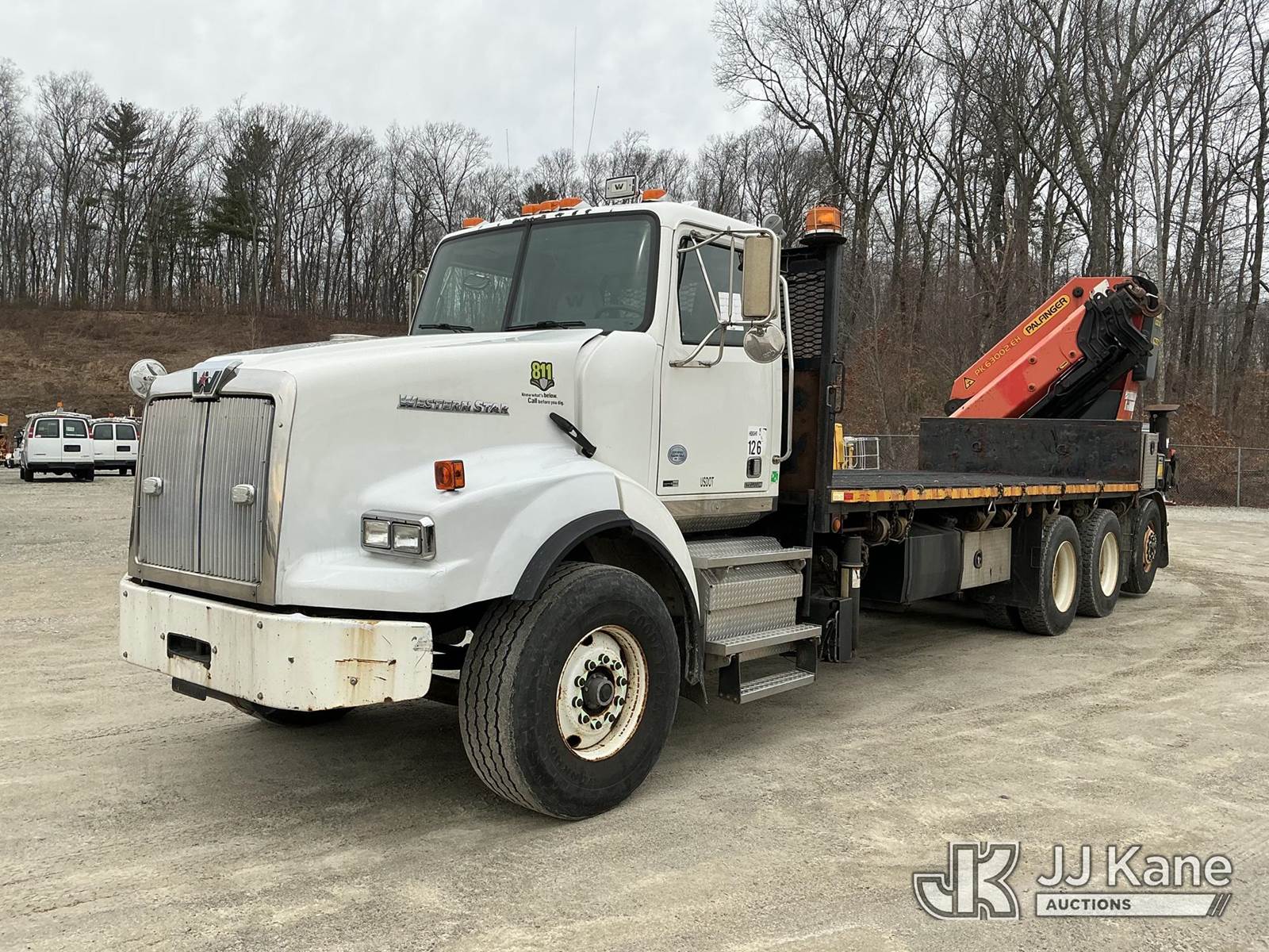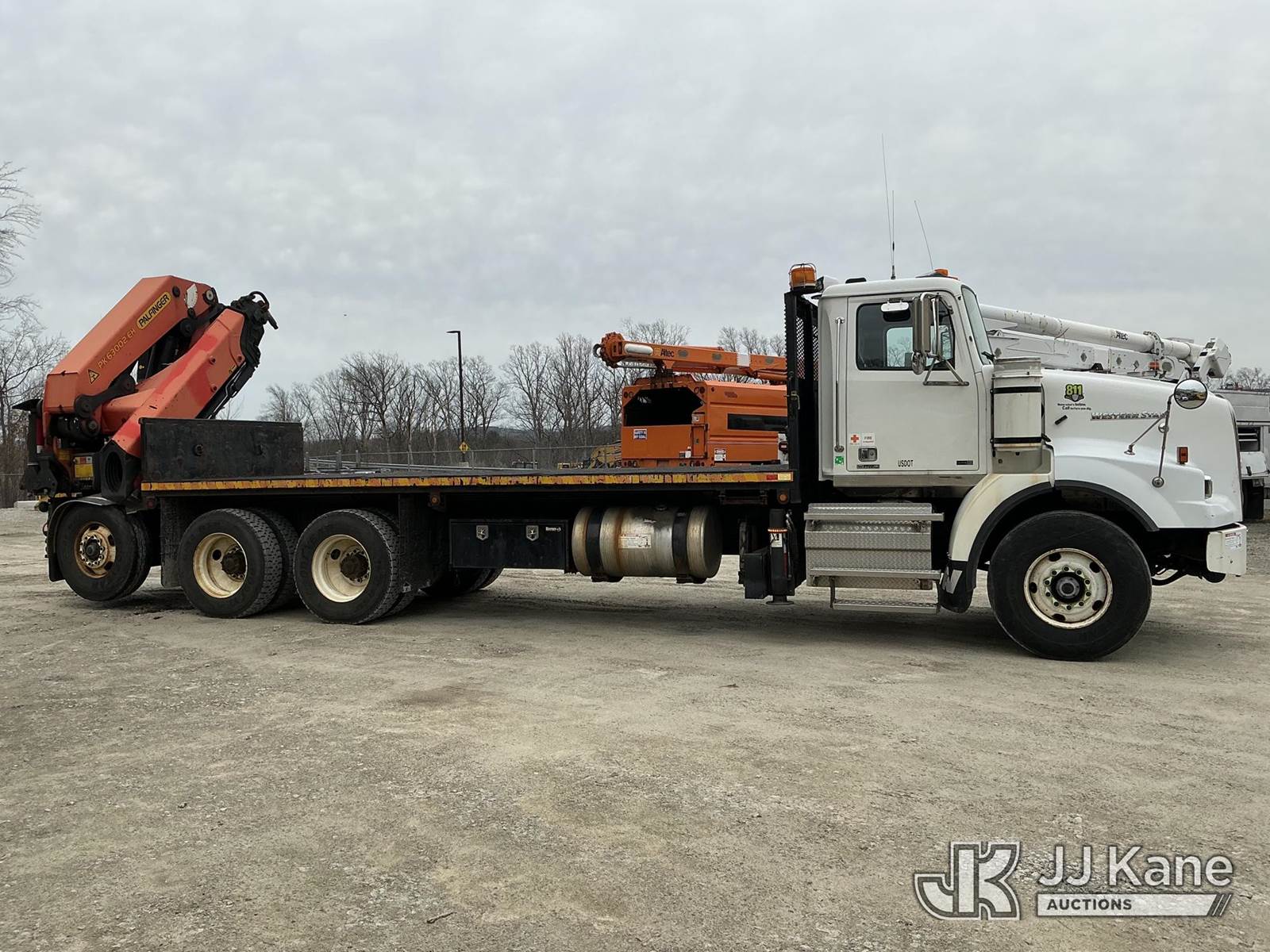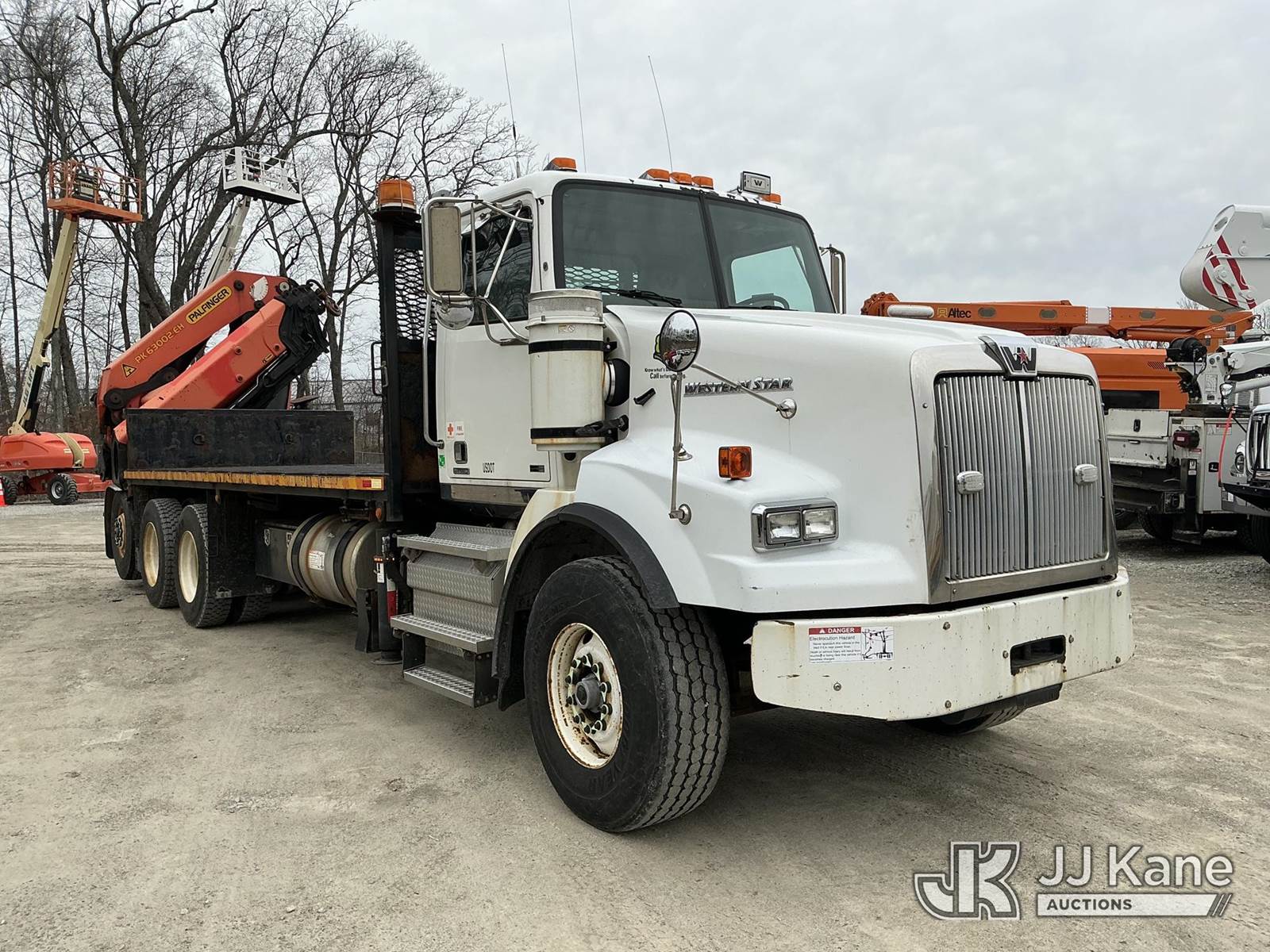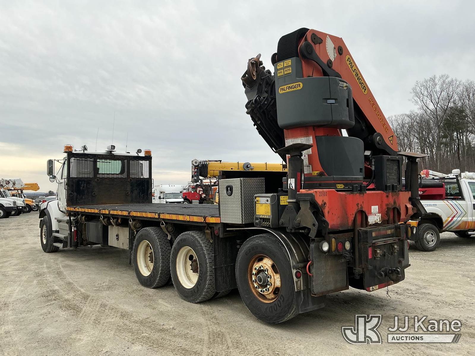 Palfinger PK63002-EH, 45,200 Lb Knuckleboom Crane s/n 100162951, with 48 ft. reach, 6-section hyd boom, & 4 hyd outriggers, rear mounted on 2014 Western Star Trucks 4900 SA T/A Flatbed Truck, Detroit DD13 8X4, diesel, Auto, A/C, with 21 ft. body, air lift tag axle, (177,910 miles) (Runs, Moves & Upper Operates) (Remote Controller In Office) (Reads 9,751 hours) This is a Titled Item NOTE: This unit is being sold AS IS/WHERE IS via Timed Auction and is located in Shrewsbury, MA. Inspection & preview days for this unit are the 2 business days prior to the first day of items closing for this auction, item is located at 11 Fortune Blvd Shrewsbury, MA 01545 and hours of operations are 8a-4p. For pre-sale questions, please contact Rob Gifford @ (508) 864-4126. (Missing manuals, See Auction Company for Manufacturers Information to obtain manuals) Sales Tax Collected Based on Residency (Buyer is responsible for removal. Assistance by consignor or JJ Kane Auctions is not assured.)