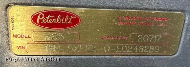 2013 Peterbilt 365 crane truck, Miles: 59,433 on odometer, Hours: 4,912 on meter, VIN: 1NPSXPEXXDD180338, Engine, Paccar, Serial: Y011456,...