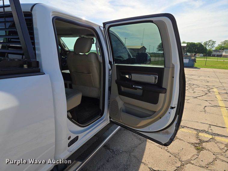 2012 RAM 3500 flatbed pickup truck, Miles: 229,736 on odometer, Hours: 6,565 on meter, VIN: 3C63DRAL9CG325297, Engine, Displacement: 6.7L,...