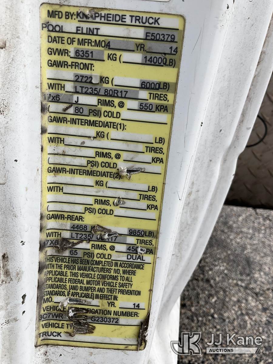 2014 RAM 3500 Enclosed High Top Service Truck, Cummins 6.7L diesel, Auto, A/C, with aux fuel tank, (126,288 miles) (Runs & Moves) (Body/Rust Damage) (Seller States: Bad Alternator) (FL Residents Purchasing Titled Items – tax, title & registration fees will be collected at the maximum rate of $400.00 under 25,999 and $800.00 for Over 26,000 and $250.00 for Trailers – Proof of insurance is mandatory; Out of State Residents Purchasing Title Items – tax will be collected based upon your state rate) (Reads 5,331 hours) This is a Titled Item NOTE: This unit is being sold AS IS/WHERE IS via Timed Auction and is located in West Palm Beach, FL. Inspection & preview days for this unit are the 2 business days prior to the first day of items closing for this auction, item is located at 2570 Old Okeechobee Rd West Palm Beach, FL 33409 and hours of operations are 8a-4p. For pre-sale questions, please contact Andy Garcia @ (561) 215-0085. (Buyer is responsible for removal. Assistance by consignor or JJ Kane Auctions is not assured.)