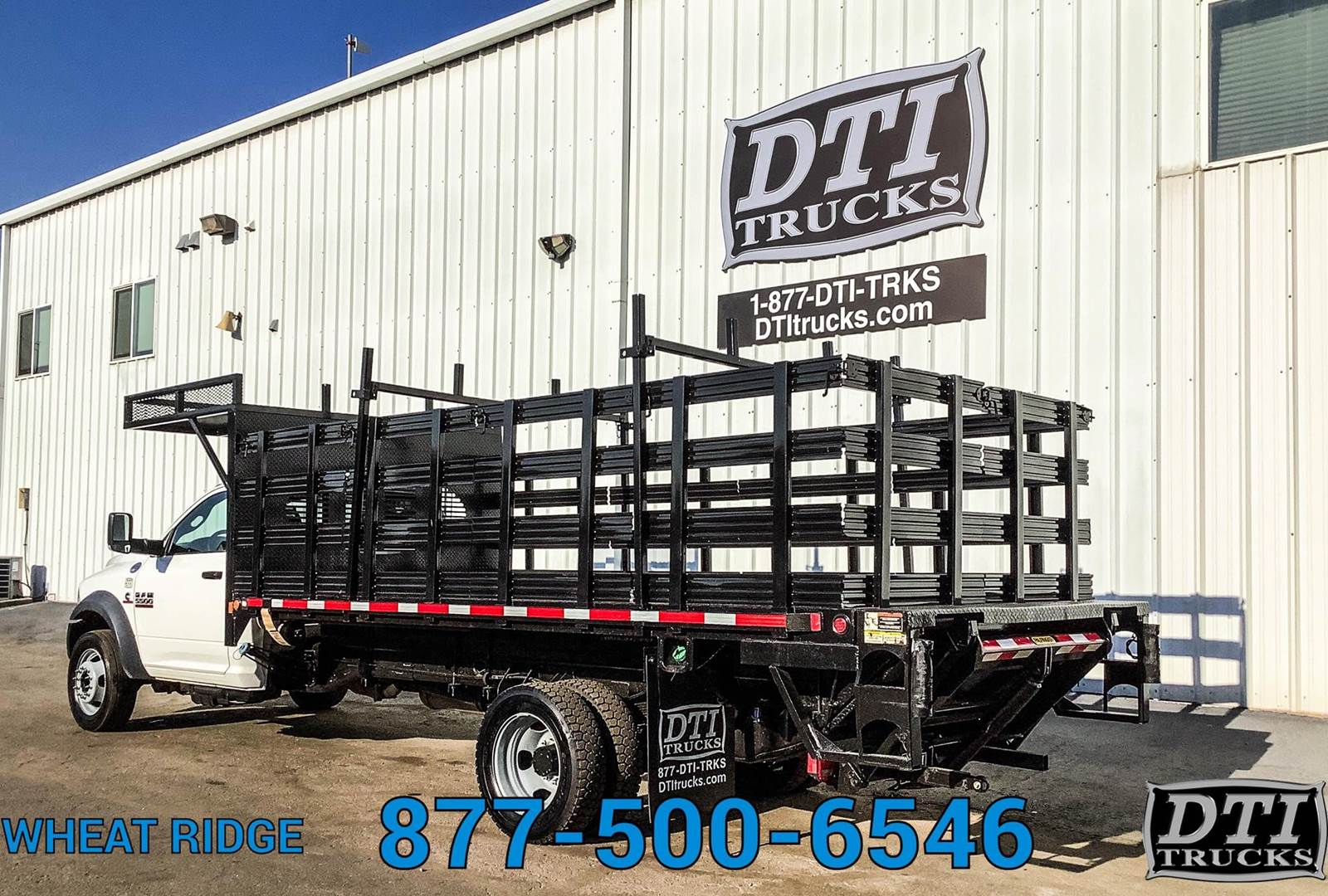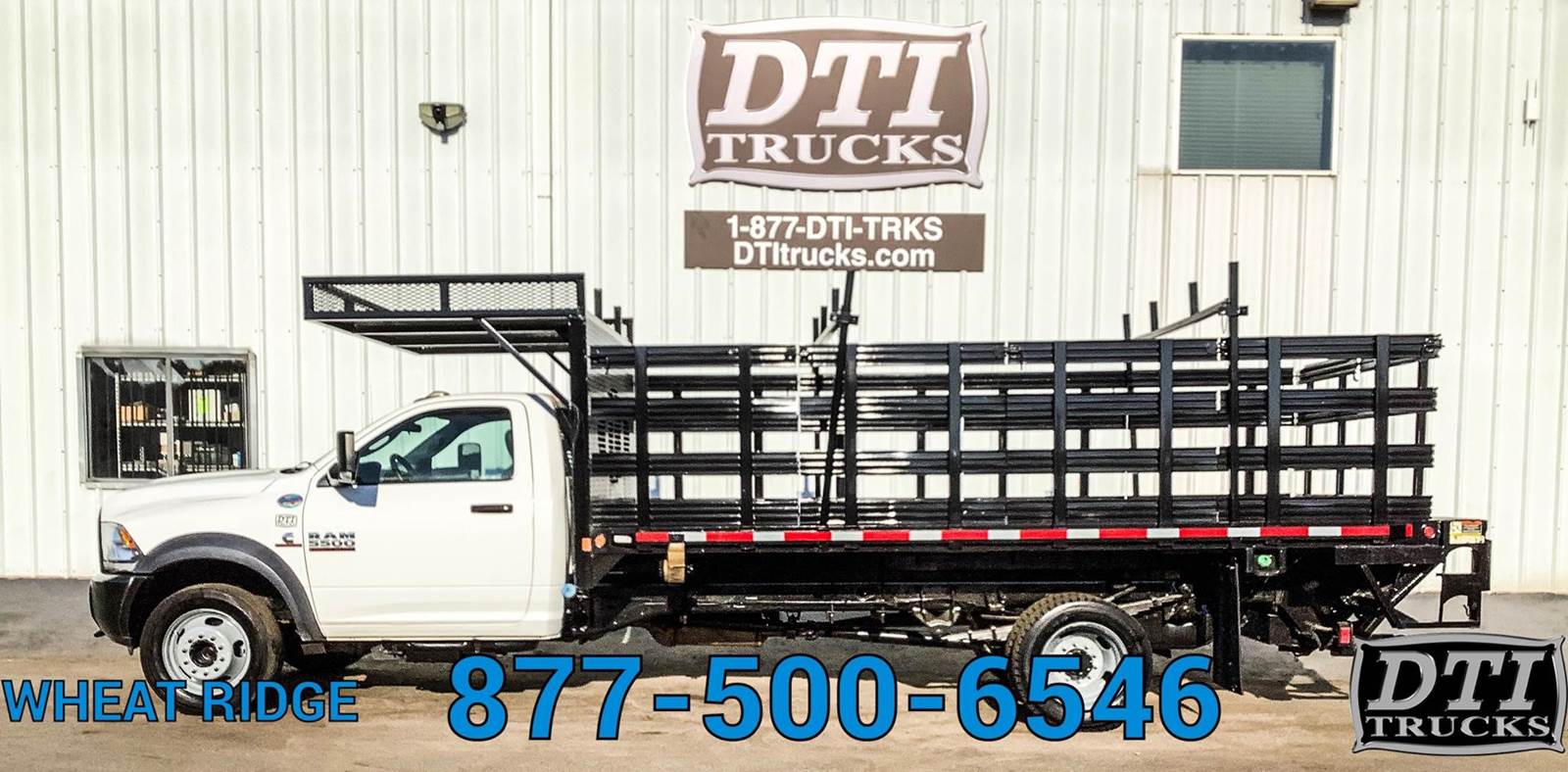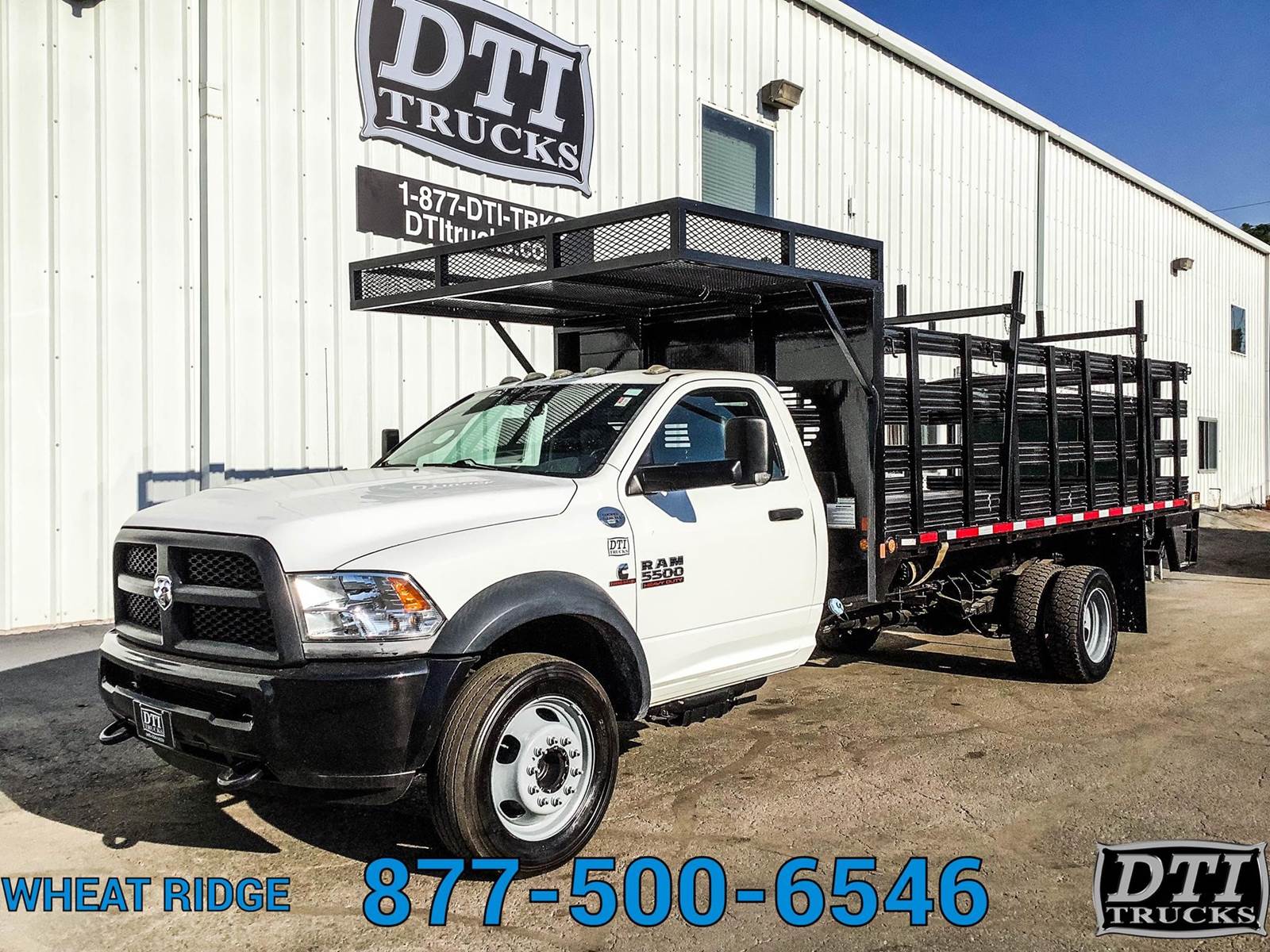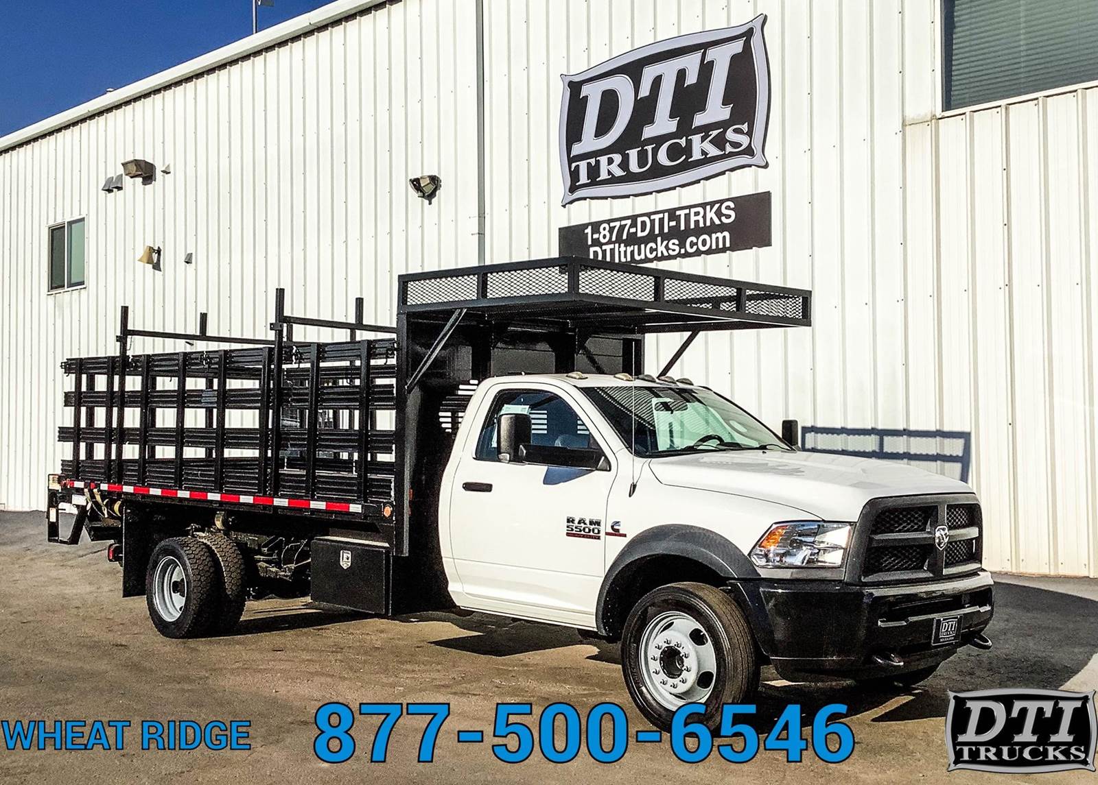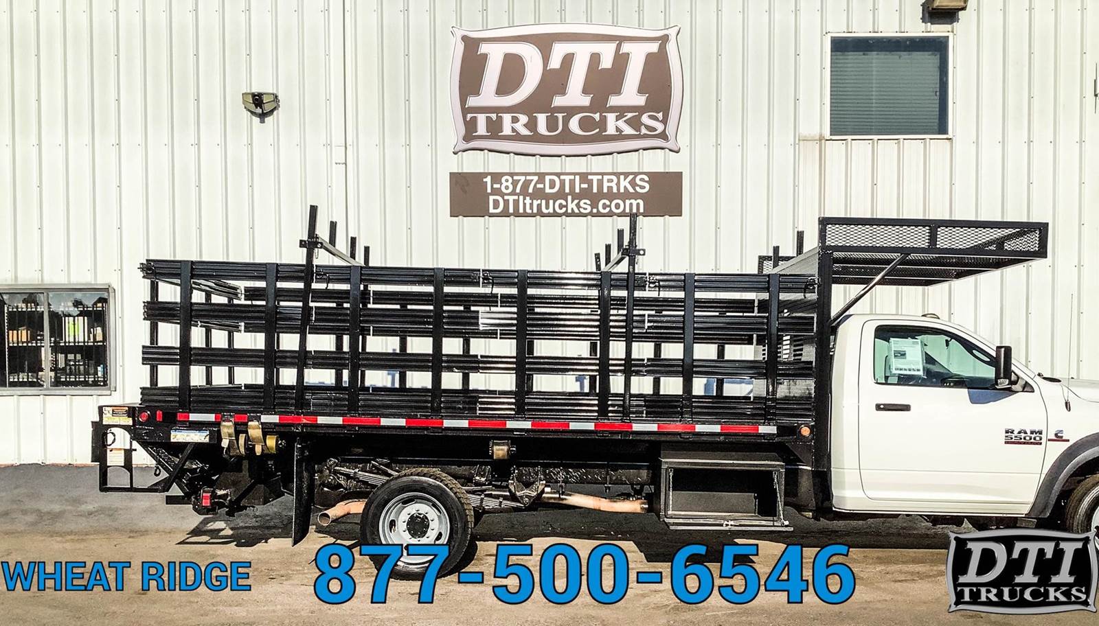 2014 Ram 5500 16' Flatbed, 6.7L Cummins Turbo Diesel Engine, Automatic Transmission, 4x4, 117,554 Miles, 4229 Engine Hours, 19,500lb GVWR (No CDL Required), 7,000lb Front Axle, 13,500lb Rear Axle, 207" Wheelbase, 120" Cab to Axle, Spring Suspension, 225/70R19.5 Tires, Steel Wheels, DEF / DPF (California Compliant), Hydraulic Brakes, 16' Flatbed + 5ft Basket over the cab, 96" Wide, 42" Tall Stake Sides, Palfinger 2500lb Lift Gate, 80" Wide x 40" Long Lift Gate Platform, 4 Sliding Winch Straps, 1 Underbody Toolbox 36x22x18, Exhaust Brake, A/C. Tilt Steering Wheel, Cruise Control, AM/FM Radio, Bluetooth, POwer Windows, Power Locks, Power Mirrors, Heated Mirrors, Vinyl Seating for 3. This Flatbed Truck is Available at DTI Trucks in Wheat Ridge, CO. Call our Truck Sales Team at for More Information. Commercial Lending Options Available. We Pick Up Out of State Customers From the airport. Stock# 17505M