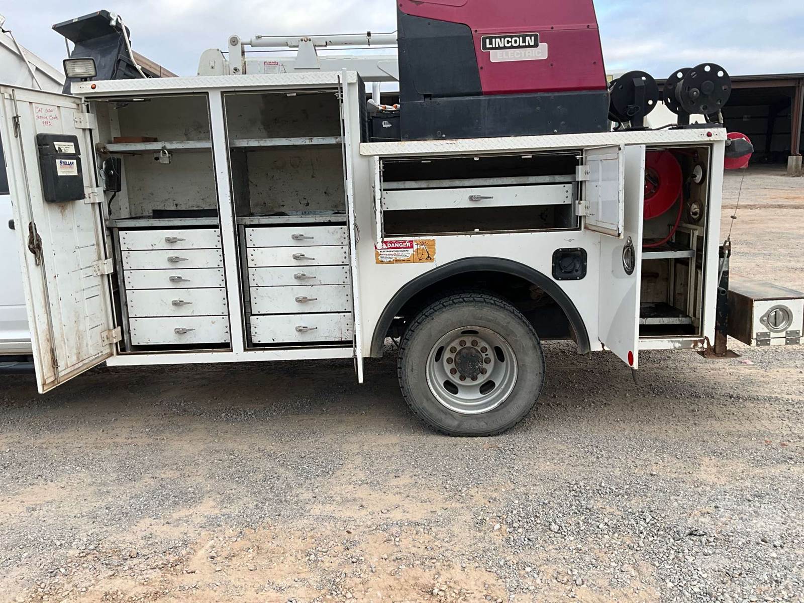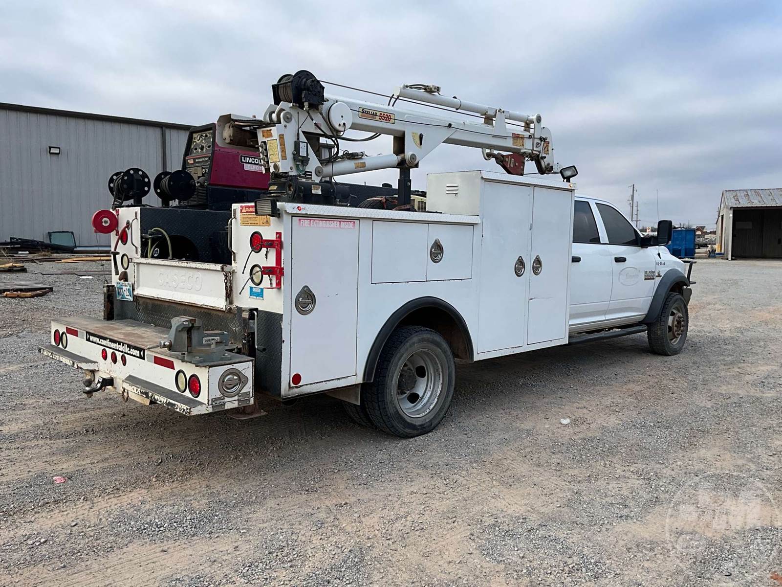 S/A MECHANICS TRUCK, CUMMINS, 6.7, AUTOMATIC, 4X4, SPRING SUSPENSION, 198 " WB, GVWR 0, 11' UTILITY BODY, STELLAR, 5520, MANUAL OUTRIGGERS, CORDED REMOTE, LINCOLN, 250 AMP WELDER, GAS AIR COMPRESSOR, HOSE REEL, BULK FUEL TANK, VISE, STEEL DISC WHEELS, 245/70R19.5, ODOMETER READS: 122752