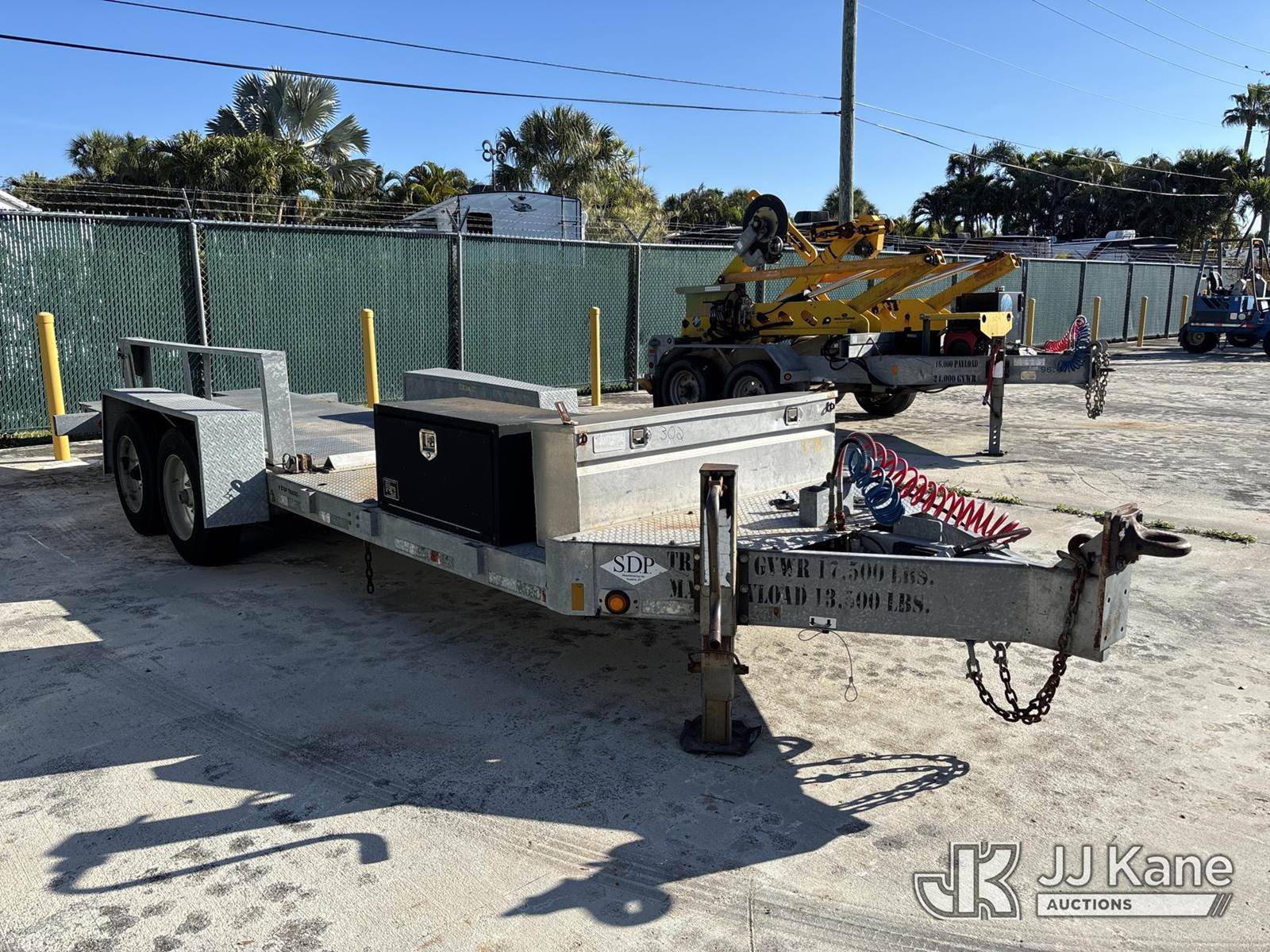2014 SDP 8 ton T/A Galvanized Tilt Deck Tagalong Equipment Trailer, with Air Brakes, 16 Ft Long, (Body & Paint Damage) (FL Residents Purchasing Titled Items - tax, title & registration fees will be collected at the maximum rate of $400.00 under 25,999 and $800.00 for Over 26,000 and $250.00 trailers - Proof of insurance is mandatory; Out of State Residents Purchasing Title Items - tax will be collected based upon your state rate.) This is a Titled Item NOTE: This unit is being sold AS IS/WHERE IS via Timed Auction and is located in Riviera Beach, FL. An inspection day for FPL auction items will be conducted on the Friday before the auction from 8a-3p at 2455 Port West Boulevard, Riviera Beach, FL 33407. Winning Buyer/Hauler must present copy of paid invoice upon arrival to pick up. For load out and pick up information, please reference the release form sent out after purchase. Any more information please call Andy Garcia @ 561-215-0085. Sales Tax Collected Based on Residency (Buyer is responsible for removal. Assistance by consignor or JJ Kane Auctions is not assured.)
