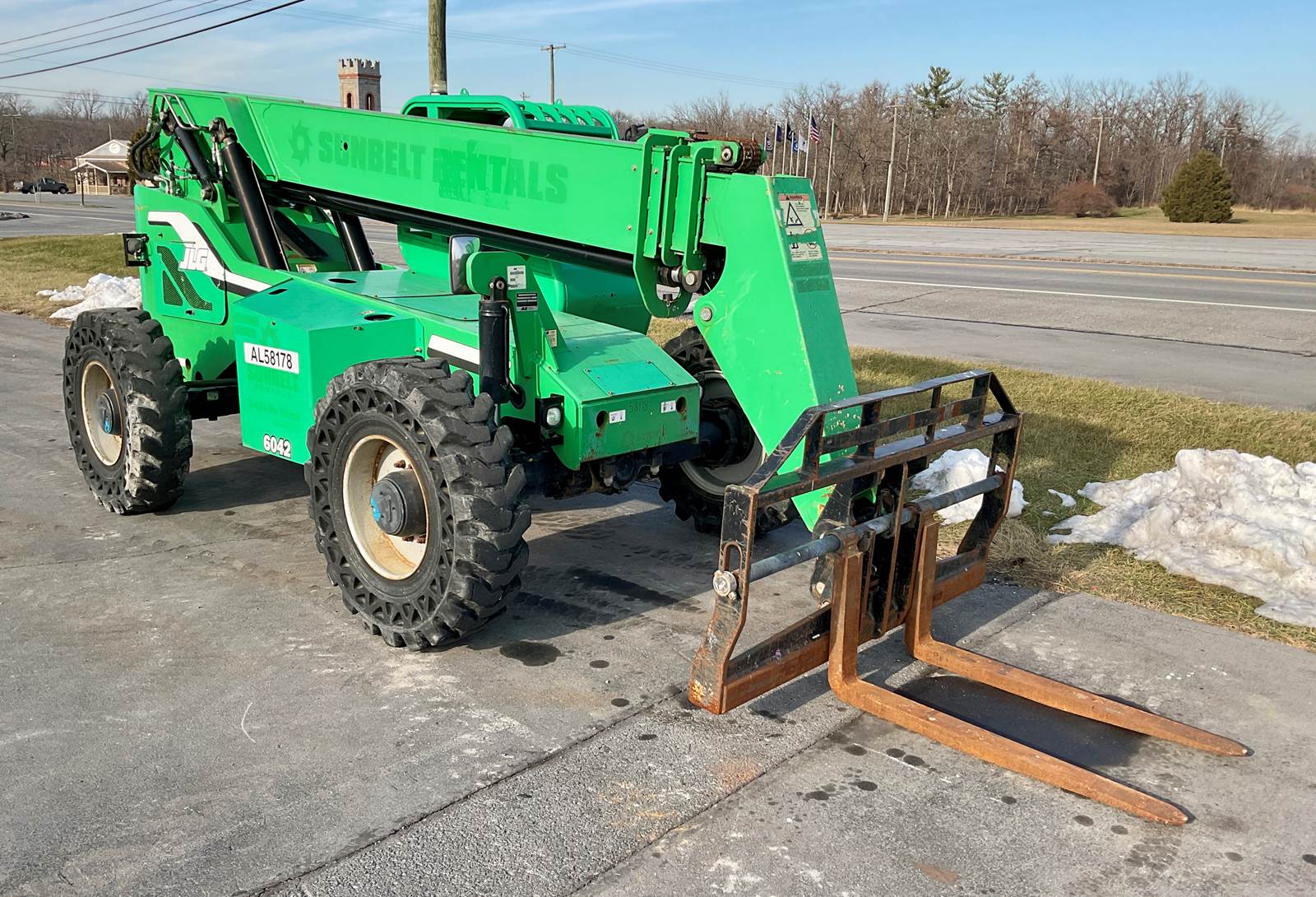 The 2014 SkyTrak 6042 Telehandler is a proven mid-range workhorse built for reliable lifting, loading, and material placement on construction sites, industrial yards, and rental fleets. With a 6,000 lb lift capacity and a 42 ft maximum lift height, this unit delivers the versatility operators need for daily productivity while maintaining SkyTrak’s reputation for durability and simple serviceability. The 6042’s rugged frame, intuitive controls, and stable handling make it ideal for rough terrain work, and its efficient powertrain ensures steady performance even in demanding conditions.