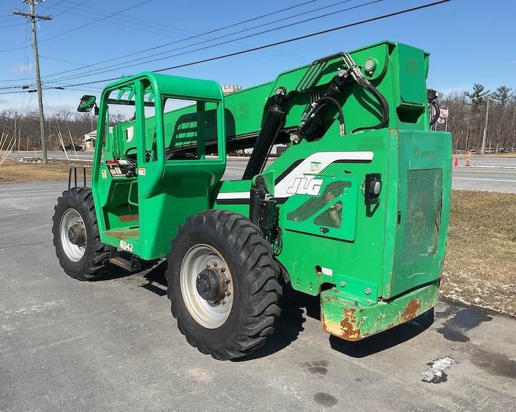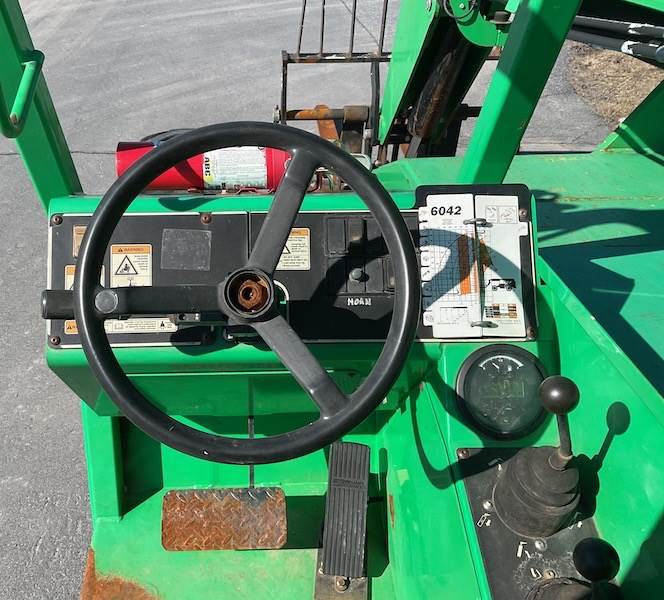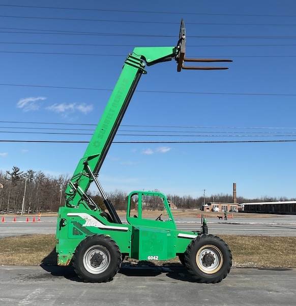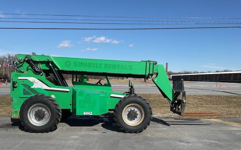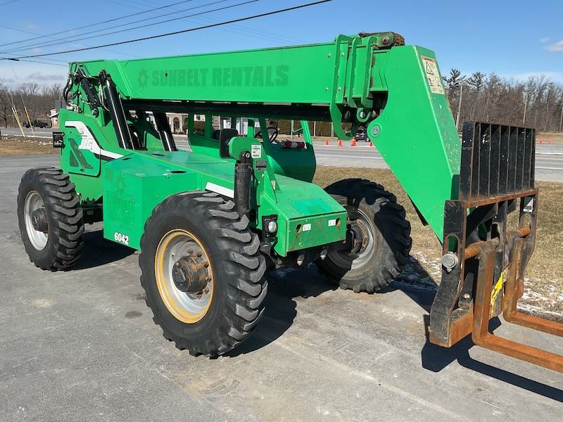 In addition, four-wheel drive and all-terrain tires offer excellent traction on rough ground. Furthermore, the tight turning radius and frame-leveling system make operation easy in confined areas. Therefore, the 6042 maintains smooth control, operator comfort, and productivity throughout long workdays. For this reason, it remains one of the most popular telehandlers in its class.