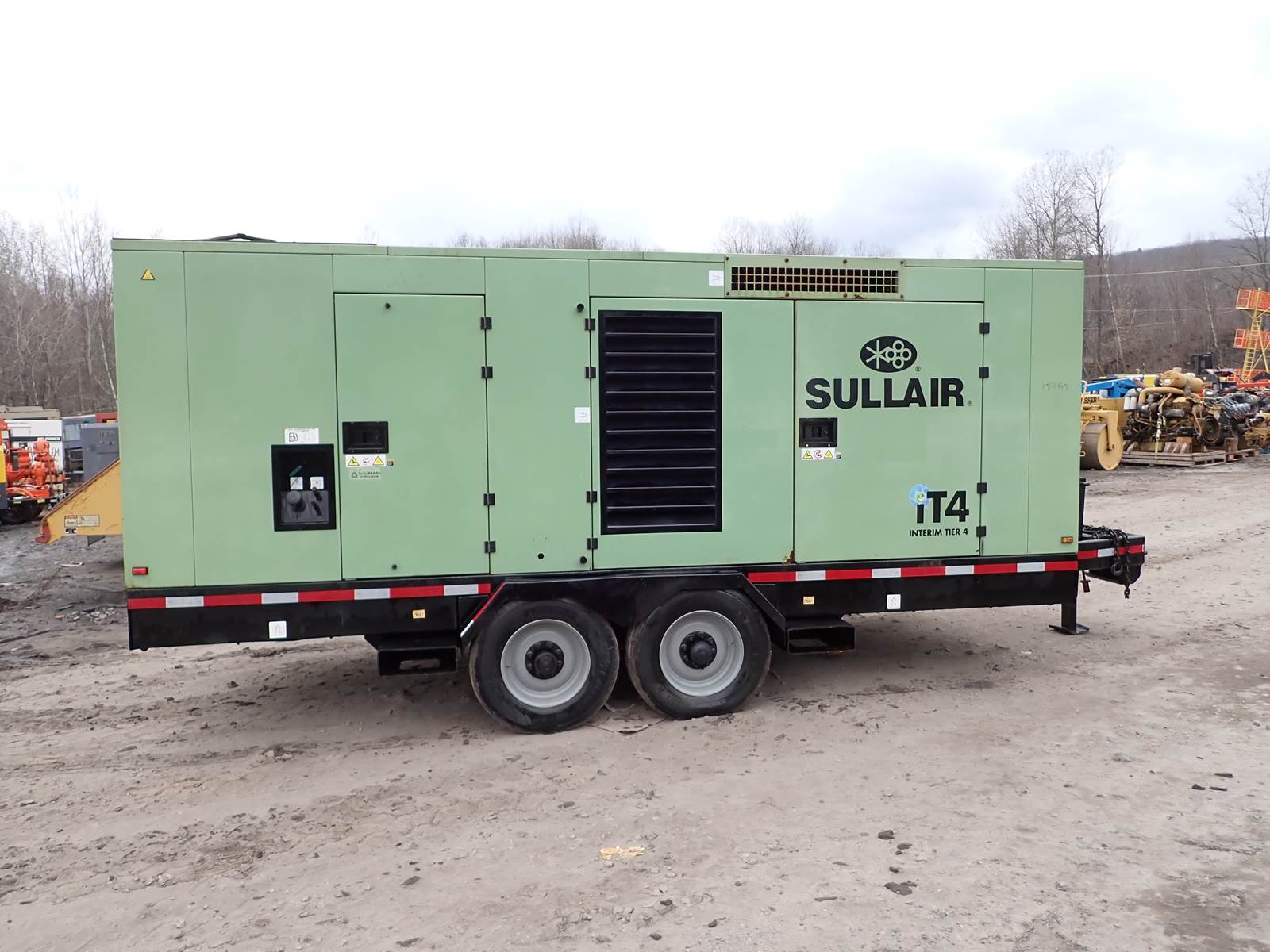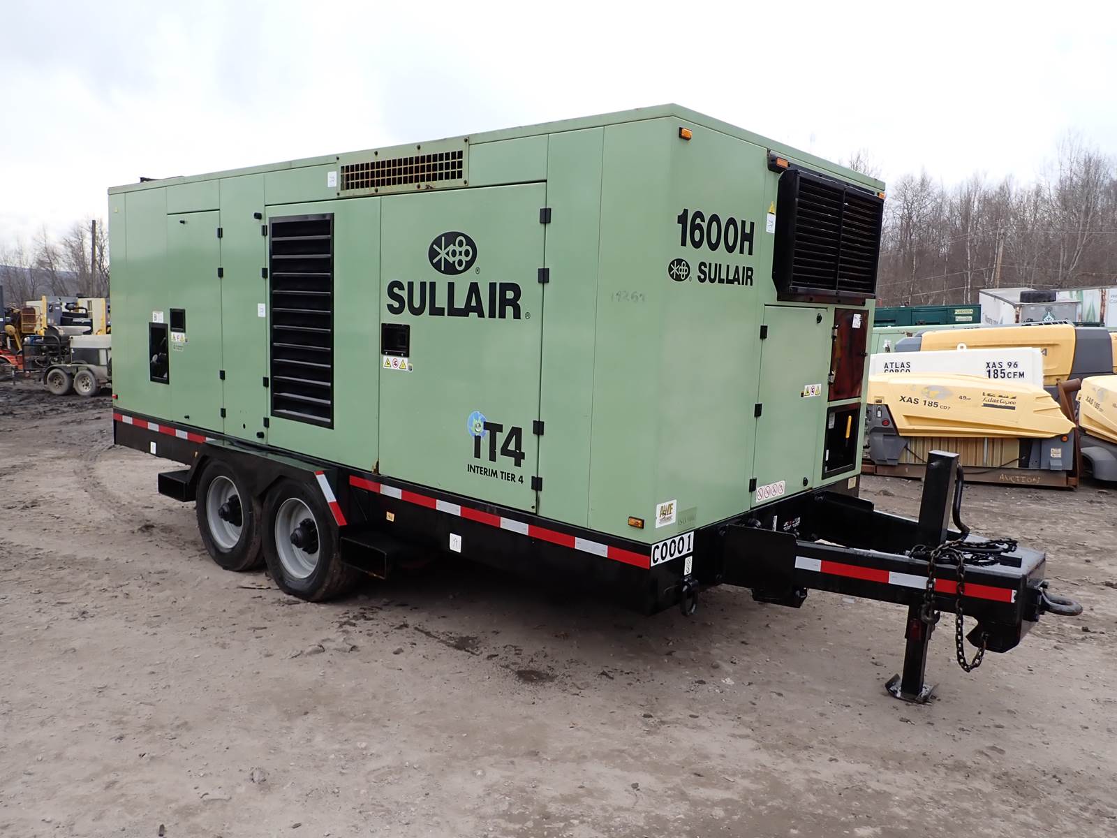 2014 Sullair 1600FH air compressor, 1600H series, 1600 CFM output at 150 PSI pressure rating, high/low pressure switch, selectable, regular and aftercooled/instrument quality air circuits, Caterpillar C15 turbo diesel engine, tier 4 interim emissions rating, trailer mounted, towable, 4403 total hours. NICE RUNNING COMPRESSOR, SEE VIDEO. RUNS AND OPERATES, CLEAN CONDITION OVERALL -- LATE & GREAT MODEL AS PICTURED -- LOW TIME -- NICE UNIT !!