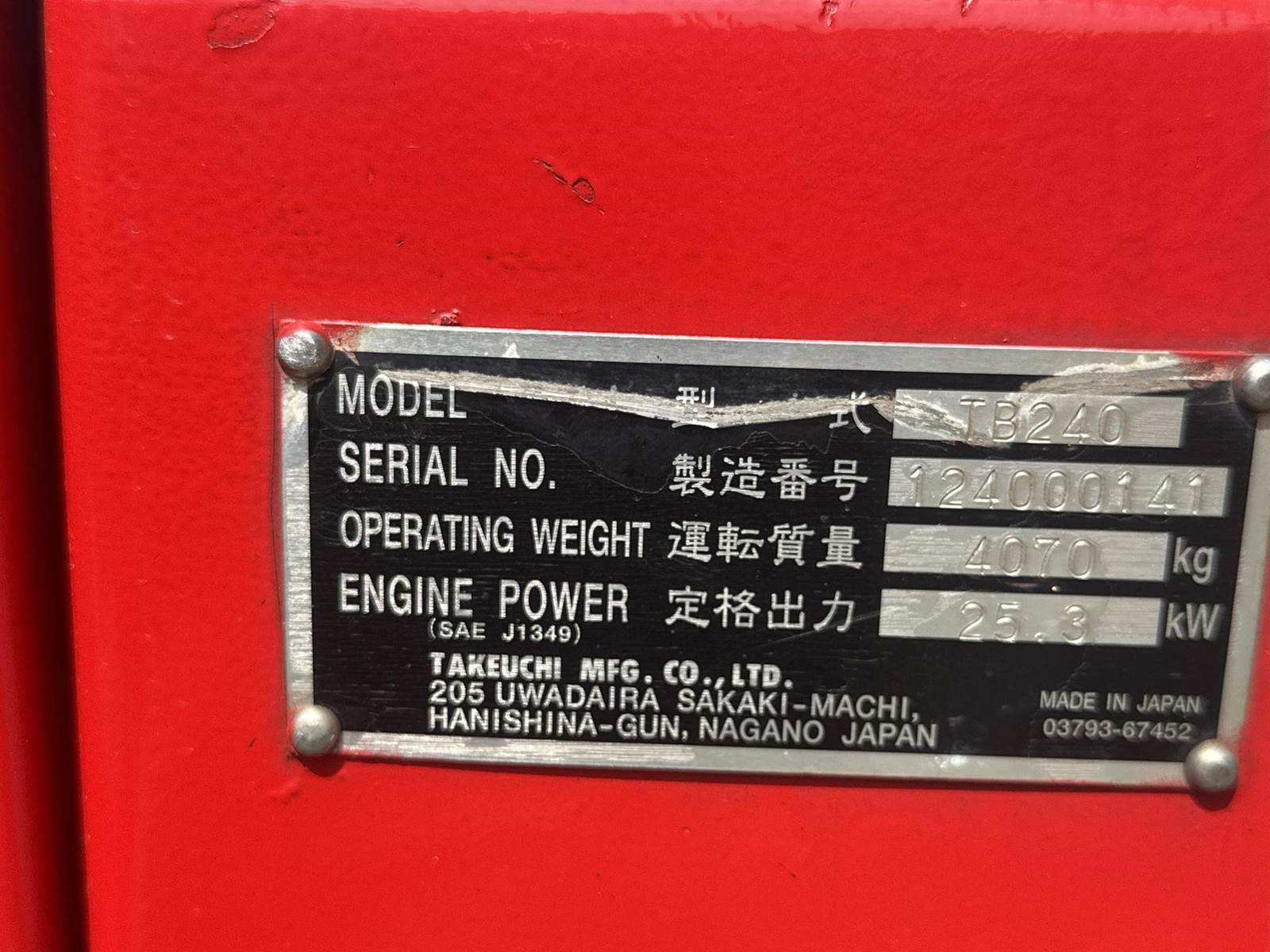 2014 Takeuchi TB240 Mini Excavator