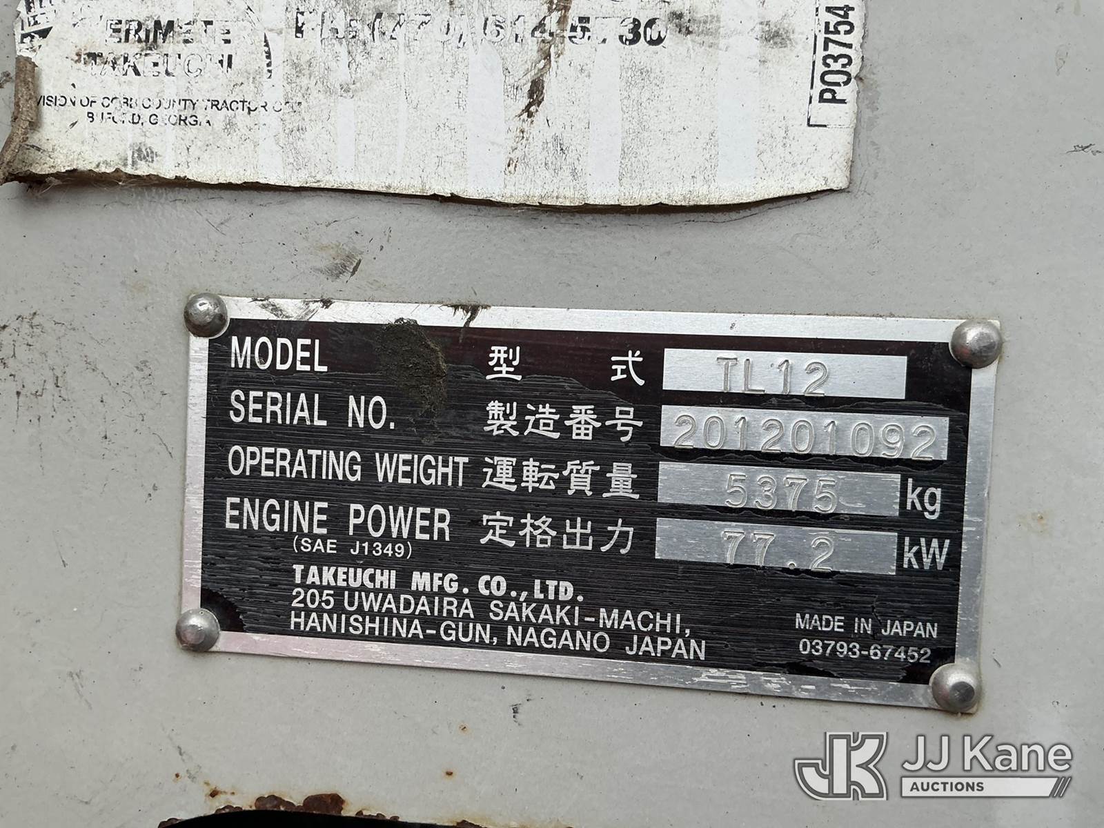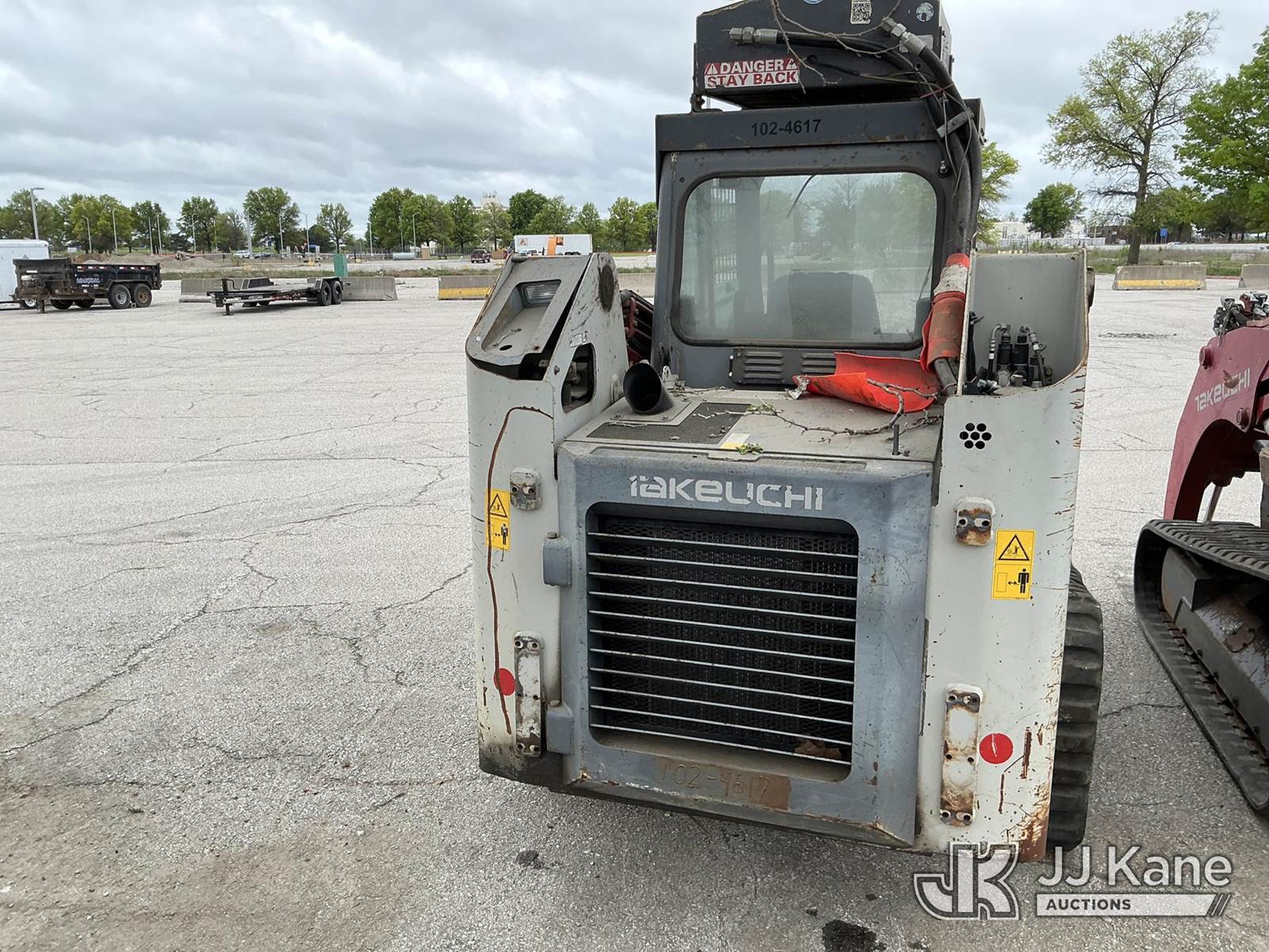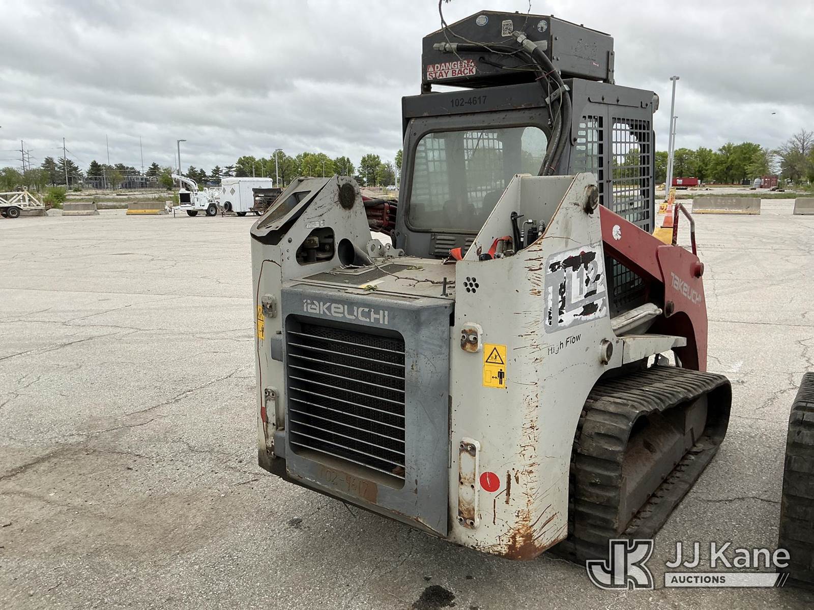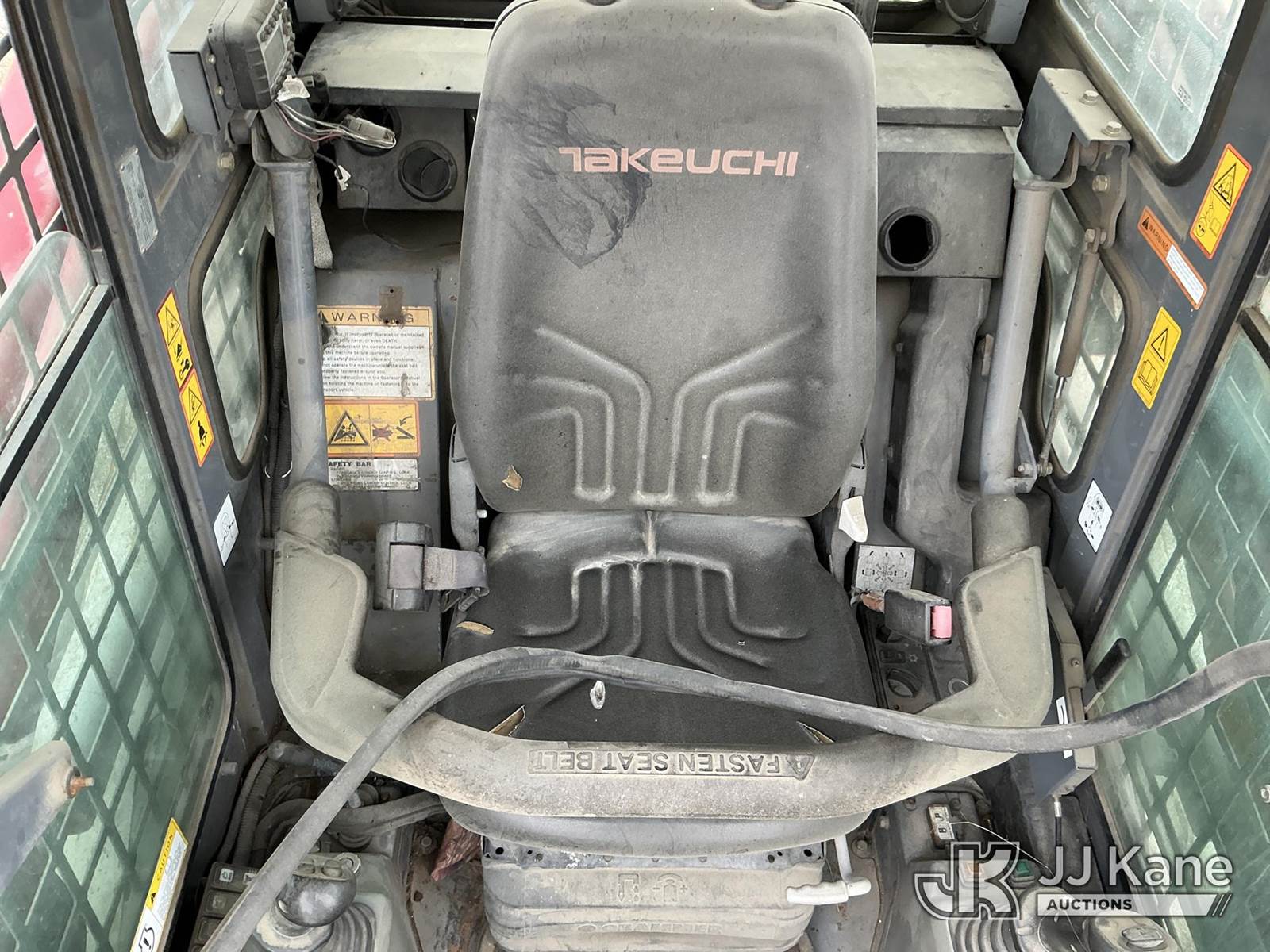 2014 Takeuchi TL12 Tracked Skid Steer Loader, s/n 201201092, diesel, Hydraulic Driven, A/C, with Rubber Tracks, Aux. Hydraulics, No Bucket & EROPS, Does not run hydraulic and electrical issues (Not Running, Conditions Unknown) (Seller States: Electrical & Hydraulic Issues) (Reads 5,600 hours) NOTE: This unit is being sold AS IS/WHERE IS via Timed Auction and is located in Kansas City, MO. Inspection & preview days for this unit are the 2 business days prior to the first day of items closing for this auction, item is located at 962 Tel Aviv Ave Kansas City, MO 64153 and hours of operations are 8a-4p. For pre-sale questions, please contact Ricky McPherson @ (816) 610-2250. (Buyer is responsible for removal. Assistance by consignor or JJ Kane Auctions is not assured.)