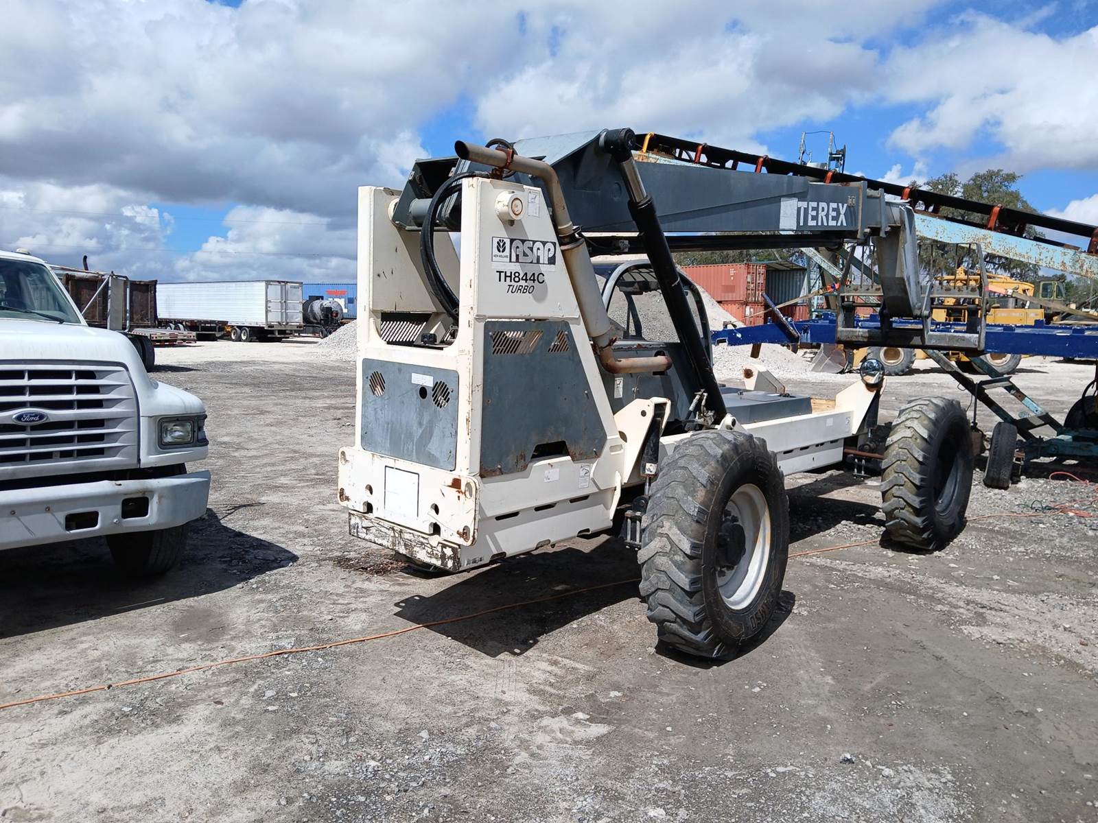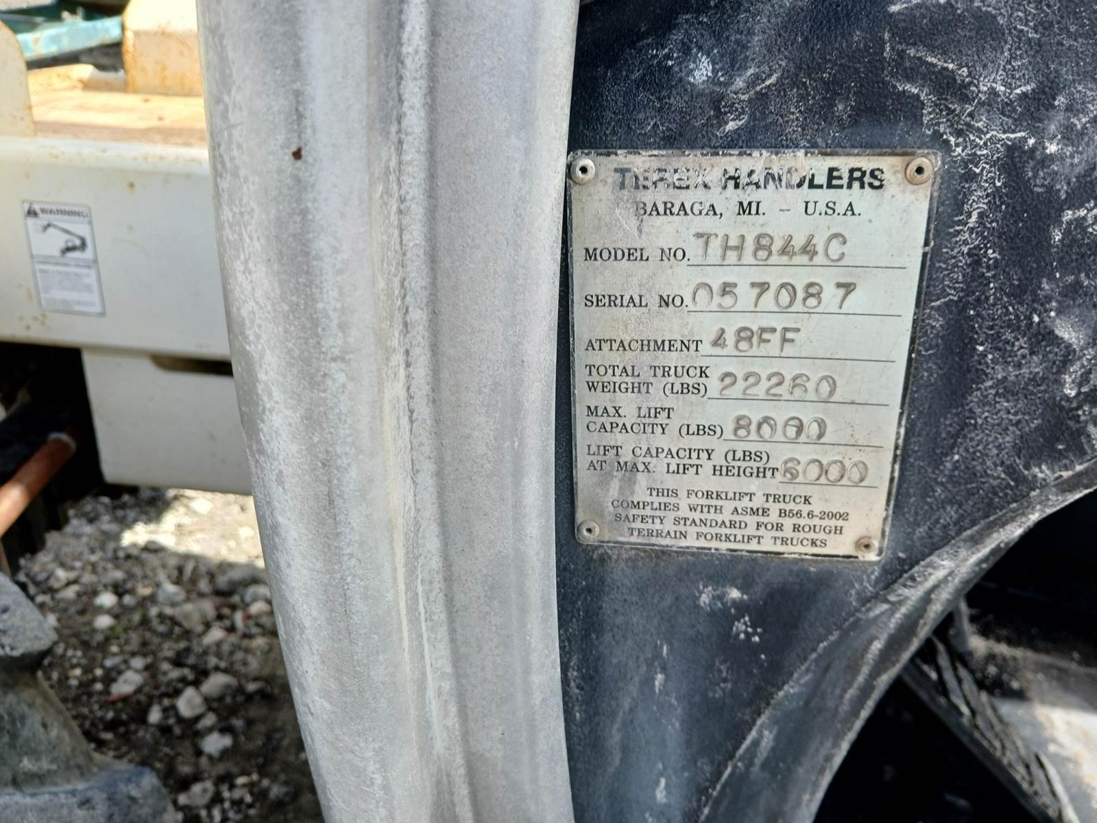 Terex Th844c turbo 4WD, rough terrain telehandler. Low 2336 hours. John Deere 4045turbo 99 h.p. diesel. Power shift 3 gear trans. Boom and touch controls.48 FF attachment. 8000 lb. max lift. Stage 3 Boom.