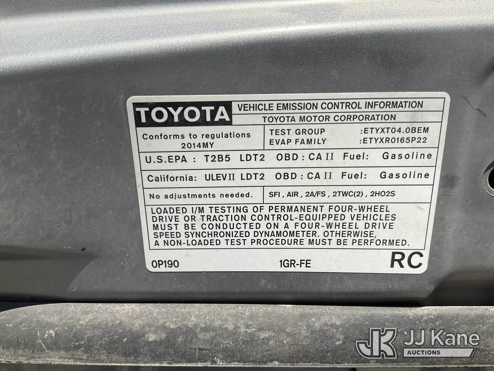 2014 Toyota Tacoma 4x4 Crew-Cab Pickup Truck, 6-cyl gas, Auto, A/C, with bed cover, (111,695 miles) (Runs & Moves) This is a Titled Item NOTE: This unit is being sold AS IS/WHERE IS via Timed Auction and is located in Salt Lake City, UT. Inspection & preview days for this unit are the 2 business days prior to the first day of items closing for this auction, item is located at 2353 N Redwood Rd Salt Lake City, UT 84116 and hours of operations are 8a-4p. Titles executed exactly as bidder registered. Ensure your name and/or business name and address in JJ Kane and/or ProxiBid is correct before bidding. For pre-sale questions, please contact Office Staff @ (801) 519-0123. (Buyer is responsible for removal. Assistance by consignor or JJ Kane Auctions is not assured.)