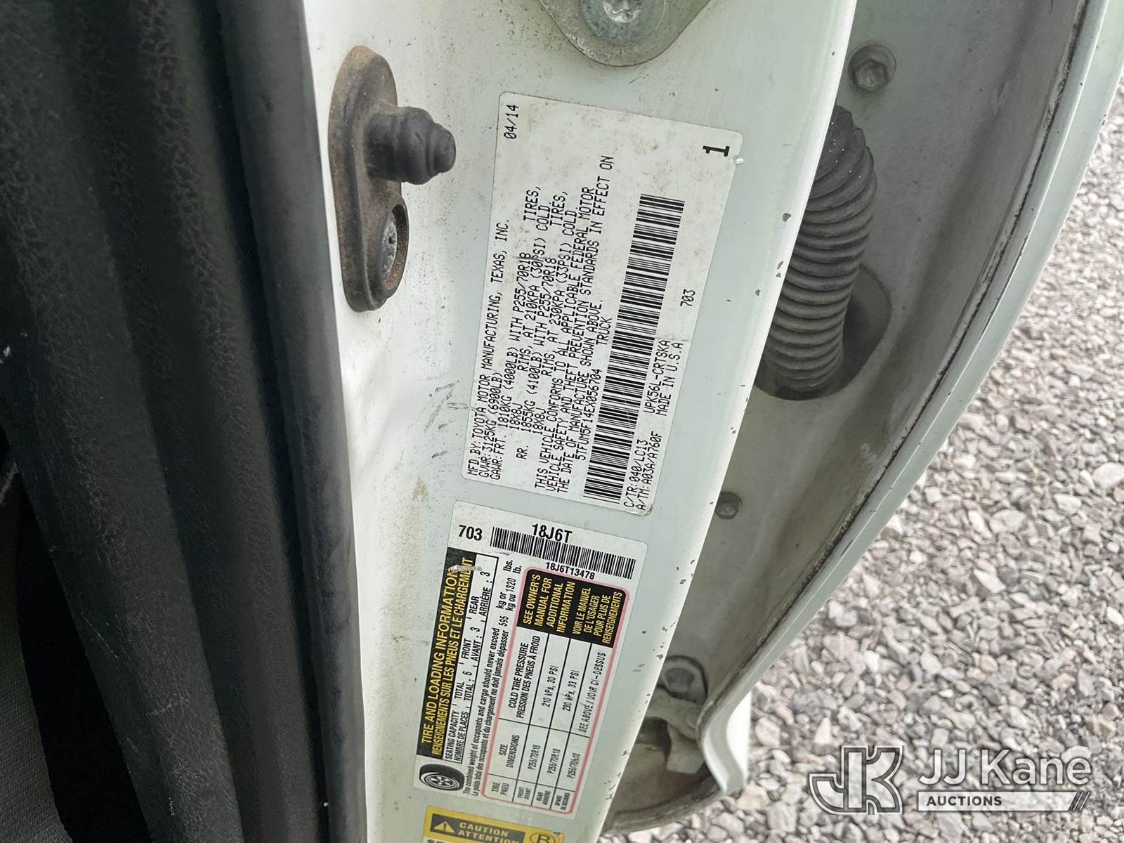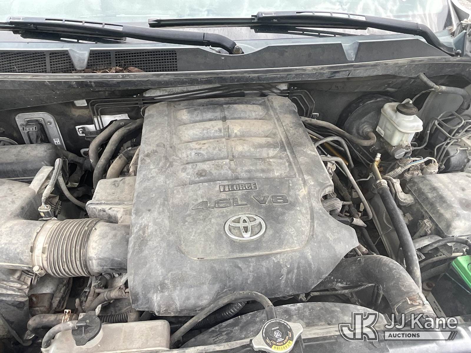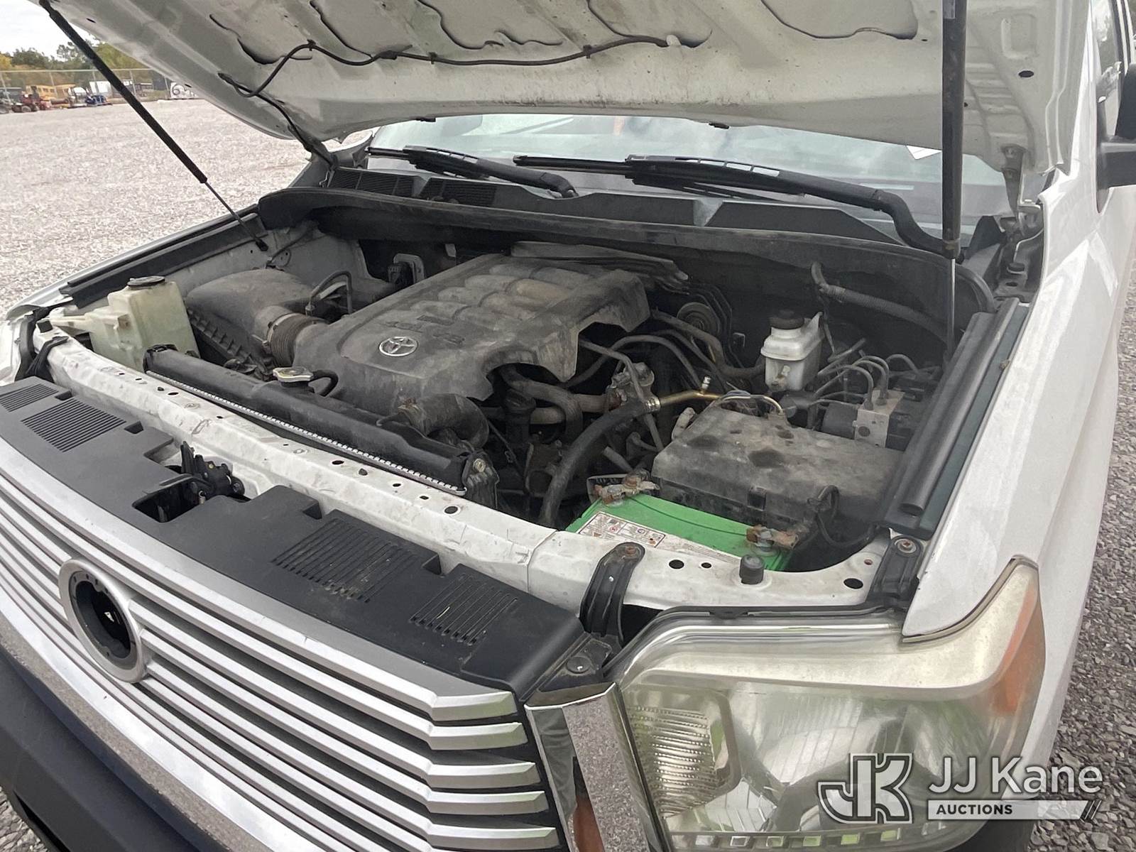 2014 Toyota Tundra SR5 Double Cab Pickup Truck, 4.6L V8 DOHC 32V Auto, 4wd, Gas, A/C, (304,355 miles) (Runs & Moves) (Smokes, Runs Rough, Leaking Coolant, Body Damage, Dash Damage, No Brakes, Bad Battery, Needs Battery Pack To Run) This is a Titled Item NOTE: This unit is being sold AS IS/WHERE IS via Timed Auction and is located in Verona, KY. Inspection & preview days for this unit are the 2 business days prior to the first day of items closing for this auction, item is located at 2841 Verona-Mudlick Rd Ste B Verona, KY 41092 and hours of operations are 8a-4p. For pre-sale questions, please contact Office Staff @ (502) 612-5080. Auctioneer Michael Whitebread / License # 256617. (Buyer is responsible for removal. Assistance by consignor or JJ Kane Auctioneers is not assured.)