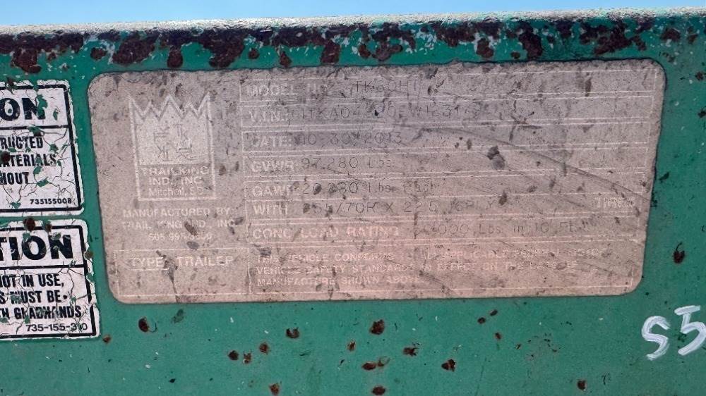 2014 TRAIL KING TK80HT-48 EQUIPMENT TRAILER, 97,280# gvwr, 102"x9' upper deck, 102"x38' deck, Warn 20XL winch, Right Weigh load scale, air ride suspension, 4' hydraulic dovetail. s/n:1TKA04820EW123179