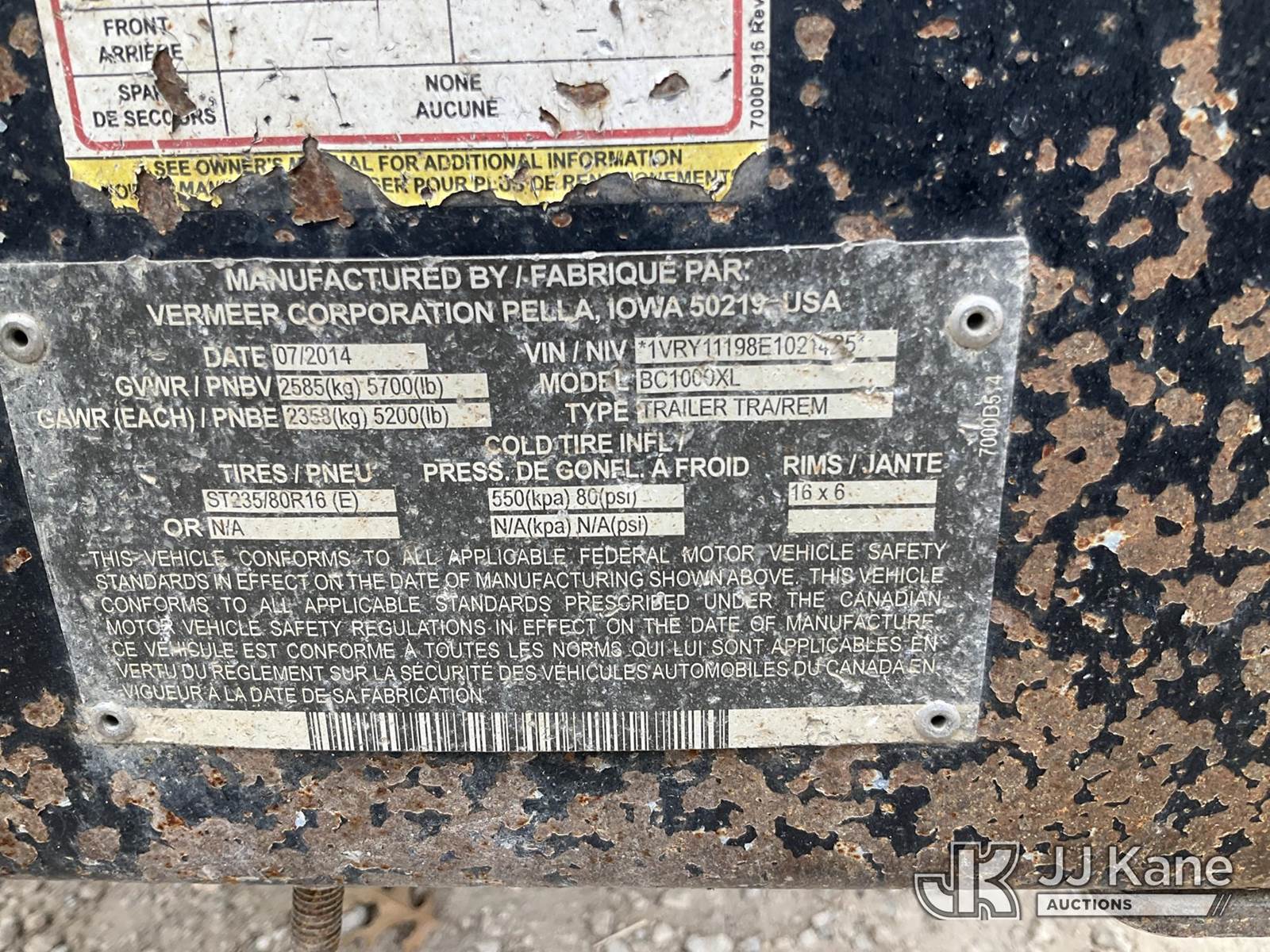 2014 Vermeer BC1000XL Chipper (12in Drum), gas, (Not Running, Conditions Unknown, No Key)(Seller States: Aged unit has electrical issues and bad wiring harness) This is a Titled Item NOTE: This unit is being sold AS IS/WHERE IS via Timed Auction and is located in Waxahachie, TX. Inspection & preview days for this unit are the 2 business days prior to the first day of items closing for this auction, item is located at 999 Solon Rd Waxahachie, TX 75165 and hours of operations are 8a-4p. For pre-sale questions, please contact Alex Bayless @ (469) 550-4938. (Buyer is responsible for removal. Assistance by consignor or JJ Kane Auctions is not assured.)
