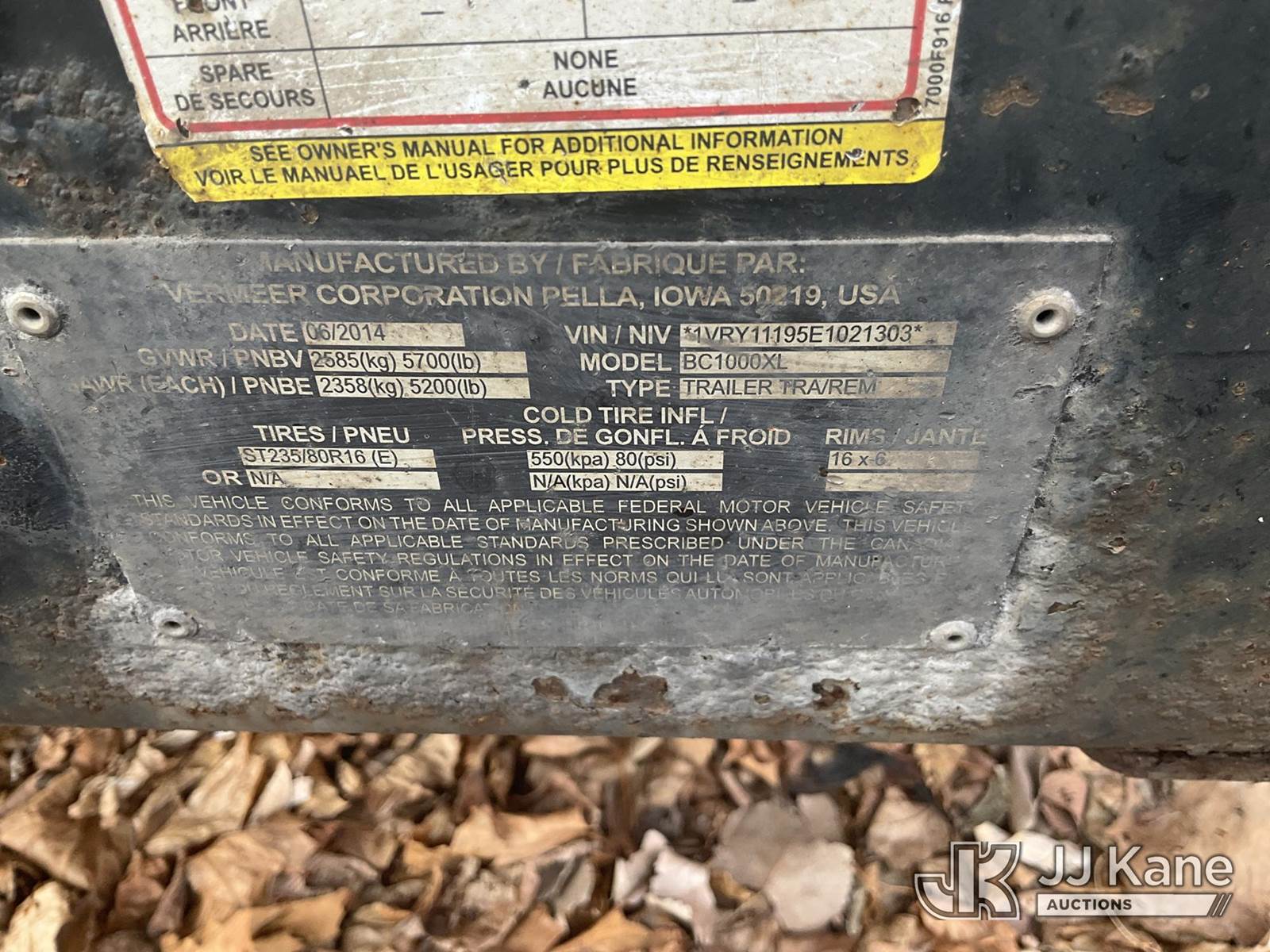 2014 Vermeer BC1000XL Portable Chipper (12in Drum), 4-cyl gas, Trailer Mtd. (Runs, Body & Rust Damage) (Reads 1,833 hours) This is a Titled Item NOTE: This unit is being sold AS IS/WHERE IS via Timed Auction and is located in Plymouth Meeting, PA. Inspection & preview days for this unit are the 2 business days prior to the first day of items closing for this auction, item is located at 1402 Conshohocken Rd Plymouth Meeting, PA 19462 and hours of operations are 8a-4p. For pre-sale questions, please contact Bruce Thomas @ (267) 887-0392 or bruce.thomas.jr@jjkane.com. (Buyer is responsible for removal. Assistance by consignor or JJ Kane Auctions is not assured.)