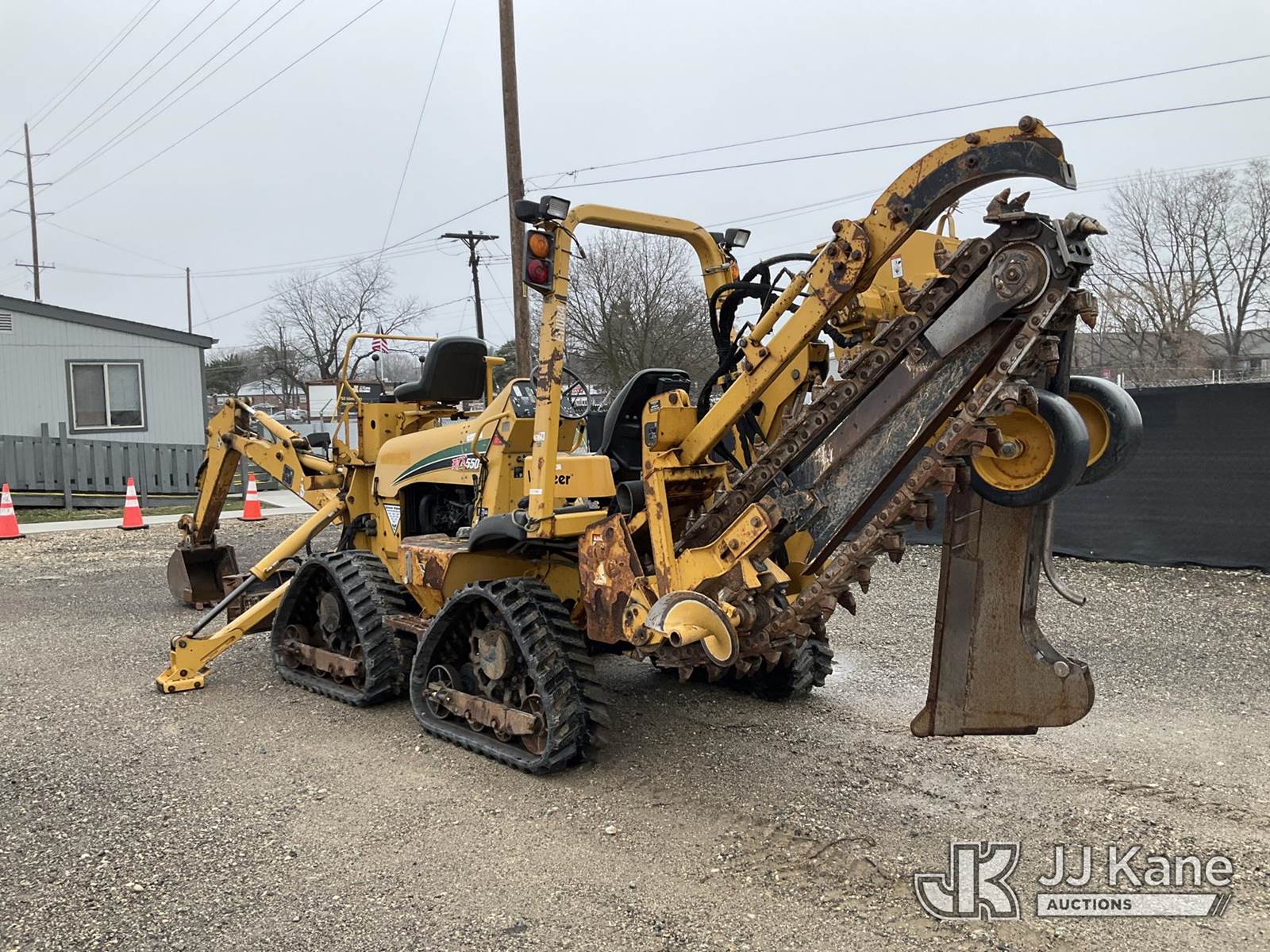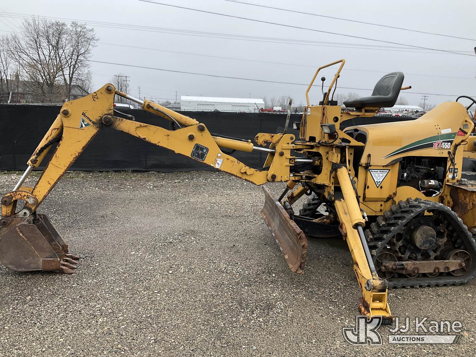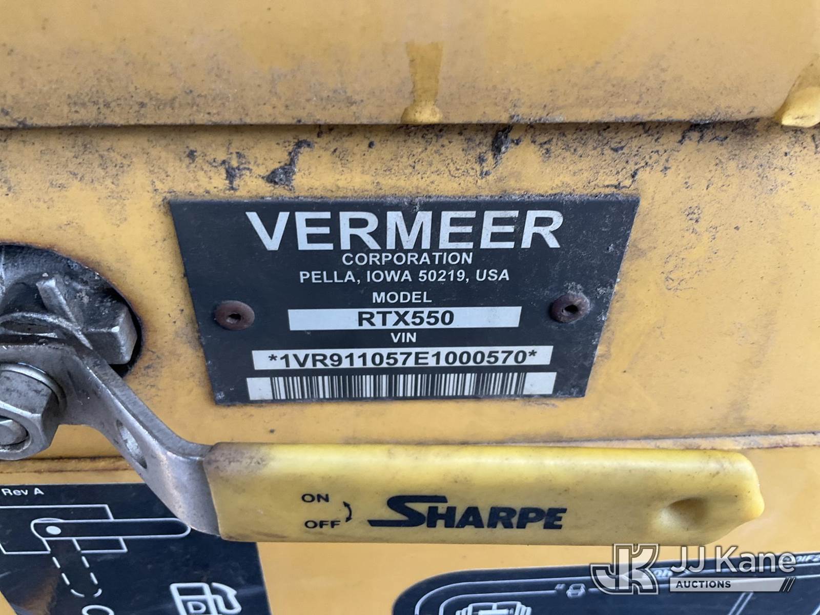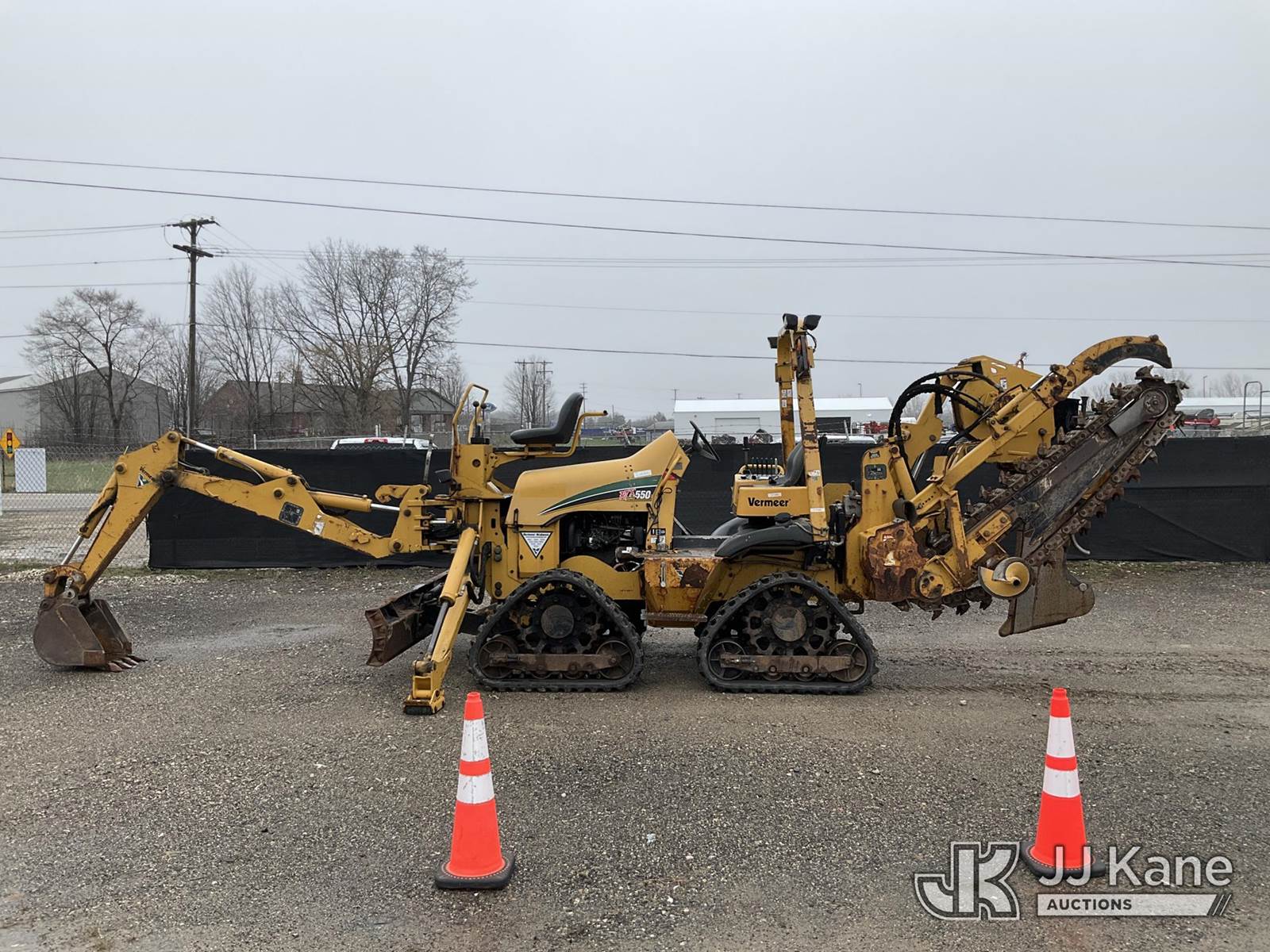 2014 Vermeer RTX550 Combo Trencher/Vibratory Cable Plow, s/n 1VR911072E1000570, Cummins diesel, Hydrostatic, with PT550 carbide tipped trencher & vibratory cable plow, digging bucket, 6 way backfill blade, 2 hydraulic outriggers, rubber tracks, four wheel steering, (Runs, Moves & Operates) (Rust, Cover for Vibratory Plow Missing) (Reads 2,761 hours) NOTE: This unit is being sold AS IS/WHERE IS via Timed Auction and is located in Charlotte, MI. Inspection & preview days for this unit are the 2 business days prior to the first day of items closing for this auction, item is located at 750 Island Hwy Charlotte, MI 48813 and hours of operations are 8a-4p. For pre-sale questions, please contact Corey Cook at (517) 983-0796 or corey.cook@jjkane.com (Buyer is responsible for removal. Assistance by consignor or JJ Kane Auctions is not assured.)