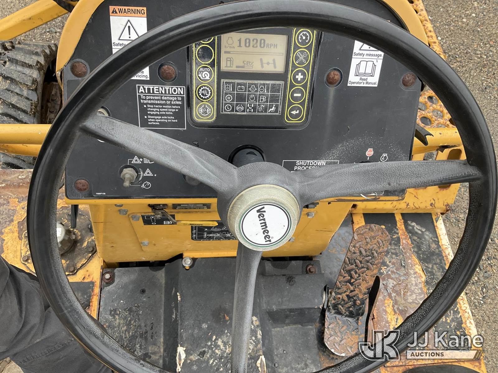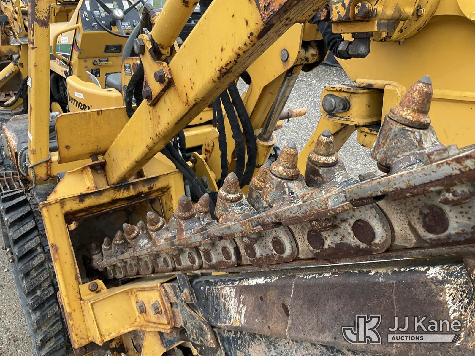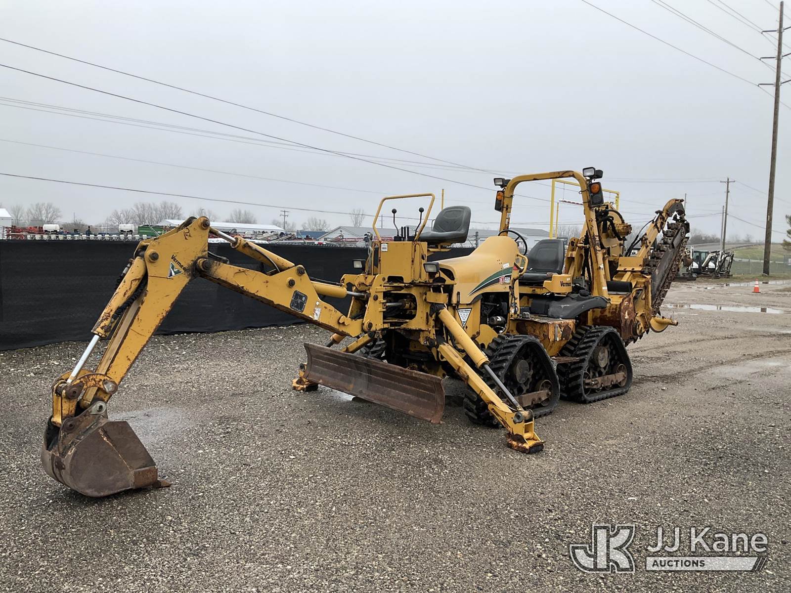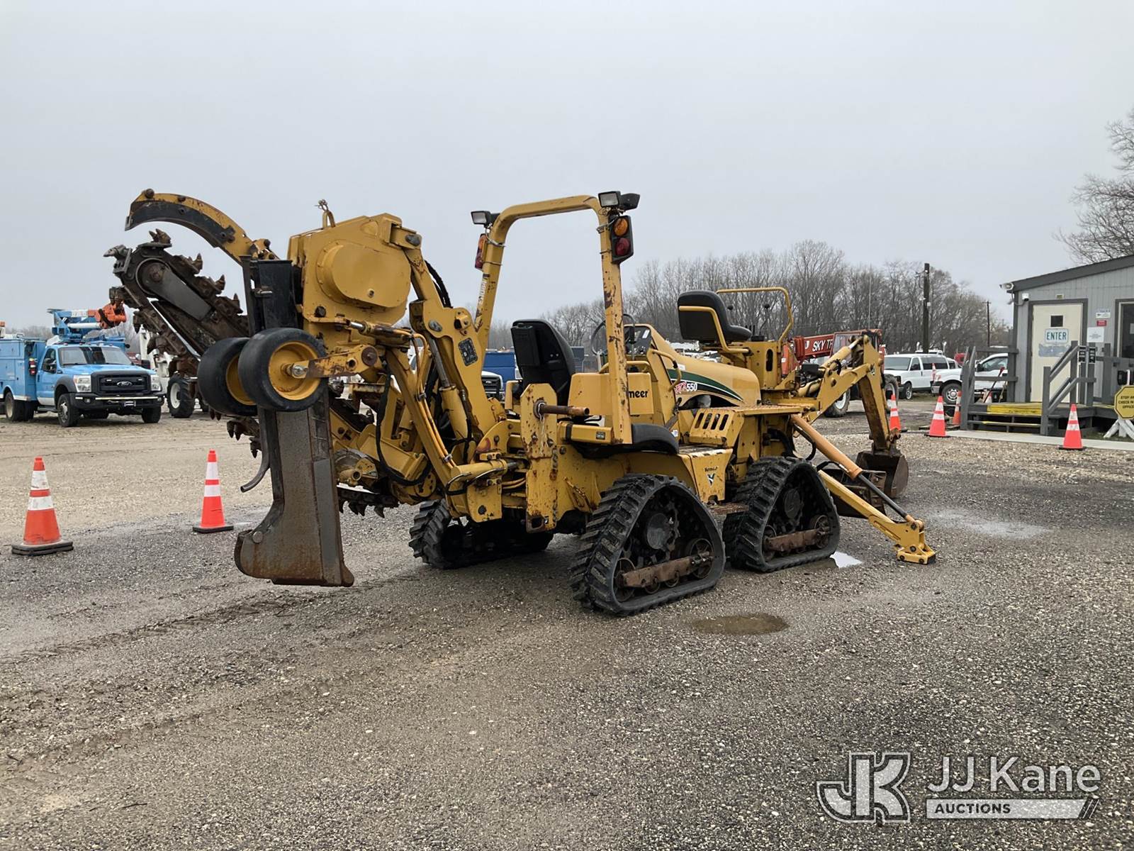 2014 Vermeer RTX550 Combo Trencher/Vibratory Cable Plow, s/n 1VR911072E1000570, Cummins diesel, Hydrostatic, with PT550 carbide tipped trencher & vibratory cable plow, digging bucket, 6 way backfill blade, 2 hydraulic outriggers, rubber tracks, four wheel steering, (Runs, Moves & Operates) (Rust, Cover for Vibratory Plow Missing) (Reads 2,761 hours) NOTE: This unit is being sold AS IS/WHERE IS via Timed Auction and is located in Charlotte, MI. Inspection & preview days for this unit are the 2 business days prior to the first day of items closing for this auction, item is located at 750 Island Hwy Charlotte, MI 48813 and hours of operations are 8a-4p. For pre-sale questions, please contact Corey Cook at (517) 983-0796 or corey.cook@jjkane.com (Buyer is responsible for removal. Assistance by consignor or JJ Kane Auctions is not assured.)