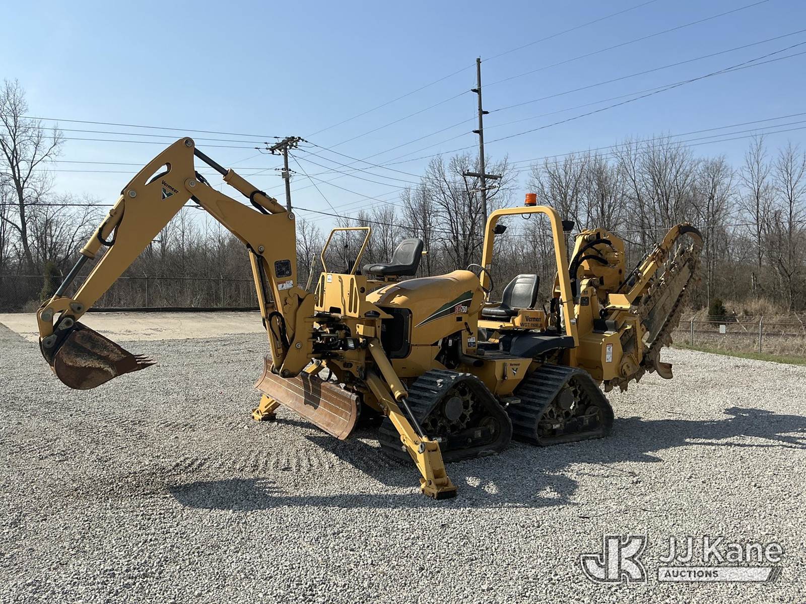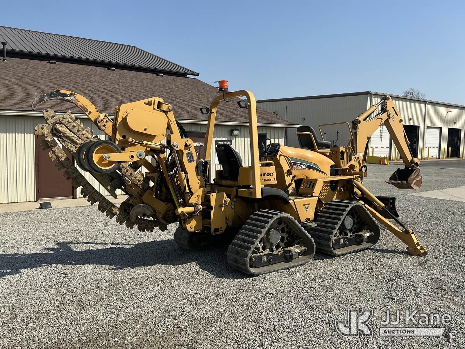 2014 Vermeer RTX750 Quad Track Combo Trencher/Vibratory Cable Plow, s/n 1VR9110MXE1001638, diesel, Hydrostatic, with 6-way backfill blade, carbide trenching chain, backhoe attachment, rubber tracks & ROPS post, (Runs, Moves & Operates ) (Reads 521 hours) NOTE: This unit is being sold AS IS/WHERE IS via Timed Auction and is located in Fort Wayne, IN. Inspection & preview days for this unit are the 2 business days prior to the first day of items closing for this auction, item is located at 3020 Commercial Rd Fort Wayne, IN 46809 and hours of operations are 8a-4p. For pre-sale questions, please contact Eric Mcintosh @ (260) 205-2483 (Buyer is responsible for removal. Assistance by consignor or JJ Kane Auctions is not assured.)