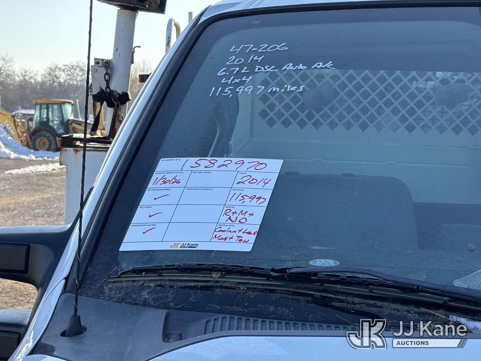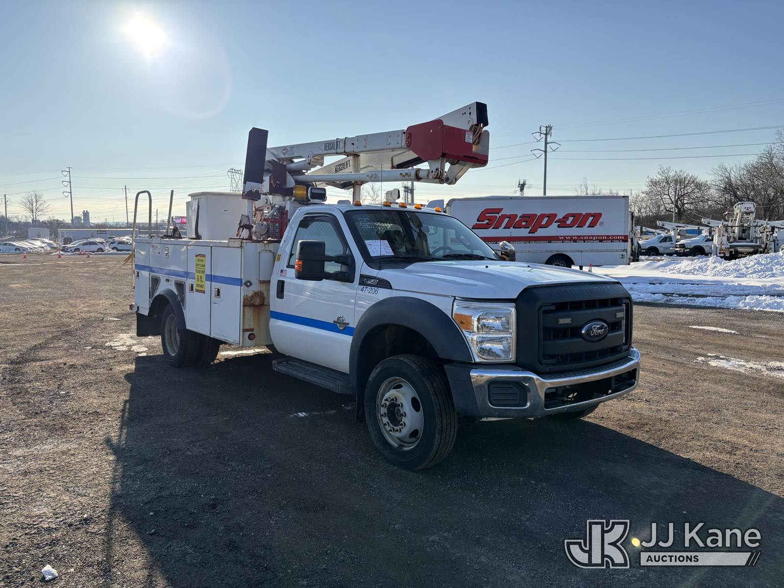 Versalift SST40EIH-01, 45 ft, Articulating & Telescopic Bucket Truck s/n EH140015, with single-man bucket, mounted behind cab on 2014 Ford F550 4x4 Service Truck, 6.7L diesel, Auto, A/C, (115,997 miles) (Jump To Start, Runs Moves & Upper Not Operating, Upper Condition Unknown, PTO Not Engaging, Engine Noise, Leaks Coolant, Broken Headlight, Body & Rust Damage, Must Tow) This is a Titled Item NOTE: This unit is being sold AS IS/WHERE IS via Timed Auction and is located in Plymouth Meeting, PA. Inspection & preview days for this unit are the 2 business days prior to the first day of items closing for this auction, item is located at 1402 Conshohocken Rd Plymouth Meeting, PA 19462 and hours of operations are 8a-4p. For pre-sale questions, please contact Bruce Thomas @ (267) 887-0392 or bruce.thomas.jr@jjkane.com. (Missing manuals, See Auction Company for Manufacturers Information to obtain manuals) (Buyer is responsible for removal. Assistance by consignor or JJ Kane Auctions is not assured.)