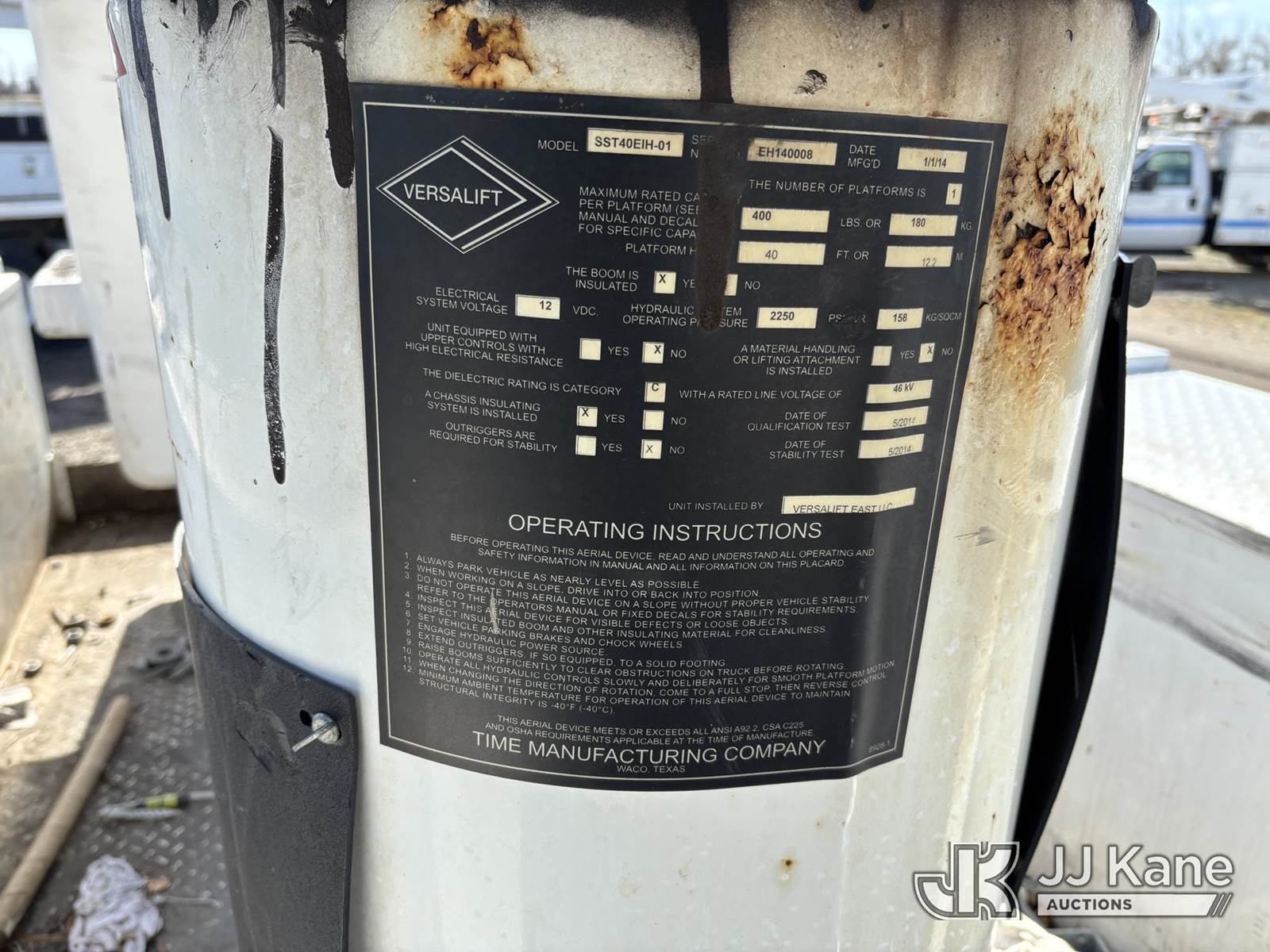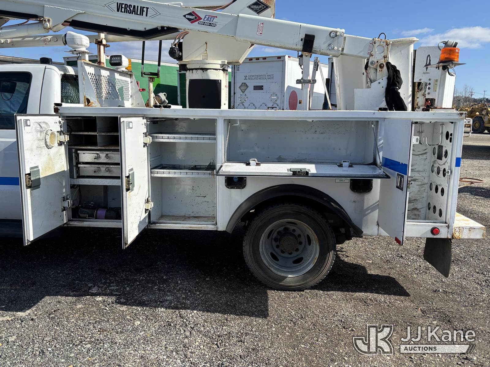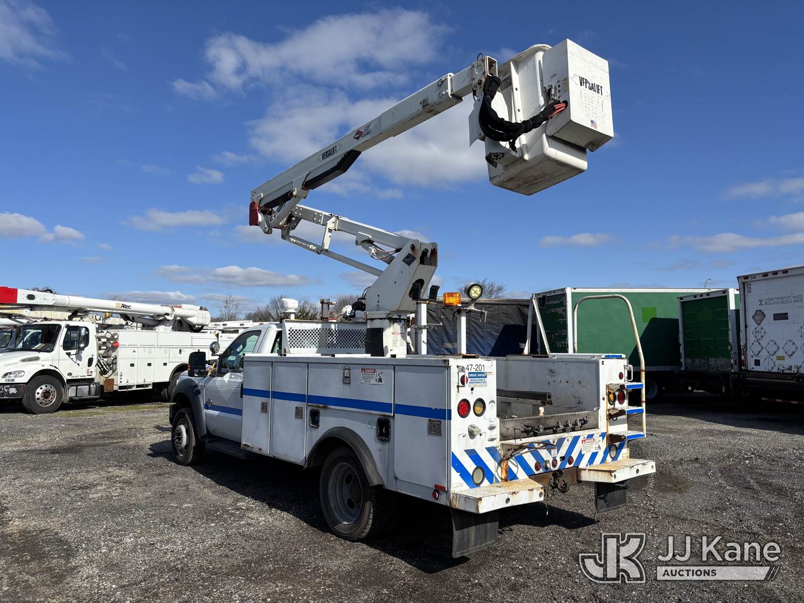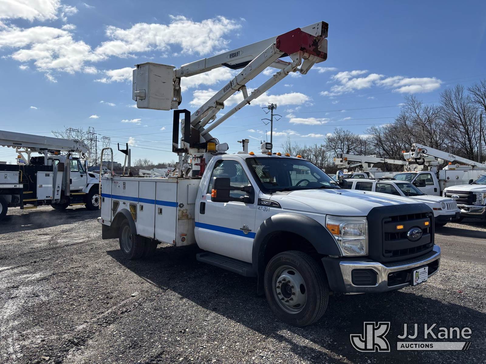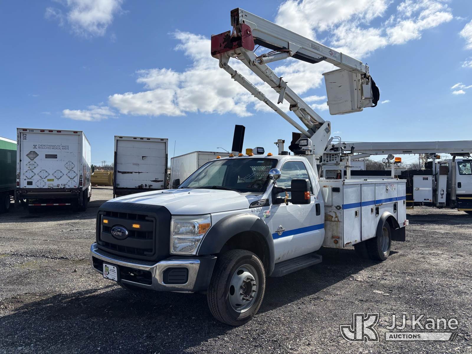 Versalift SST40EIH-01, 45 ft, Articulating & Telescopic Bucket Truck s/n EH140008, with single-man bucket, mounted behind cab on 2014 Ford F550 4x4 Service Truck, 6.7L diesel, Auto, A/C, (120,112 miles) (Jump To Start, Runs Moves & Upper Operates, Rust On Service Body) This is a Titled Item NOTE: This unit is being sold AS IS/WHERE IS via Timed Auction and is located in Plymouth Meeting, PA. Inspection & preview days for this unit are the 2 business days prior to the first day of items closing for this auction, item is located at 1402 Conshohocken Rd Plymouth Meeting, PA 19462 and hours of operations are 8a-4p. For pre-sale questions, please contact Bruce Thomas @ (267) 887-0392 or bruce.thomas.jr@jjkane.com. (Missing manuals, See Auction Company for Manufacturers Information to obtain manuals) (Buyer is responsible for removal. Assistance by consignor or JJ Kane Auctions is not assured.)
