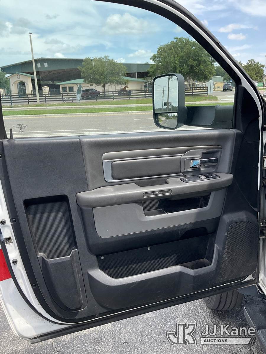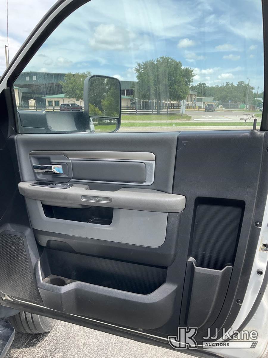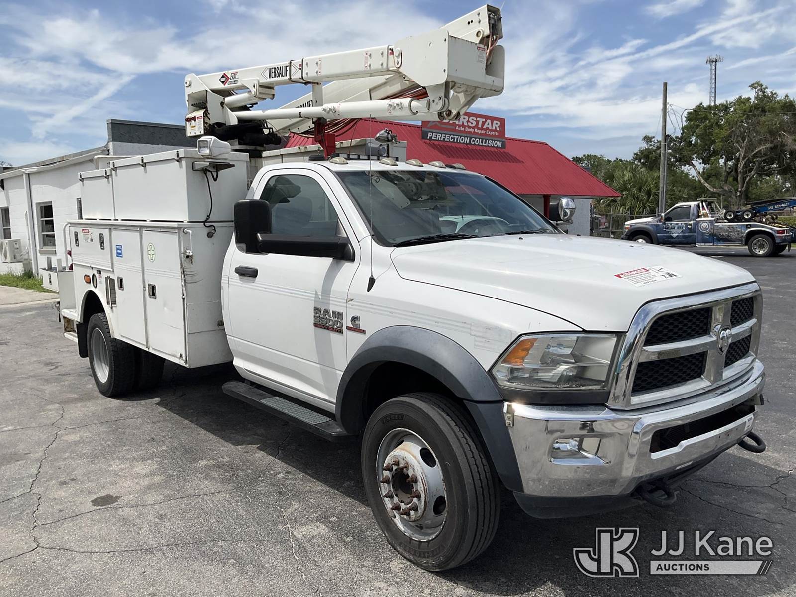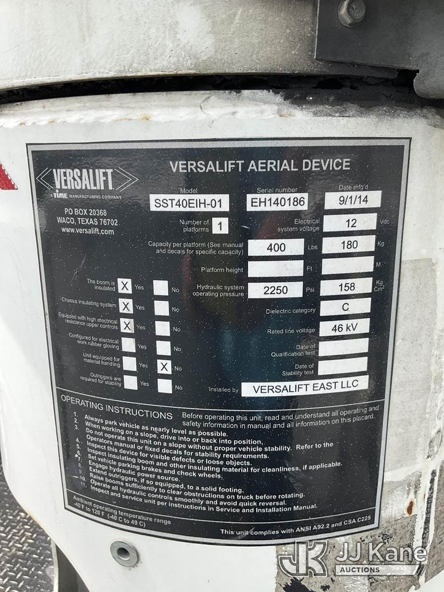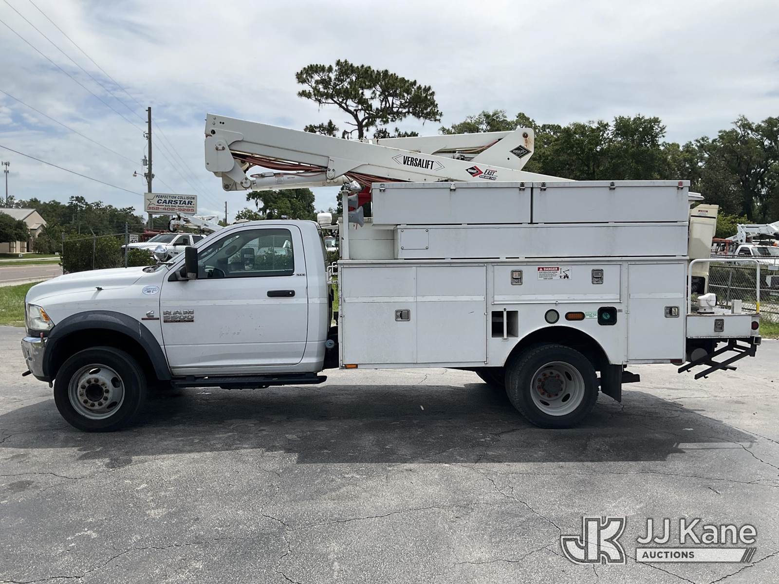 Versalift SST40EIH, 45 ft, Articulating & Telescopic Bucket Truck s/n EH 140186, with single man bucket, mounted behind cab on 2014 Dodge 5500 4x4 Service Truck, Cummins 6.7L diesel, Auto, A/C, (203,957 miles) (Runs & Moves) (PTO Not Working Upper Unit Condition Unknown, Minor Body And Paint Damage, ABS Light On) This is a Titled Item NOTE: This unit is being sold AS IS/WHERE IS via Timed Auction and is located in Ocala, FL. Inspection & preview days for this unit are by appointment only; please contact us at contact@jjkane.com or 84-Go-JJKane for more details. For more information & removal arrangements please contact Mike Lessard @ (352) 629-6677. (Missing manuals, See Auction Company for Manufacturers Information to obtain manuals) (Buyer is responsible for removal. Assistance by consignor or JJ Kane Auctions is not assured.)