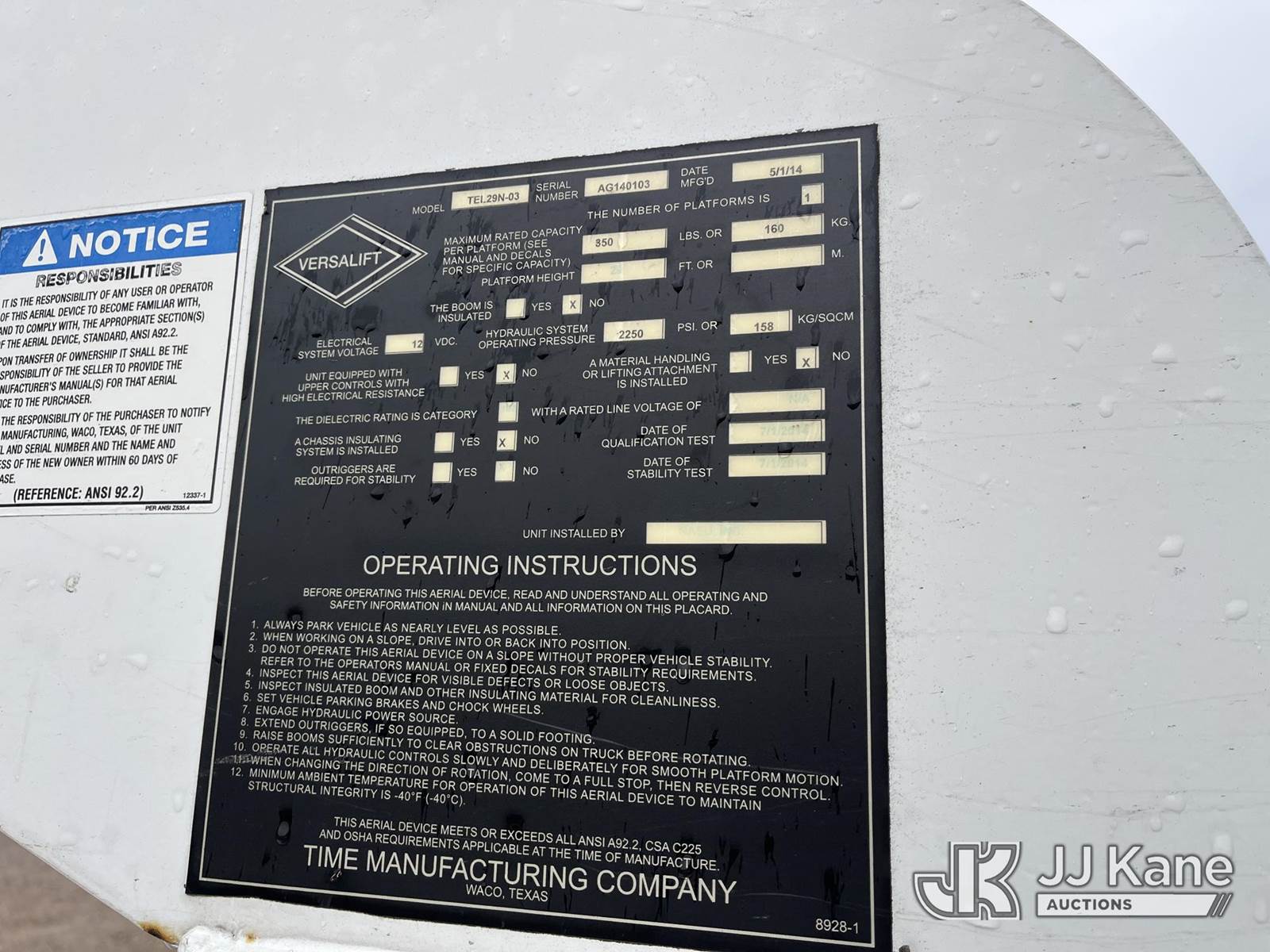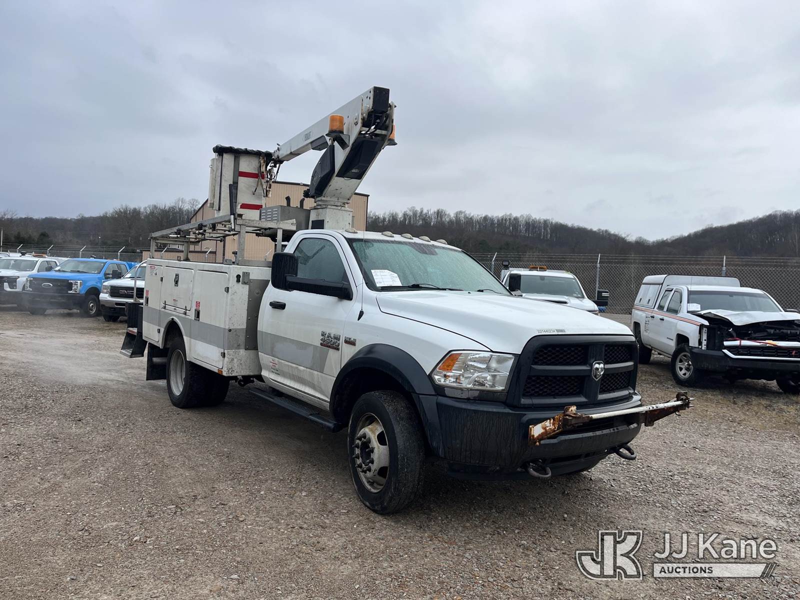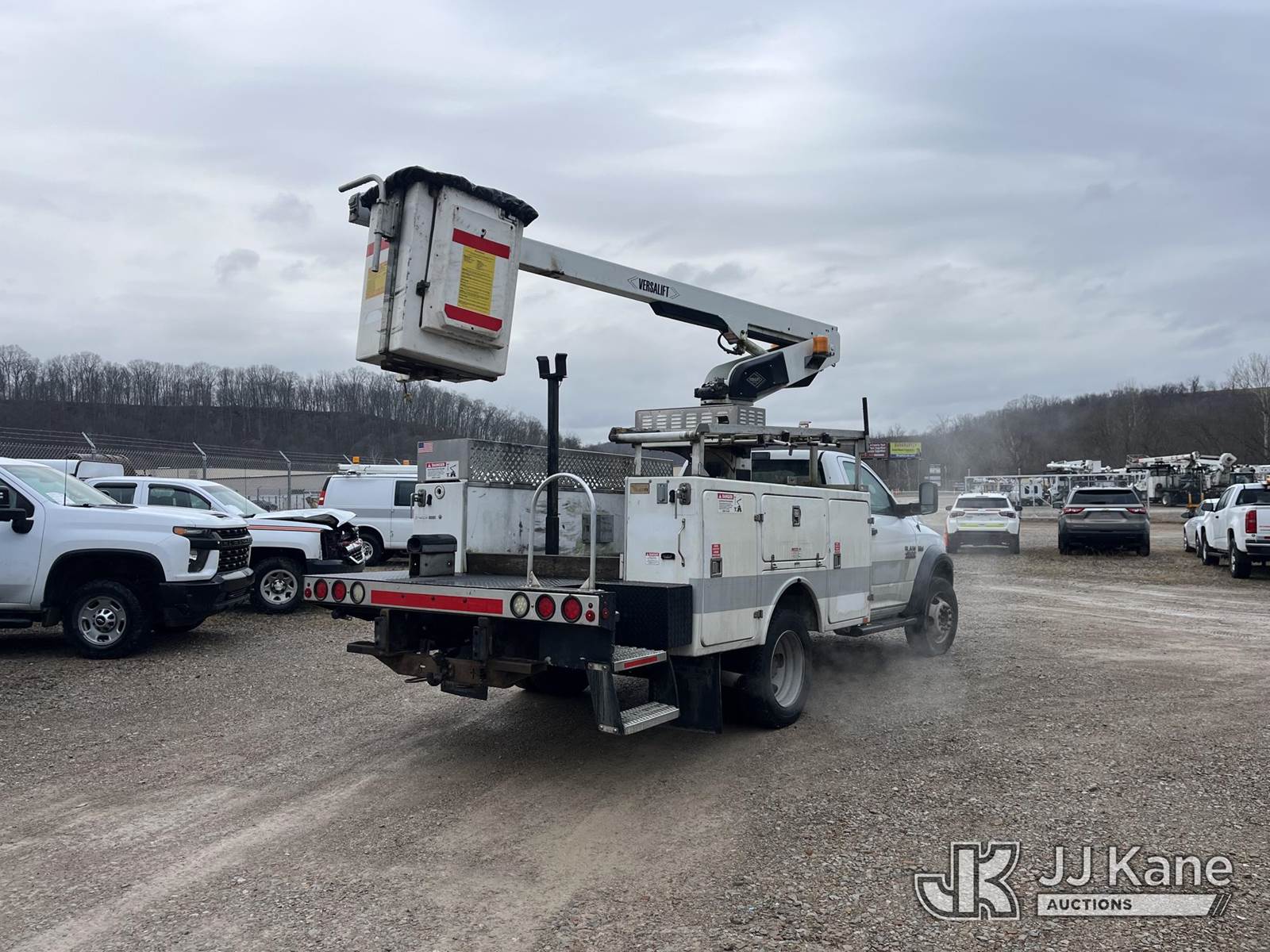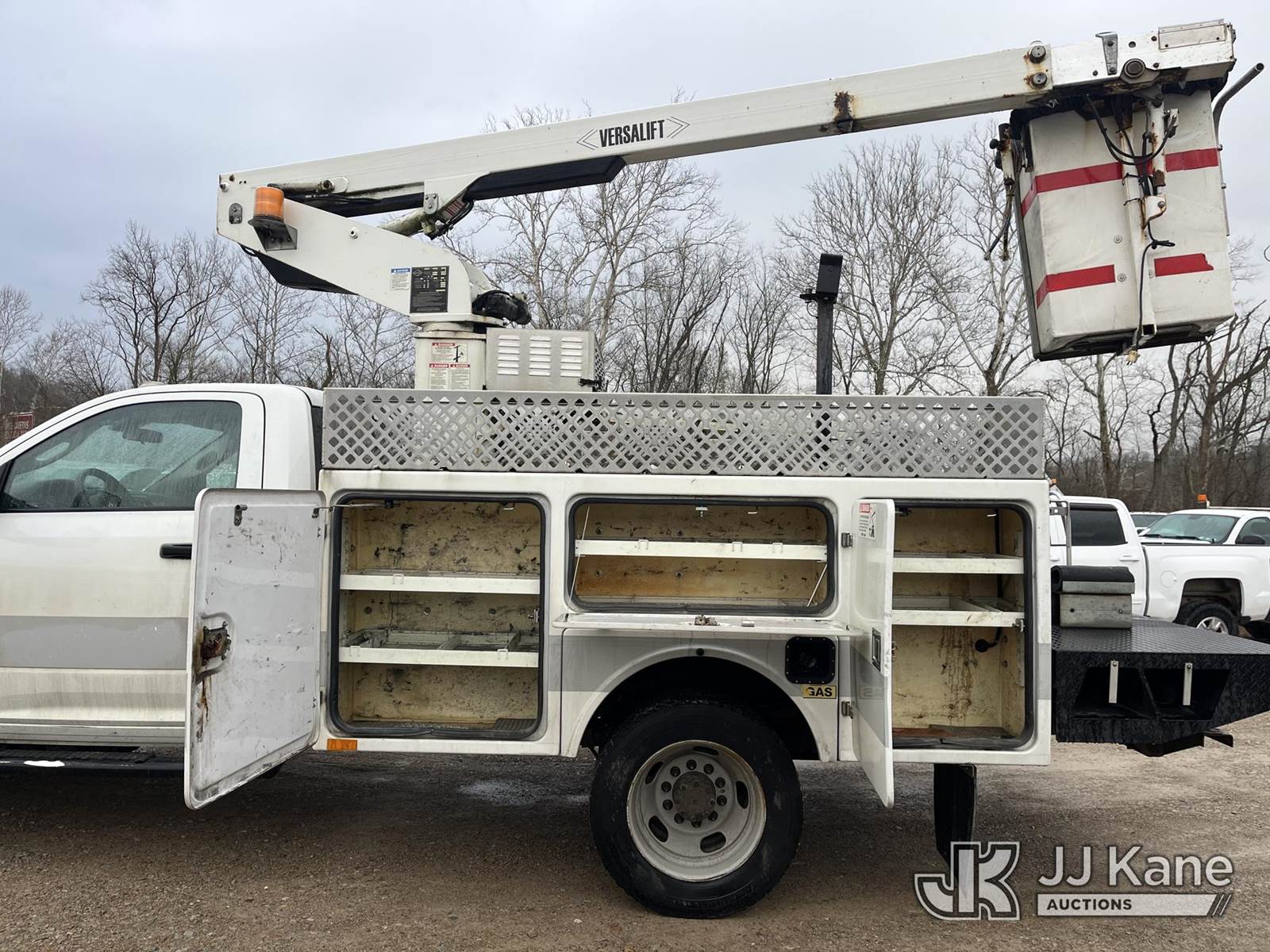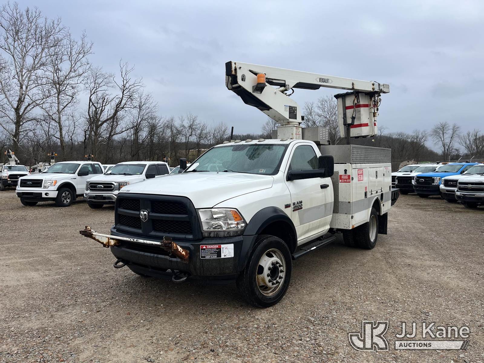 Versalift TEL29N-03, 34 ft, Non-Insulated Bucket Truck s/n AG140103, with single-man bucket, mounted behind cab on 2014 Ram 4500 4x2 Service Truck, 6.4L V8 Gas Auto, A/C, (237,442 miles) (Runs & Moves, Upper Operates Slowly, No Driver Seat, Check Engine Light On, Body & Rust Damage) (Reads 1,084 hours) This is a Titled Item NOTE: This unit is being sold AS IS/WHERE IS via Timed Auction and is located in Smock, PA. Inspection & preview days for this unit are the 2 business days prior to the first day of items closing for this auction, item is located at 1000 Franklin Dr Smock, PA 15480 and hours of operations are 7:00 am to 3:30 pm. For pre-sale questions, please contact Alaina White @ (724) 562-2575 or Alaina.White@JJKane.com. (Manuals provided in cab) (Buyer is responsible for removal. Assistance by consignor or JJ Kane Auctions is not assured.)
