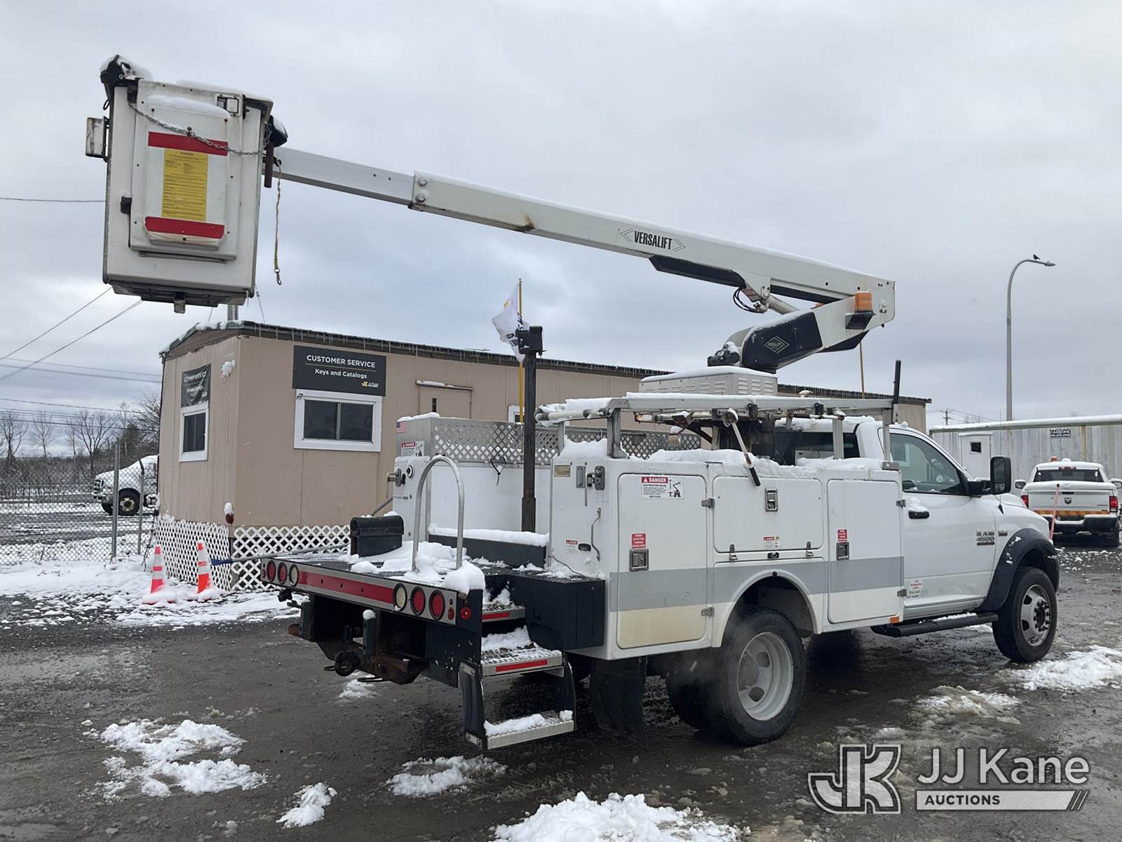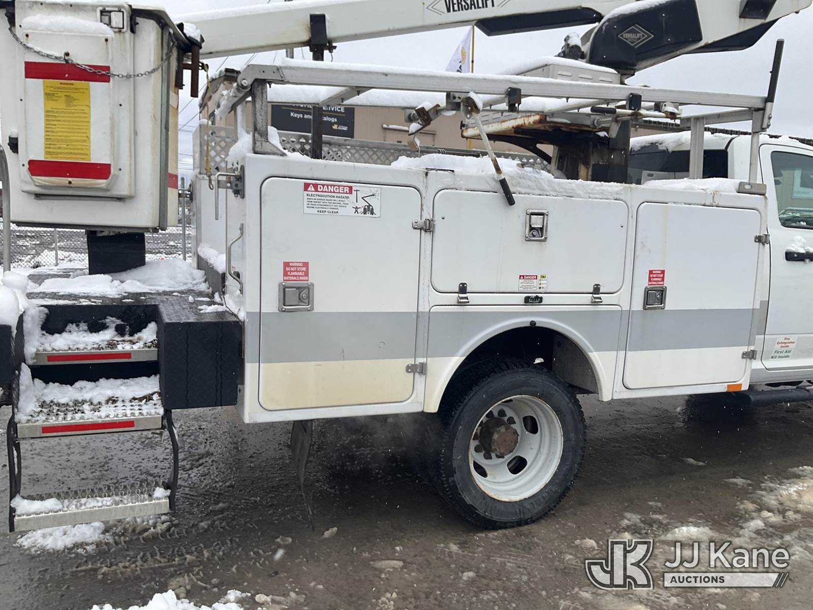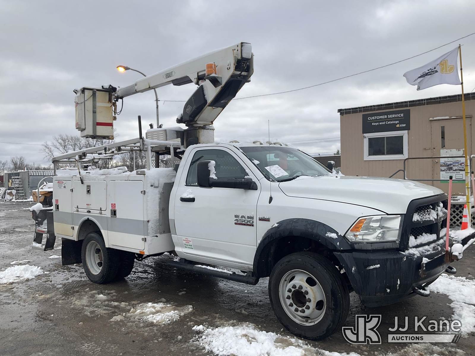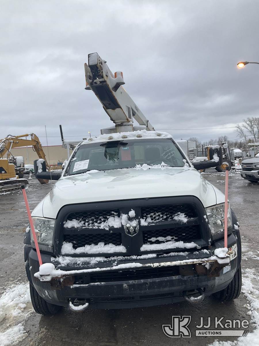 Versalift TEL29N-3, 34 ft, Telescopic Non-Insulated Bucket Truck s/n AG140267, with Single Man Bucket, mounted behind cab on 2014 RAM 4500 2WD Service Truck, 8-cyl gas, Auto, A/C, (131,634 miles) (Runs, Moves & Upper Operates, Seller States-FRAME ROTTED, Body & Rust Damage) This is a Titled Item NOTE: This unit is being sold AS IS/WHERE IS via Timed Auction and is located in Rome, NY. Inspection & preview days for this unit are the 2 business days prior to the first day of items closing for this auction, item is located at 5835 Success Dr Rome, NY 13440 and hours of operations are 8a-4p. For pre-sale questions, please contact Ryan Jackson @ (315) 749-3790 or Ryan.Jackson@jjkane.com. (Manuals provided in cab) (Buyer is responsible for removal. Assistance by consignor or JJ Kane Auctioneers is not assured.)